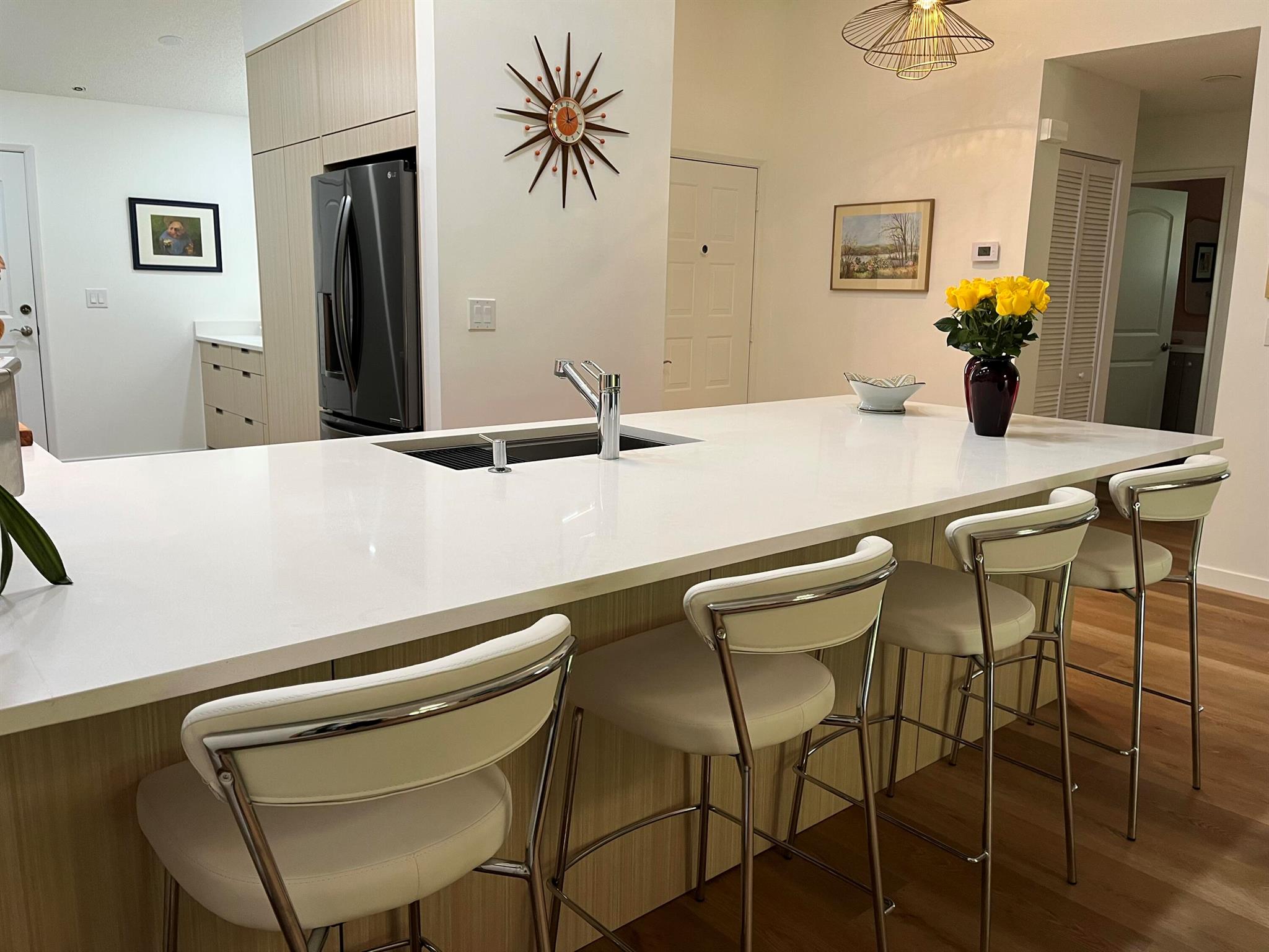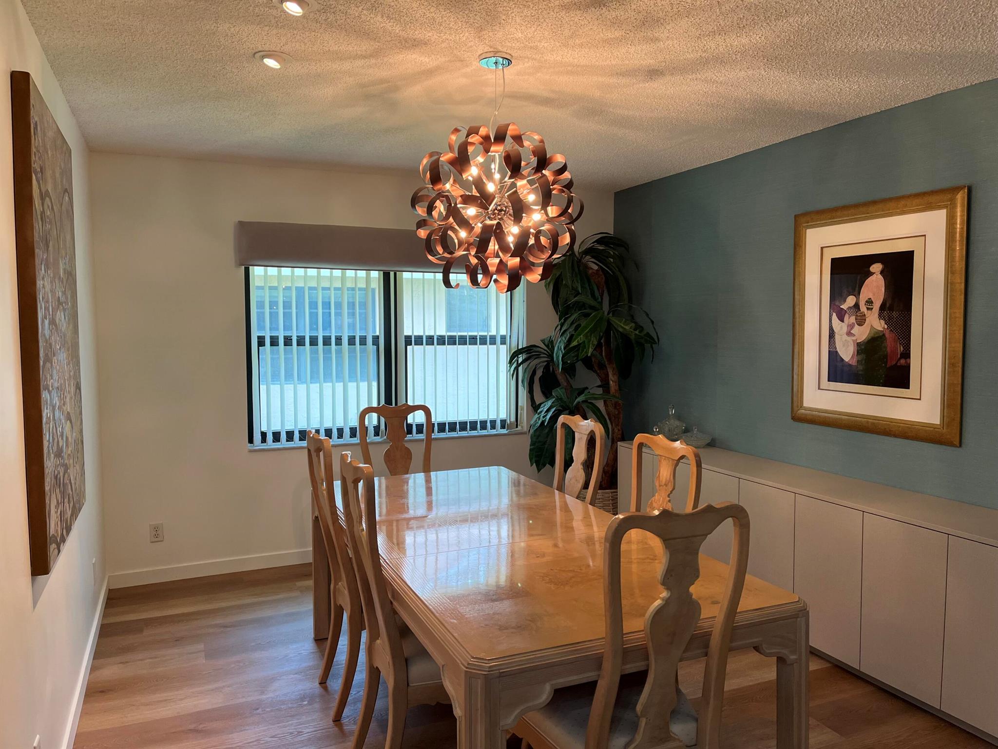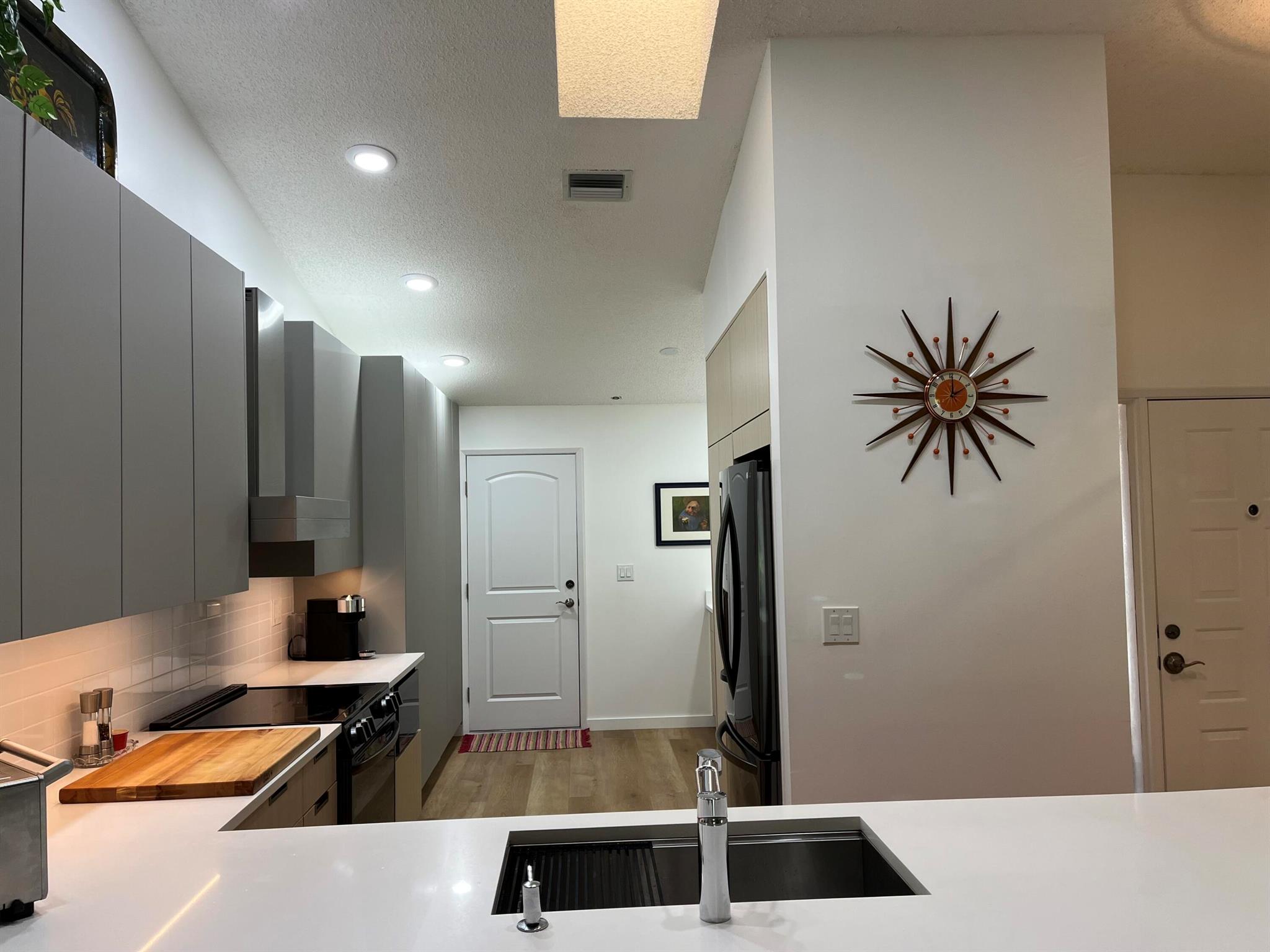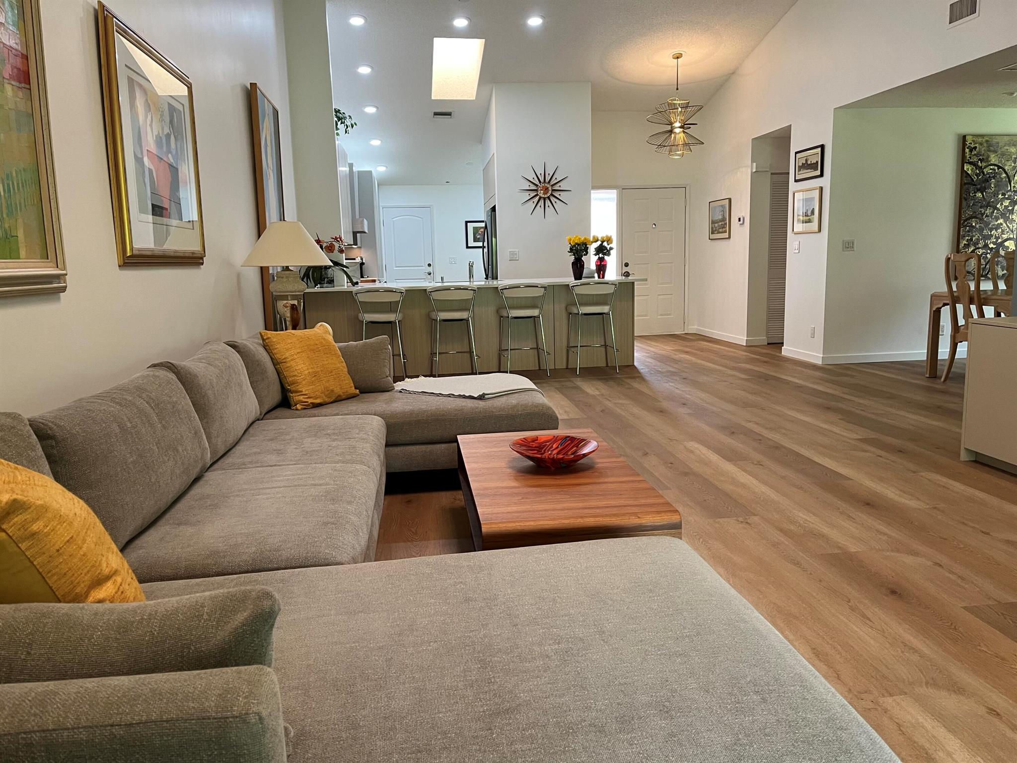 Introducing a spectacular, completely renovated Regal Townhome. This home is a masterpiece of mid-century modern design coupled with elegance and comfort, and must be experienced to appreciate the openness and quality of all the finishes. The property features commercial grade vinyl flooring, impact windows, 2 skylights, new tile, new bdrm carpeting, statement fixtures, and custom cabinets and countertops. Roof assessment has been paid in full. Located in a desirable 55+ neighborhood with new pickleball courts, private club house, large pool, workout room, library and games room. Don't miss the opportunity to make this exquisite residence your own!