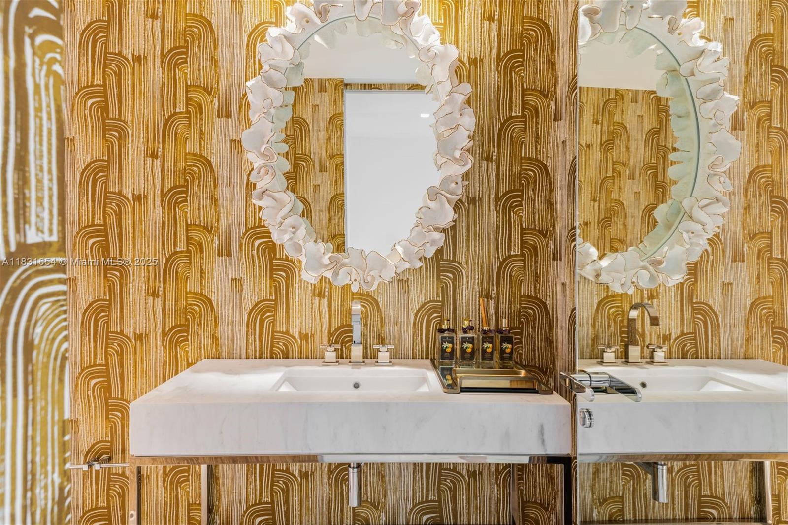 One of Miami's most spectacular condos, Fendi Chateau #1101 is an ocean front masterpiece. Designed & decorated by renowned Brazilian architect Sig Bergamin, this 5bed/6.5 bath 6,726 SF home in the sky exudes beachfront elegance. Perfectly situated taking up the entire north corner, the 1,885 SF wraparound terrace allows for spectacular ocean & intracoastal views. Exquisite interior features include 10' ceilings, teak flooring, Italian Calacatta stone, & smart home system. The oversized primary suite has dual ocean view bathrooms & a closet the size rarely seen in new construction. The Fendi designed eat-in-kitchen is equipped with Gaggenau appliances & wine fridge. A private elevator opens to elegant living areas, formal dining room, & a media lounge perfect for billiards & game night.