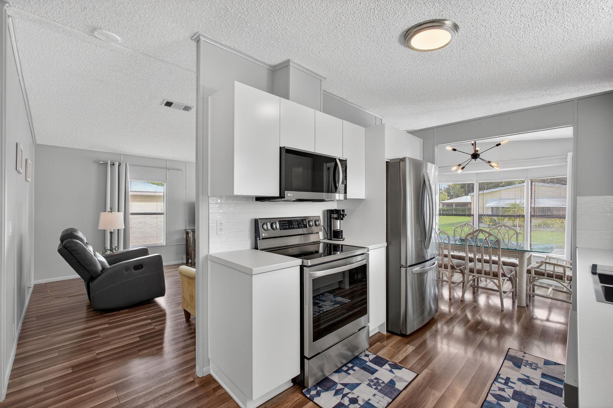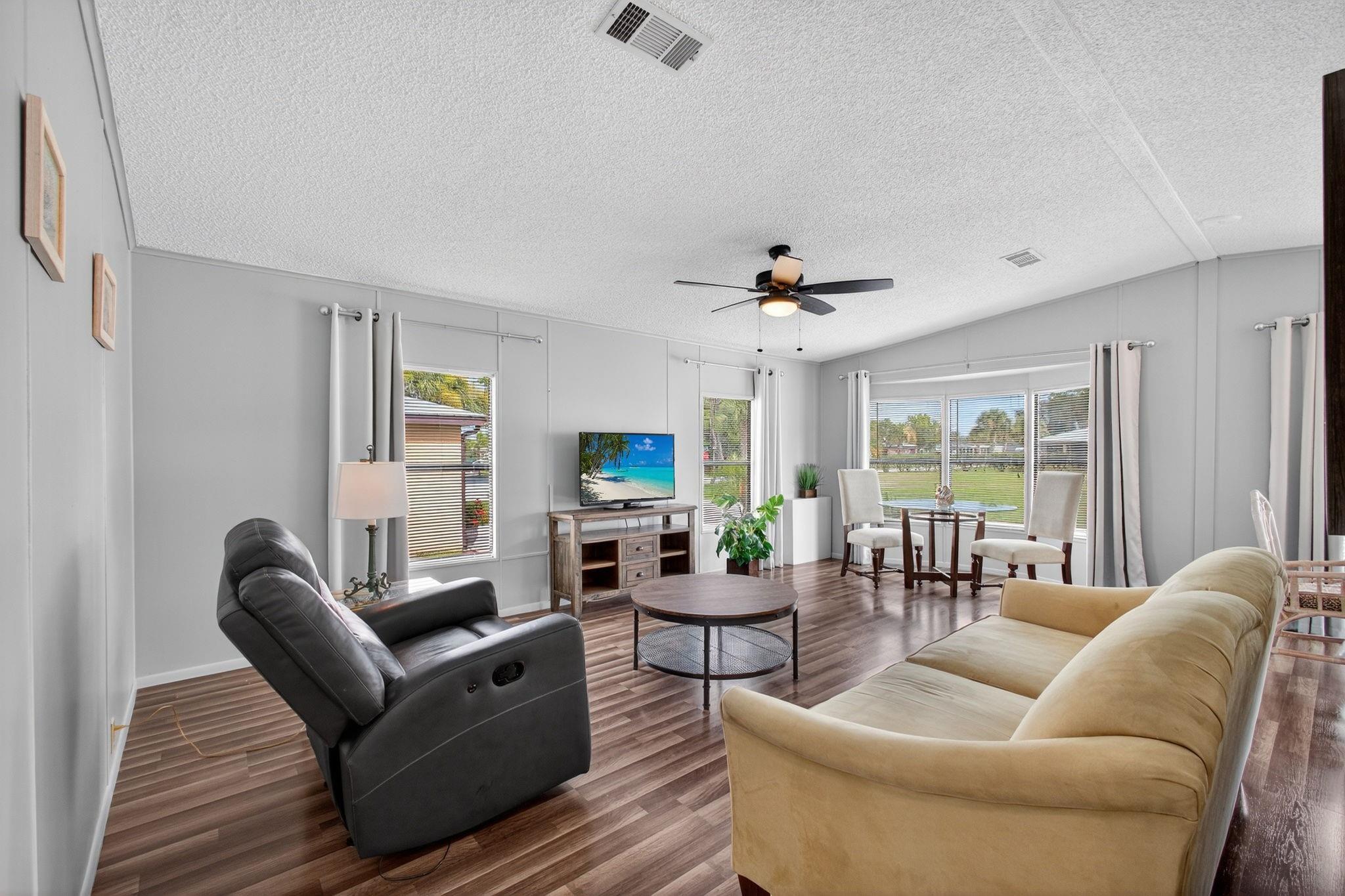 Fully remodeled with UPGRADES! This beautifully fully furnished home is move-in ready and features an inviting flow throughout. Expansive living room and enjoyable dinning with beautiful natural lighting at every angle. New wood-like laminate plank flooring (2018), new AC & water heater (2023), and a completely remodeled kitchen with brand new appliances (2024). Enjoy vibrant community living with golf, pools, clubhouse, and more, all just steps from your front door. Lavish 55+ golf course community offering resort-style amenities. Perhaps it's your vacation home or forever home, your perfect Florida retreat awaits!