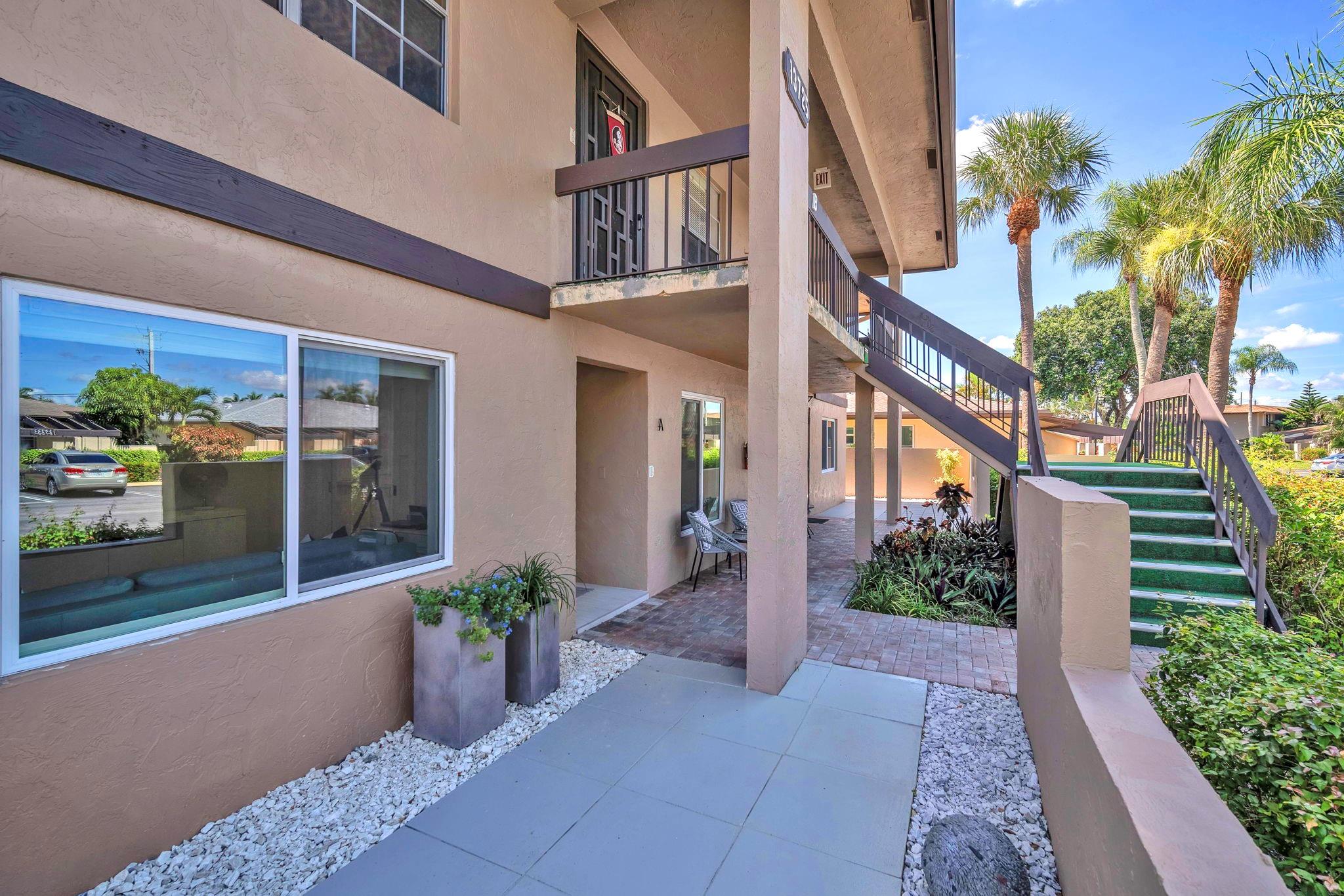 Owners have spared no expense in this stunning first-floor condo! Beautifully renovated kitchen featuring crisp white cabinetry, stainless steel appliances, luxurious quartz counters, & neutral color palette that compliments any style. Plank-style tile flooring throughout & impact windows offering peace of mind. Both bathrooms have been completely updated. Spacious primary suite is a dream- custom walk-in closet, second closet & additional built-in unit for more storage! Washer & dryer are tucked away inside the primary bathroom. Huge storage closet too. Relax on your private screened-in patio or take advantage of the amenities—parking right outside your door, heated pool, tennis center, brand-new clubhouse coming soon 55+ community. Chandelier is excluded from sale No Special assessments!