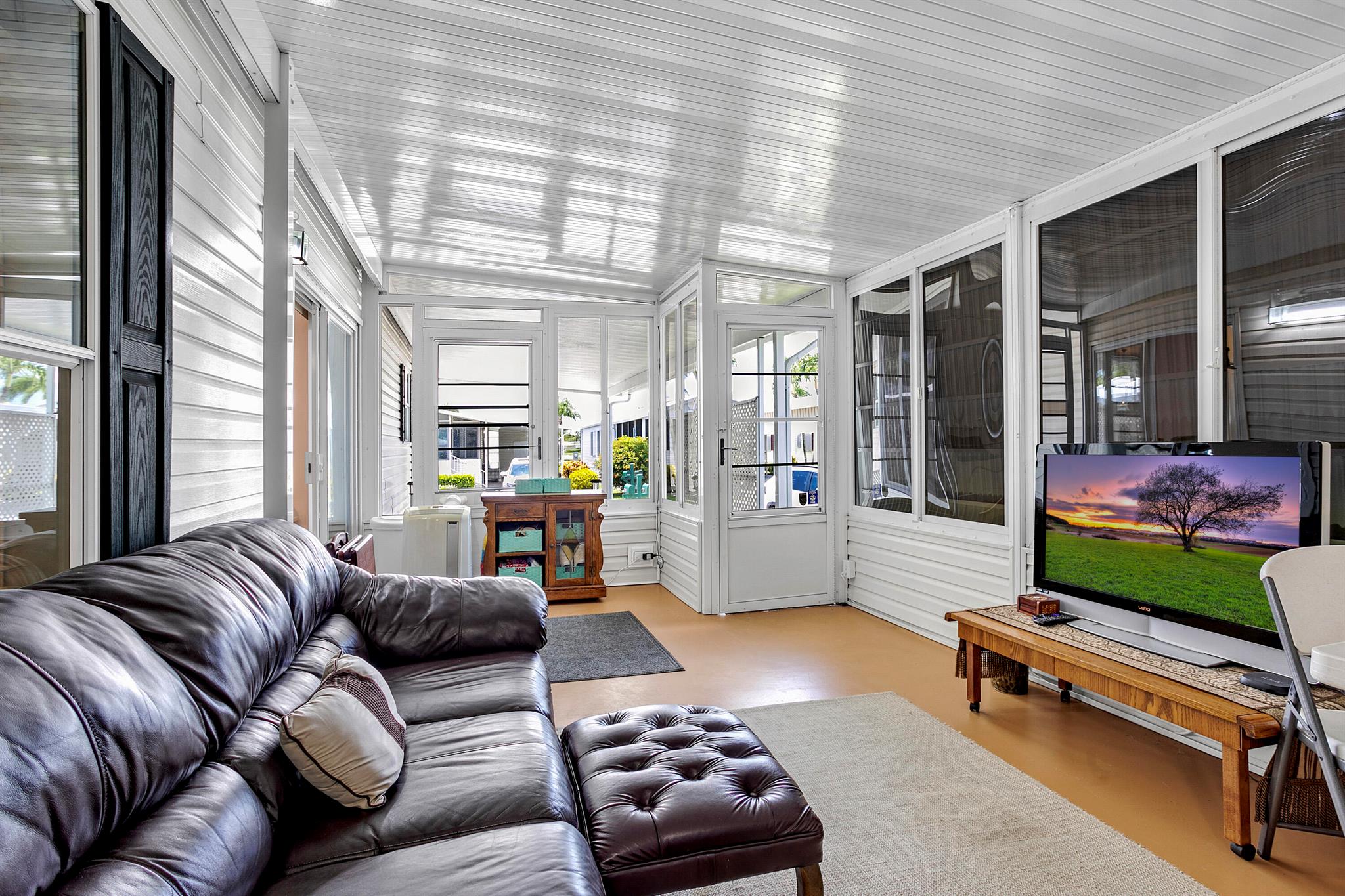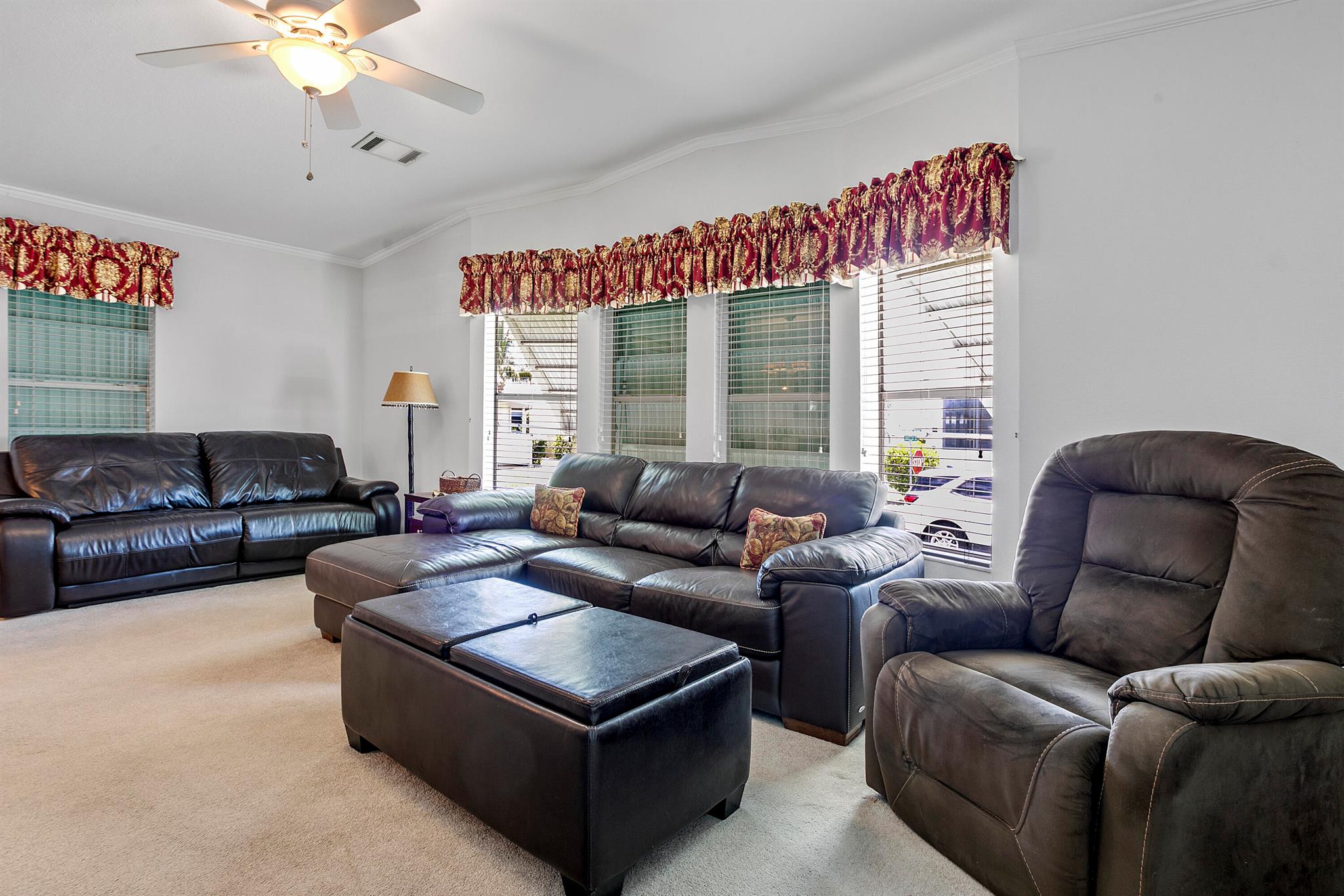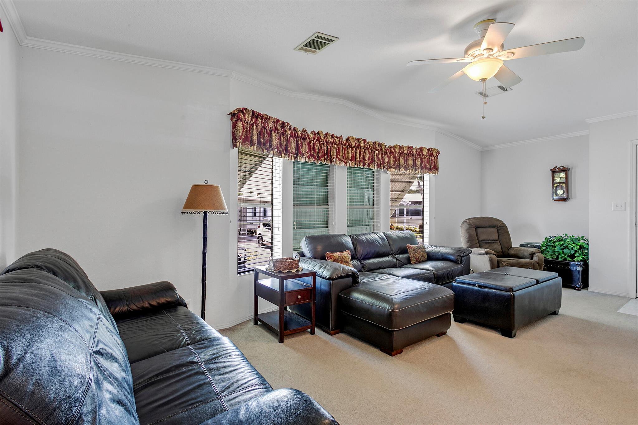 One of the largest 2 Bedroom, 2 Bathroom homes in this sought-after 55+ gated community! Ideally situated on a corner lot with only one neighbor, this spacious residence offers a Family Room, Living Room, Dining Room, and an Open Kitchen with a cooktop island and abundant cabinetry. Vaulted ceilings, interior laundry, and extra storage add to the appeal. The Guest Bedroom includes a Jack & Jill bath with a tub/shower combo. The expansive Main Bedroom features generous closet space and an ensuite with dual sinks and a step-in shower. Enjoy year-round comfort in the raised glass-enclosed patio, plus an attached shed/workshop. Impeccably maintained inside and out, with lush landscaping and charming flowers. Includes Drywall construction with 2x6 studs, a special seal on roof to extend life
