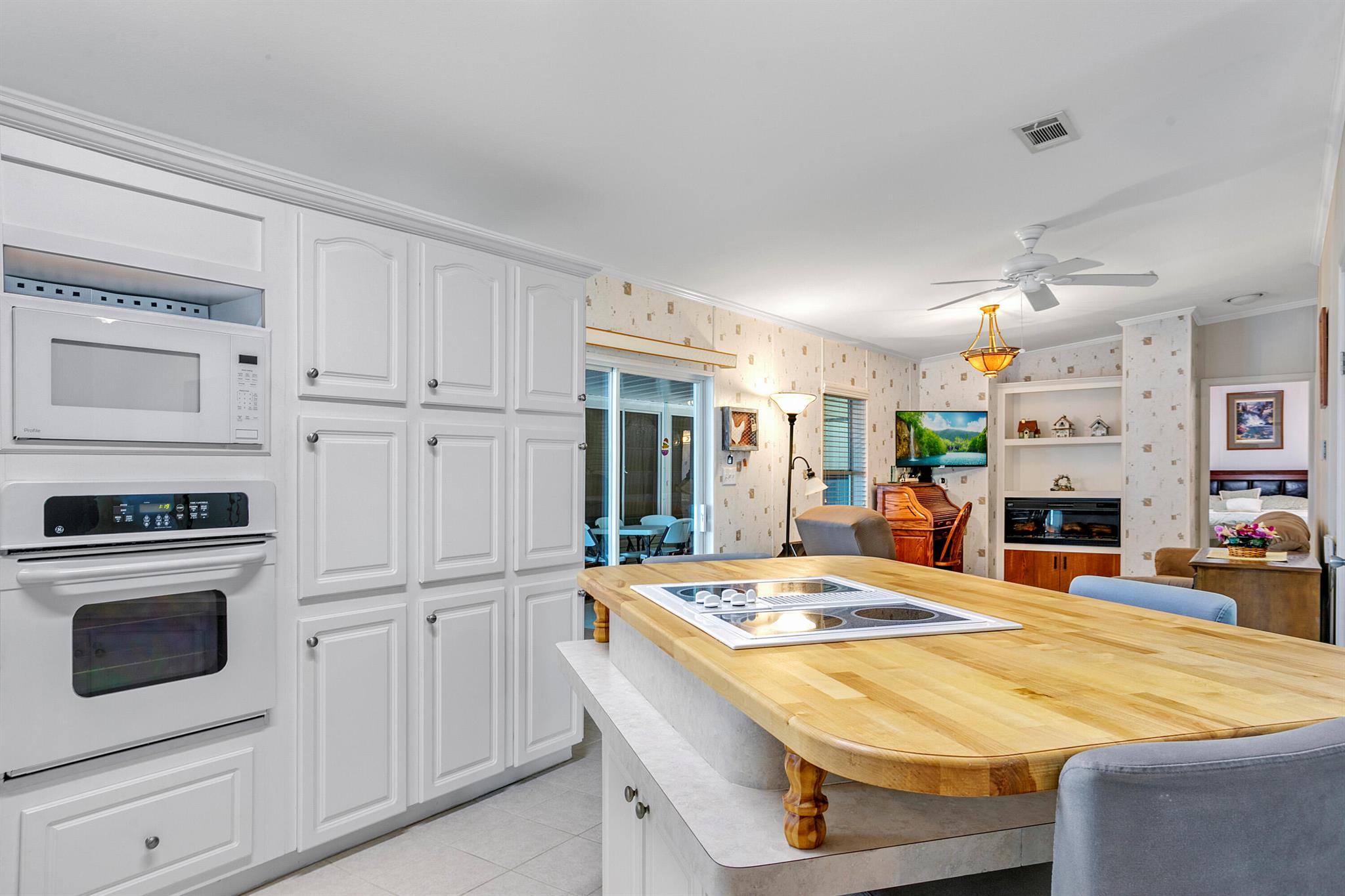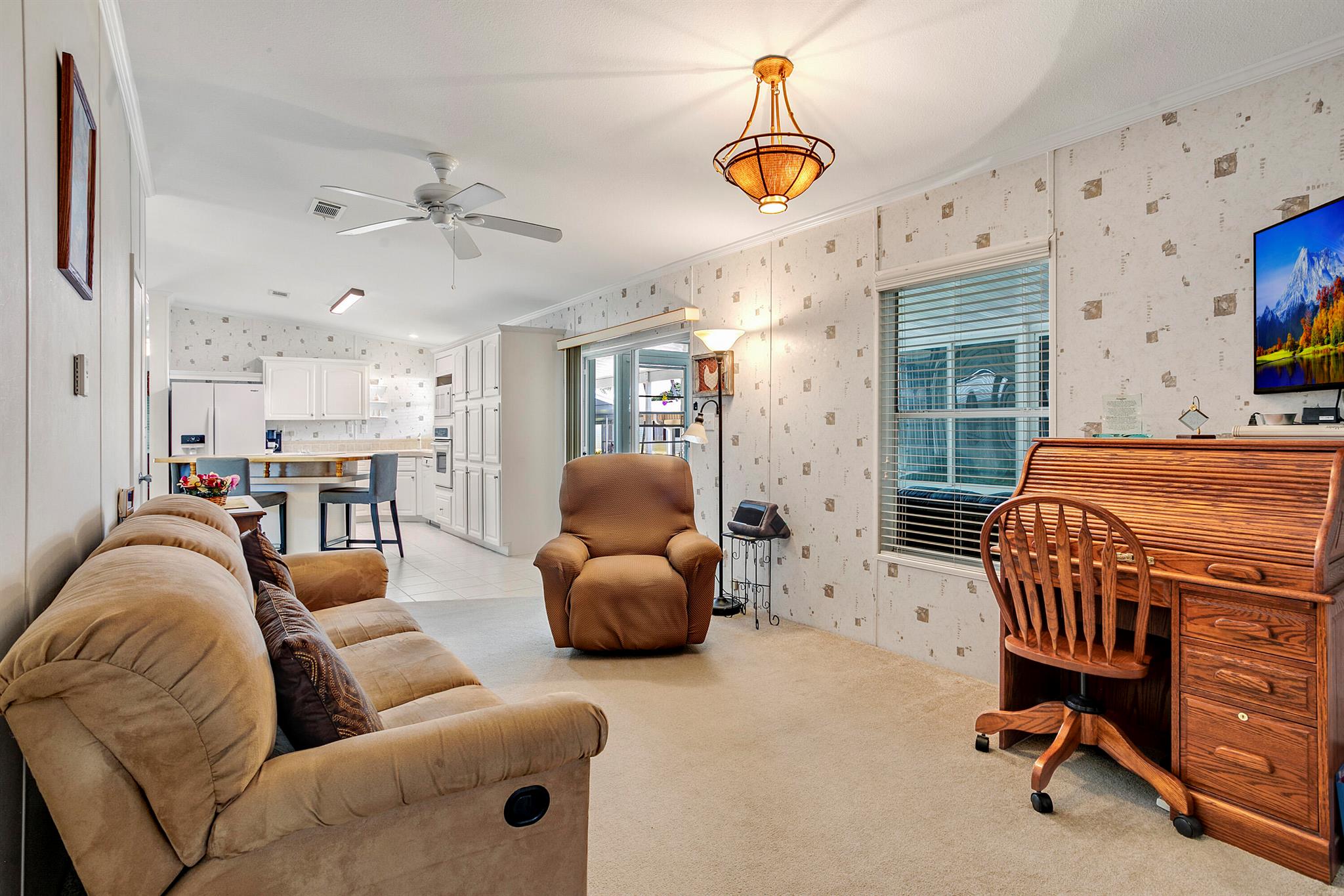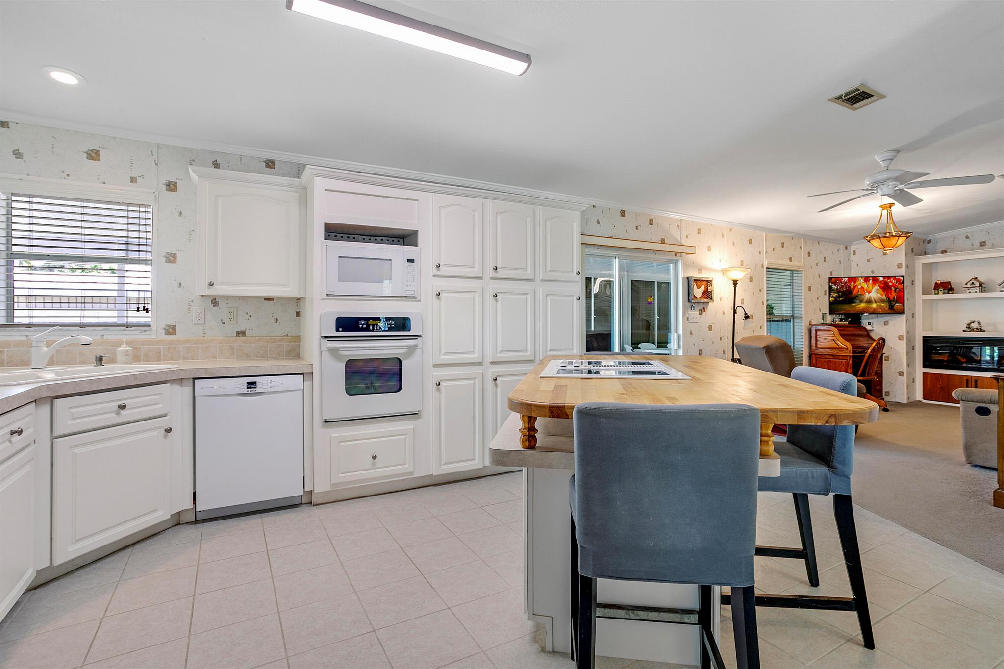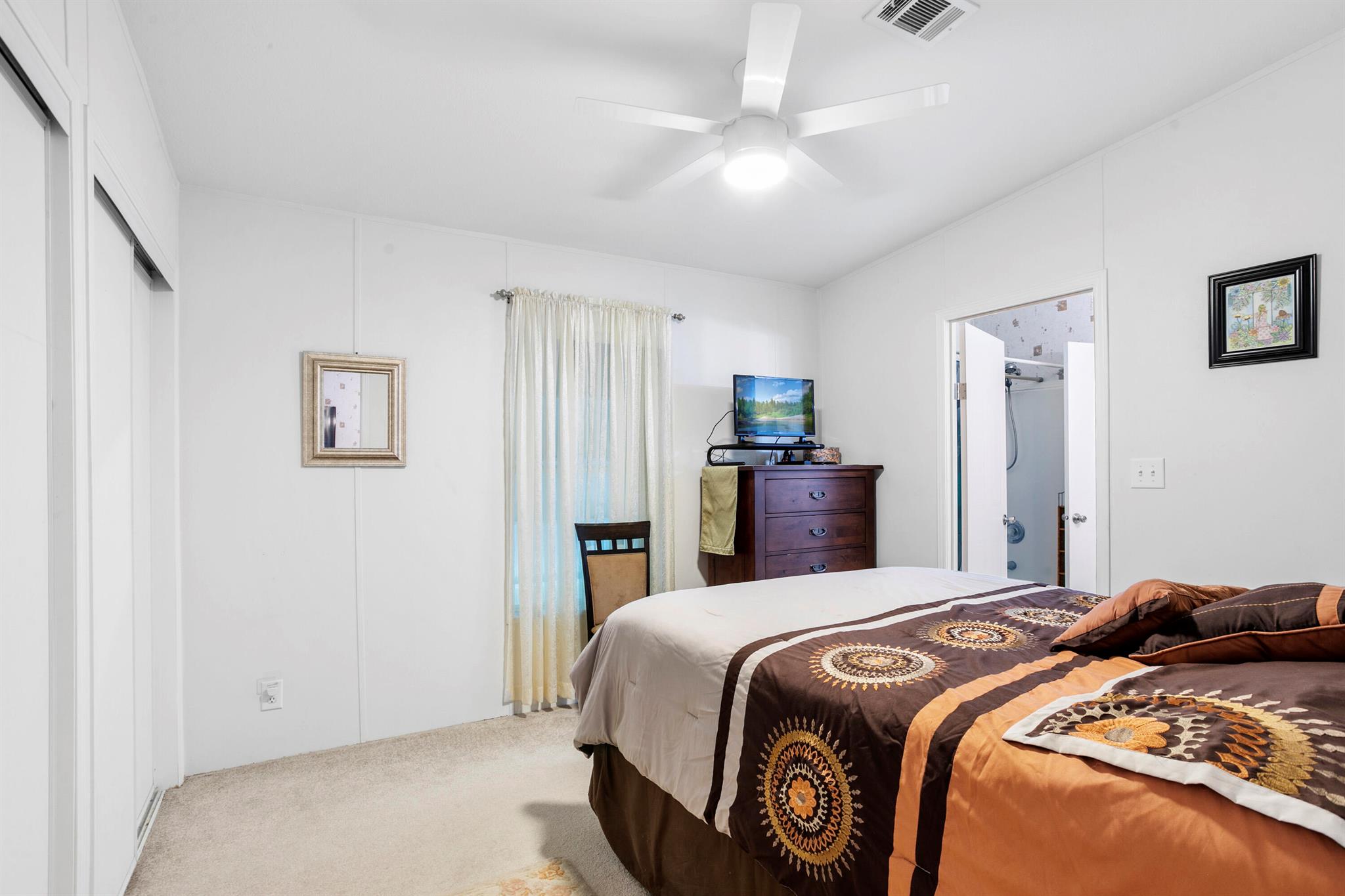 One of the largest 2 Bedroom, 2 Bathroom homes in this sought-after 55+ gated community! Ideally situated on a corner lot with only one neighbor, this spacious residence offers a Family Room, Living Room, Dining Room, and an Open Kitchen with a cooktop island and abundant cabinetry. Vaulted ceilings, interior laundry, and extra storage add to the appeal. The Guest Bedroom includes a Jack & Jill bath with a tub/shower combo. The expansive Main Bedroom features generous closet space and an ensuite with dual sinks and a step-in shower. Enjoy year-round comfort in the raised glass-enclosed patio, plus an attached shed/workshop. Impeccably maintained inside and out, with lush landscaping and charming flowers. Includes Drywall construction with 2x6 studs, a special seal on roof to extend life