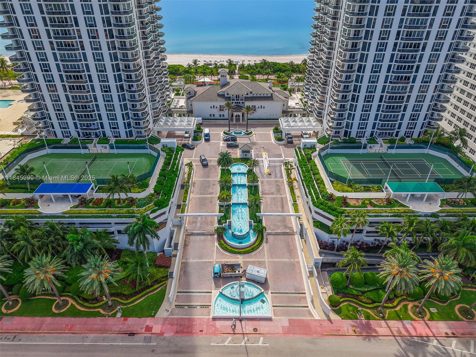 Welcome to a stunning oceanfront 2 bed + den & 2 full baths unit. The den is currently set up as an office featuring two murphy beds & can easily function as a 3rd bedroom. Boasts an open concept kitchen with a spacious island, perfect for entertaining. Floor to ceiling windows with an expansive terrace offers views of the ocean and bay ideal for morning coffee or evening relaxation. Residents of this full service building enjoy first-class amenities including 24-hour security, valet, concierge, tennis courts, a heated pool, fitness center, complimentary classes (yoga, Pilates, aerobics, Zumba), a 16,000 sq. ft. oceanfront club and spa, steam rooms, saunas, hot tubs, and on-site massage therapists. Live the resort lifestyle every day - this is oceanfront luxury redefined.