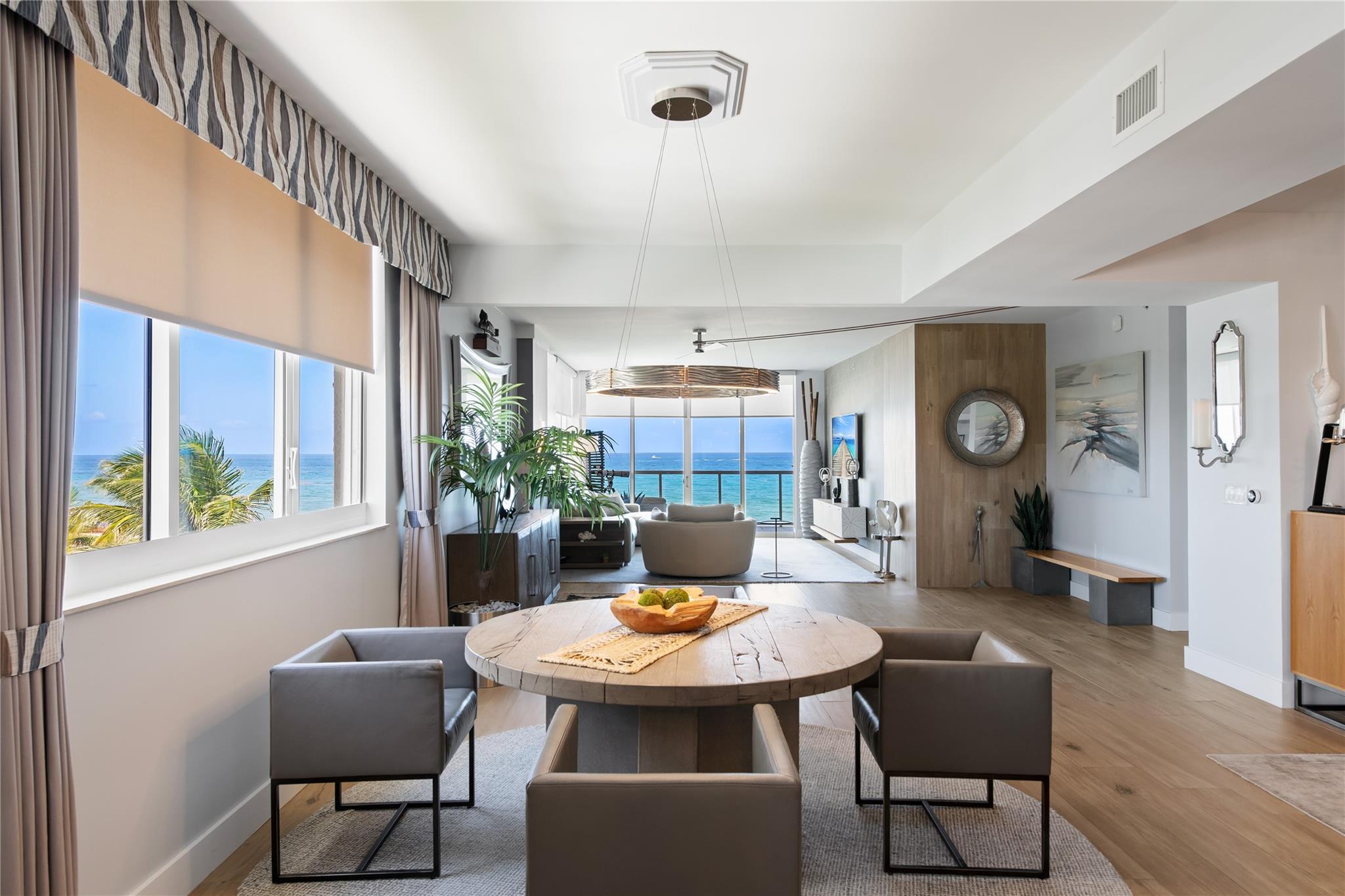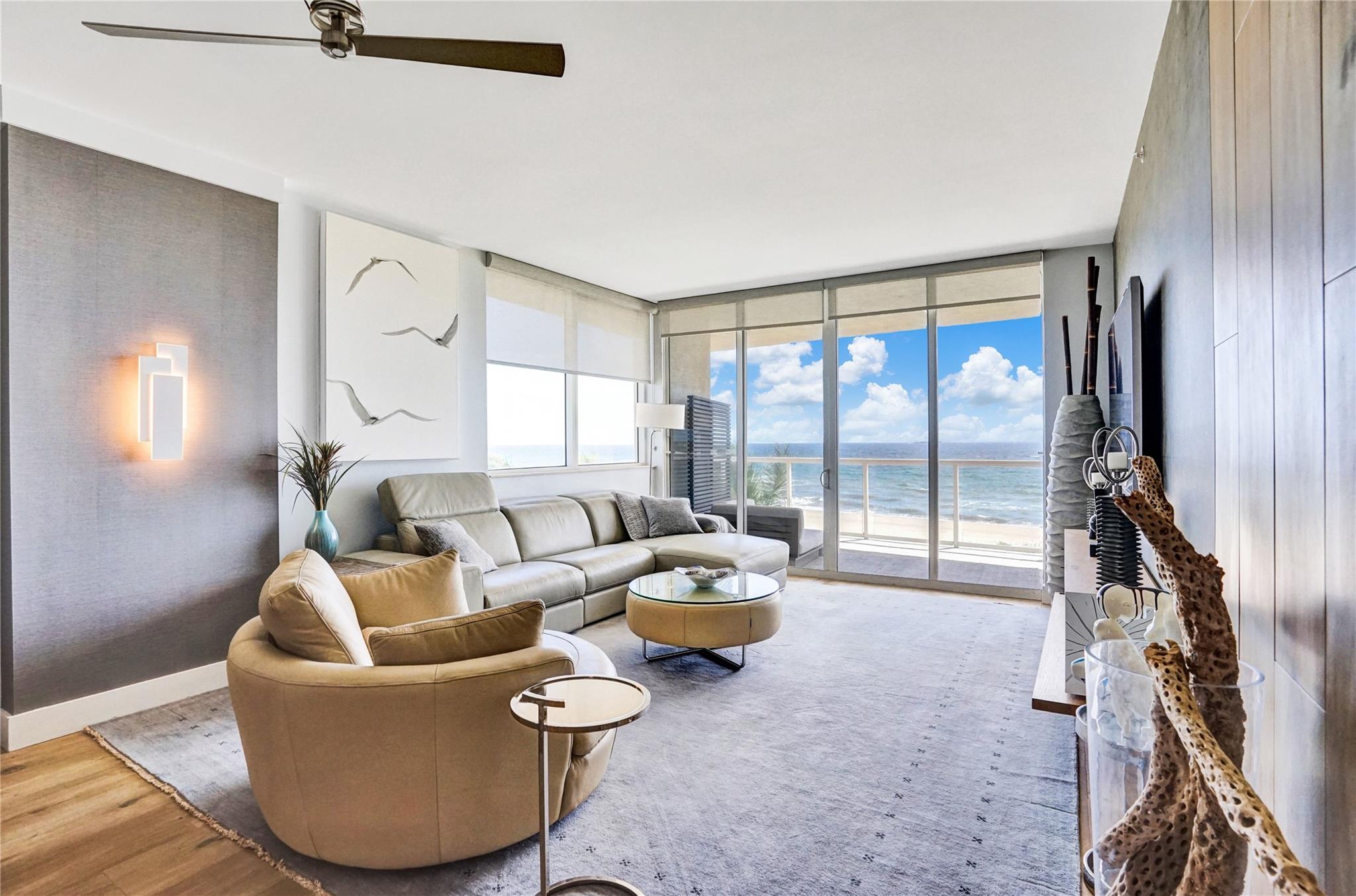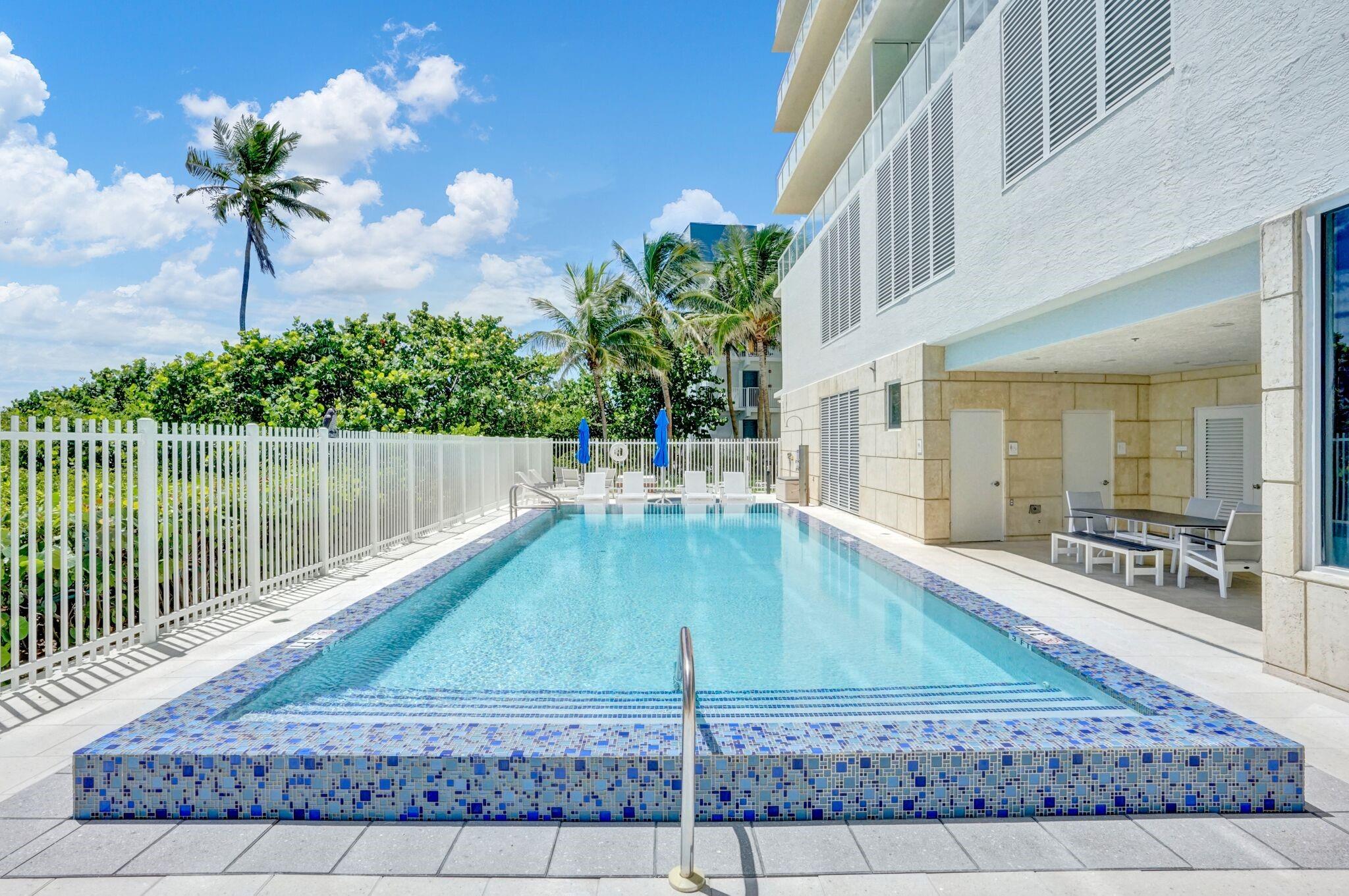 Unique private boutique oceanfront 32 unit Condominium. Quiet and highly secure building offering valet services, gym, pool, jacuzzi. This residence is a rare find with private elevator into your private foyer. This designer 2600 sq ft 3 bedroom 2.5 bath corner unit is situated on the Atlantic Ocean with expansive balconies offering a spectacular direct ocean and city views. Split floor plan with 2 master bedrooms the 3rd a designated office. Spa like feel with many designer touches including private foyer with fountains upon entering, soaking bathtub with ocean views, Viking stove and high end appliance package, remote window treatments, whole condo water filtration system. Location, location, location! Walking distance to oceanfront restaurants, pier and more!