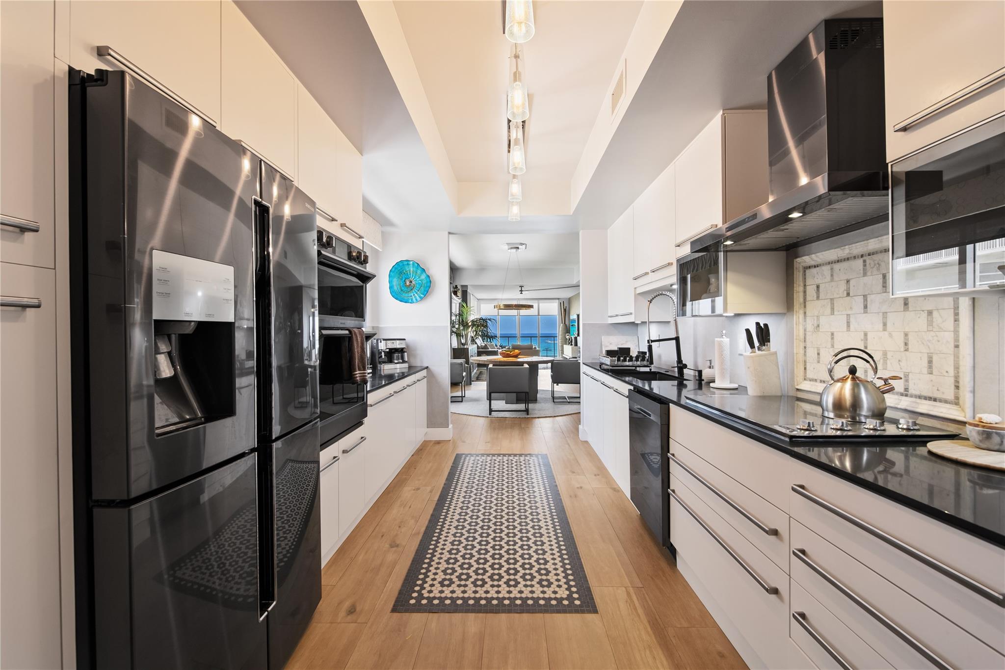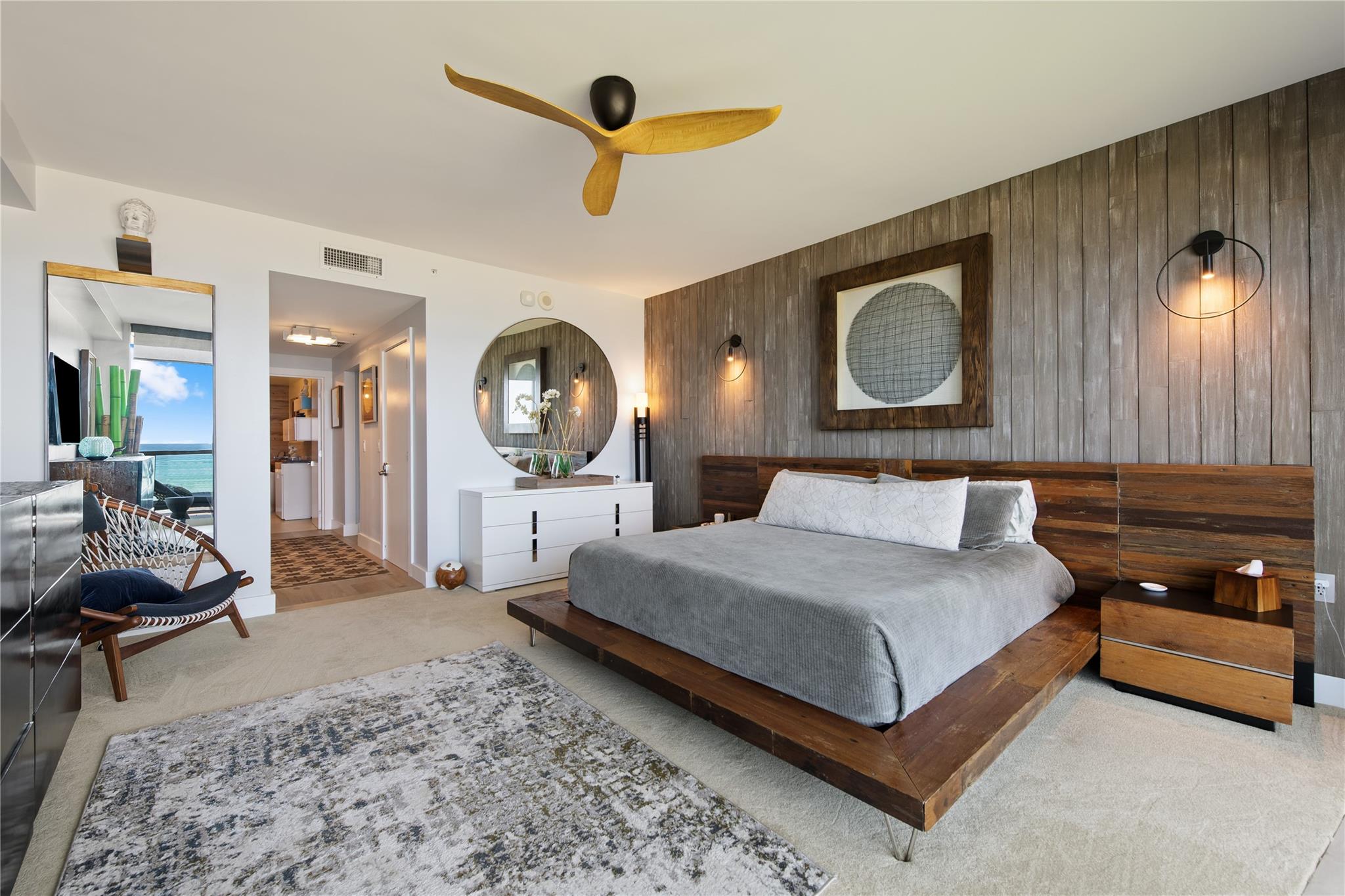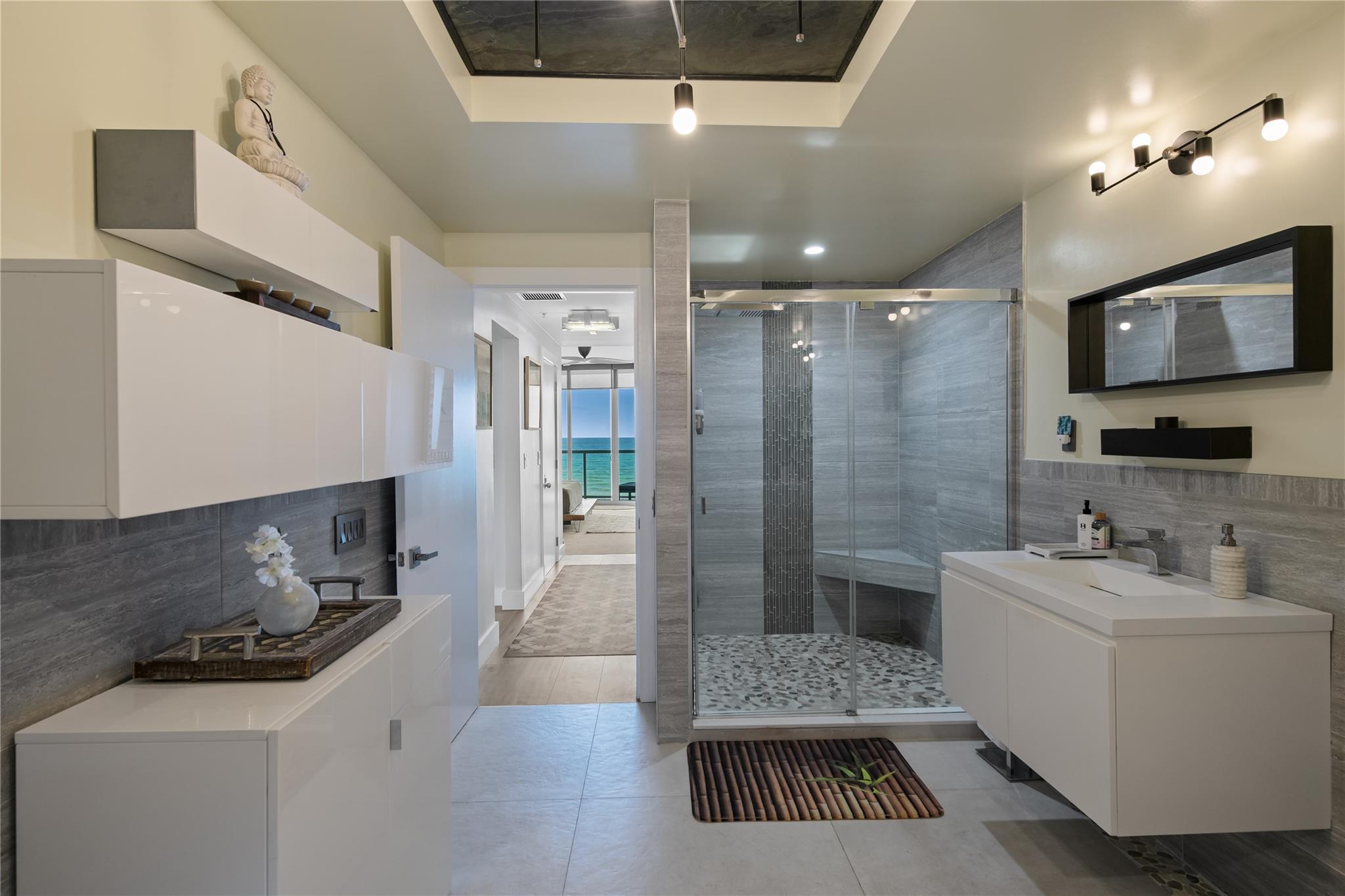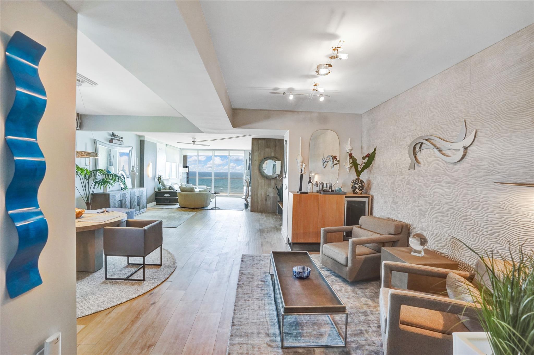 Unique private boutique oceanfront 32 unit Condominium. Quiet and highly secure building offering valet services, gym, pool, jacuzzi. This residence is a rare find with private elevator into your private foyer. This designer 2600 sq ft 3 bedroom 2.5 bath corner unit is situated on the Atlantic Ocean with expansive balconies offering a spectacular direct ocean and city views. Split floor plan with 2 master bedrooms the 3rd a designated office. Spa like feel with many designer touches including private foyer with fountains upon entering, soaking bathtub with ocean views, Viking stove and high end appliance package, remote window treatments, whole condo water filtration system. Location, location, location! Walking distance to oceanfront restaurants, pier and more!