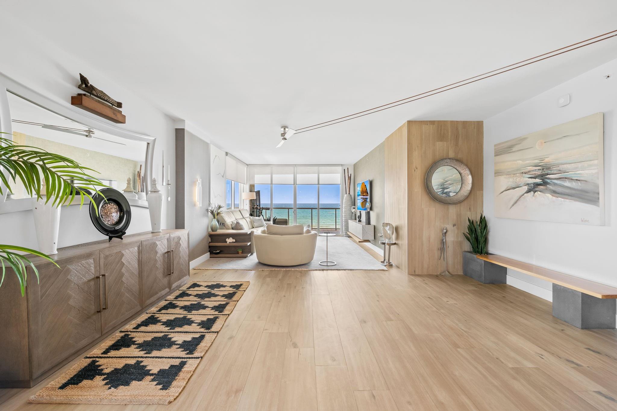 Unique private boutique oceanfront 32 unit Condominium. Quiet and highly secure building offering valet services, gym, pool, jacuzzi. This residence is a rare find with private elevator into your private foyer. This designer 2600 sf 3bedroom 2.5 bath corner unit is situated on the Atlantic Ocean with expansive balconies offering a spectacular direct ocean and city views. Split floor plan with 2 master bedrooms the 3rd a designated office. Spa like feel with many designer touches including private foyer with fountains upon entering, soaking bathtub with ocean views, Viking stove and high end appliance package, remote window treatments, whole condo water filtration system. Location, location, location! Front row seat to 4th of July fireworks and Veterans Day drone show from your balcony and