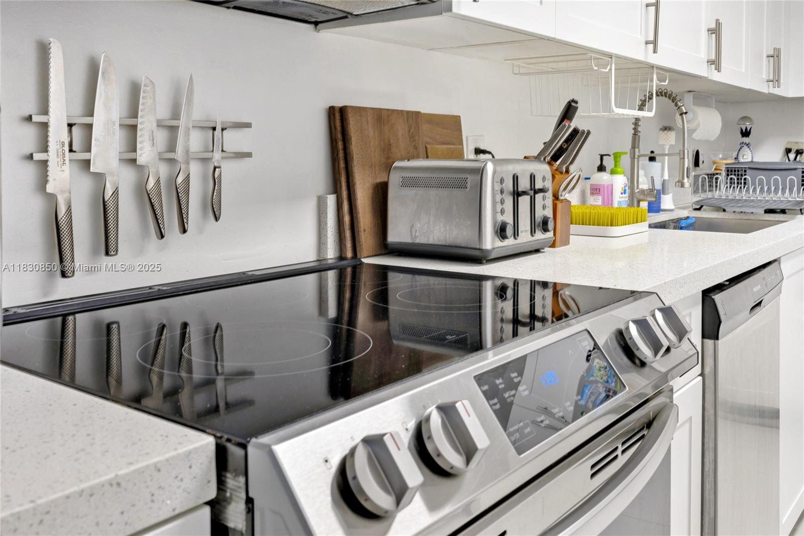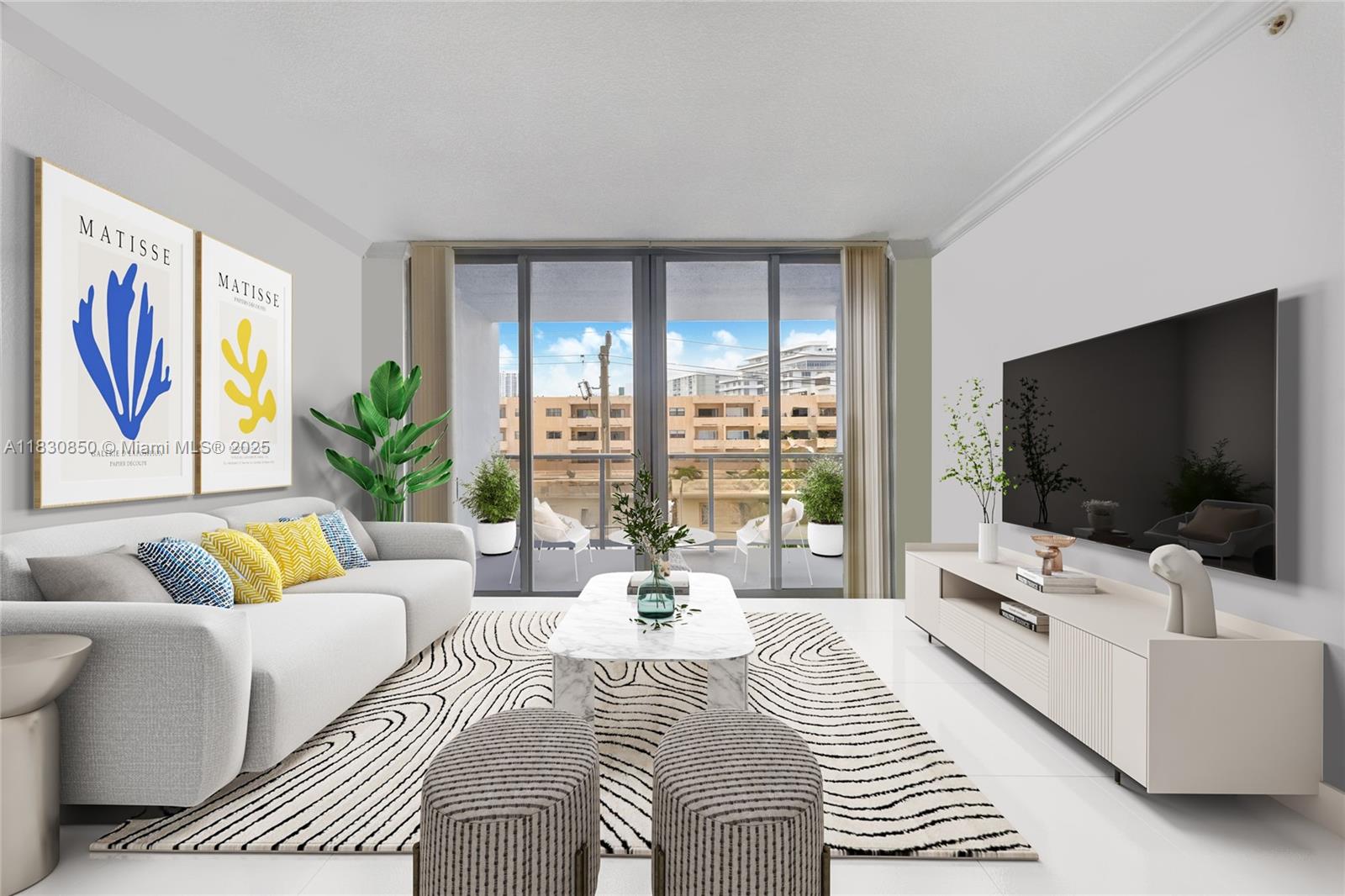 All new renovation at 401 BLU w/ south exposure! This sought after 08 line is largest 1/1 floorplan with 921 sq ft of space. Beautiful 24x24 porcelain floors , new kitchen with quartz countertops and white cabinetry , stainless steel appliances, and LED lighting. Updated bath with new vanity and tile. Other features include walk in closets , high ceilings w/ crown moldings, hurricane impact windows, and spacious private recessed balcony. This building has completed recertification and is fully funded w/ big reserves! Amenities include covered parking , 24/7 front desk, roof top pool with 360 views, and fitness center. Red hot North Beach Town Center location with Publix, dining, shopping , entertainment, and your beach entrance are all just steps away! No assessments!