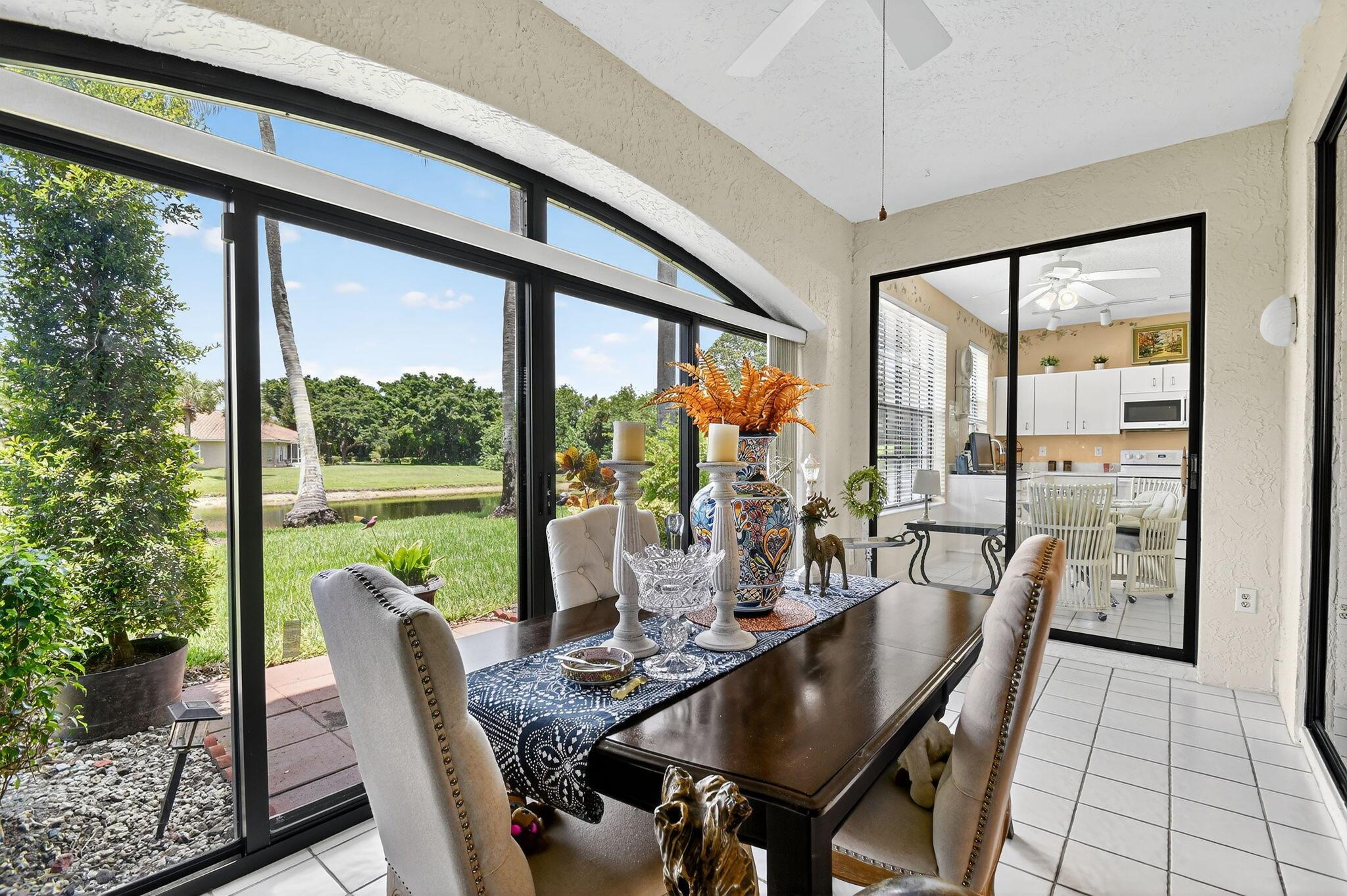 You found your home! Step into this bright and airy coach home, with views of the water from the glass enclosed Florida room. The kitchen is cheerful and light filled with white cabinetry with a large pantry. Living area is very spacious and versatile. Primary bedroom is large with a walk-in closet. The ensuite bath features a large garden tub and separate shower. The community boost a non membership clubhouse with plenty of activities, 3 pools, tennis, pickleball courts , fitness center, many clubs and more. All nestled in a lovely park-like setting. All close to shopping ,entertainment, restaurants and more. See it today! Enjoy the great Florida lifestyle!