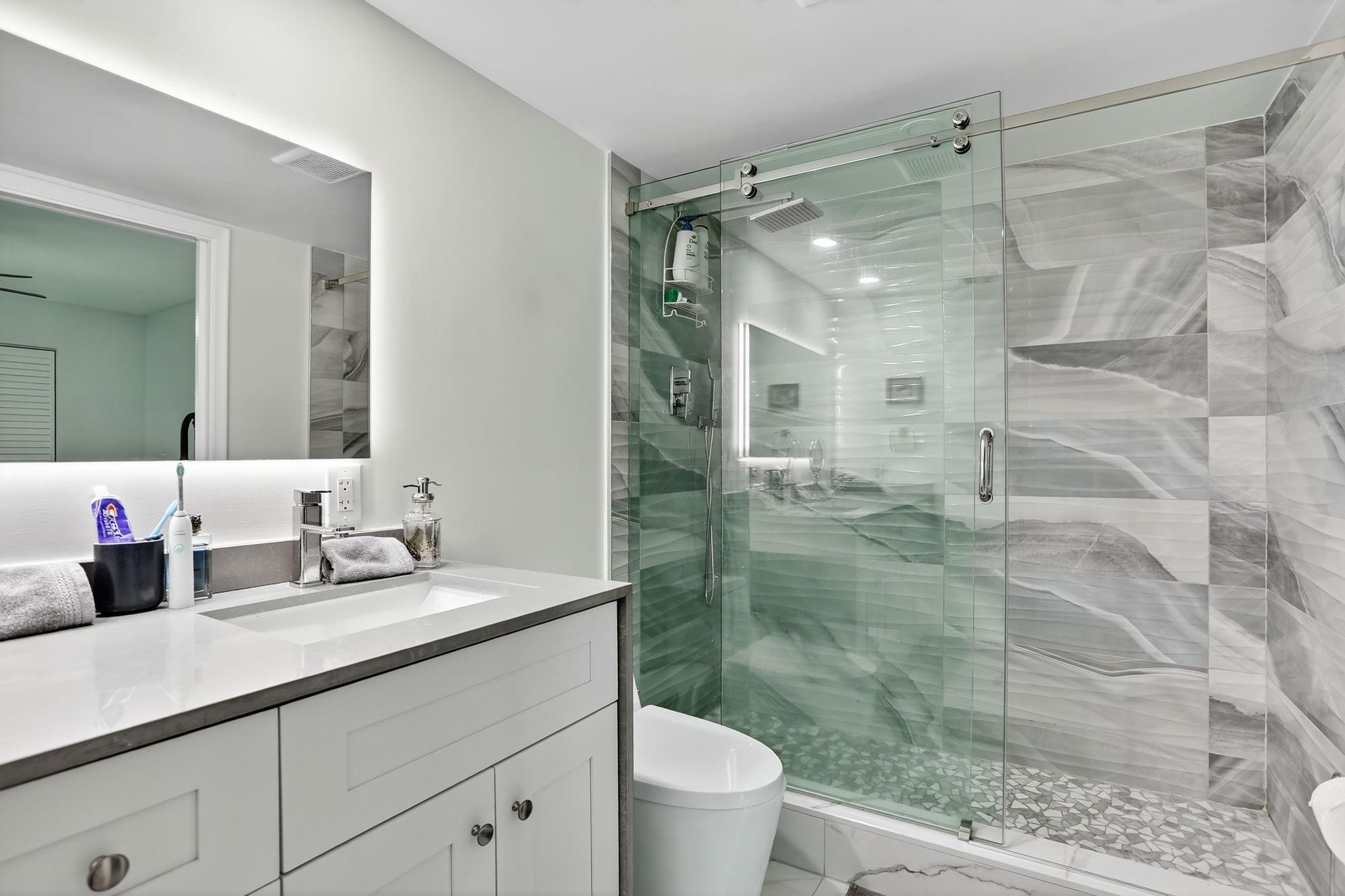 THIS IS IT — WYNMOOR'S MOST BREATHTAKING VIEW of the golf course, lake, and clubhouse! This fully remodeled 2BR/2BA condo stuns with sleek porcelain flooring, a gorgeous designer kitchen with quartz waterfall countertops and breakfast bar, shaker cabinetry, and top-tier stainless steel appliances. Both bathrooms have been tastefully updated, and there's a washer/dryer right in the unit. Impact windows throughout. Set in a guard-gated, 24/7 secured community with unbeatable amenities: a brand-new pool with BBQ area, 18-hole golf course, clubhouse, restaurant, tennis & pickleball, a 962-seat theater, fitness & wellness classes, billiards, 18 heated pools, a resistance pool, hot spa, shuttle service, and 80+ clubs to help you live your best tropical life!