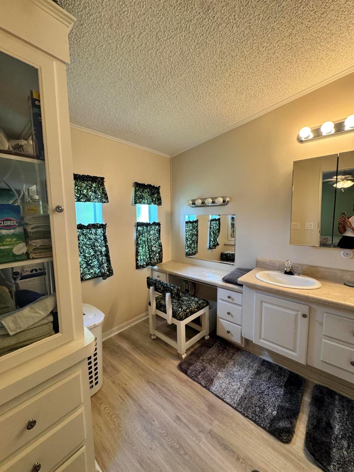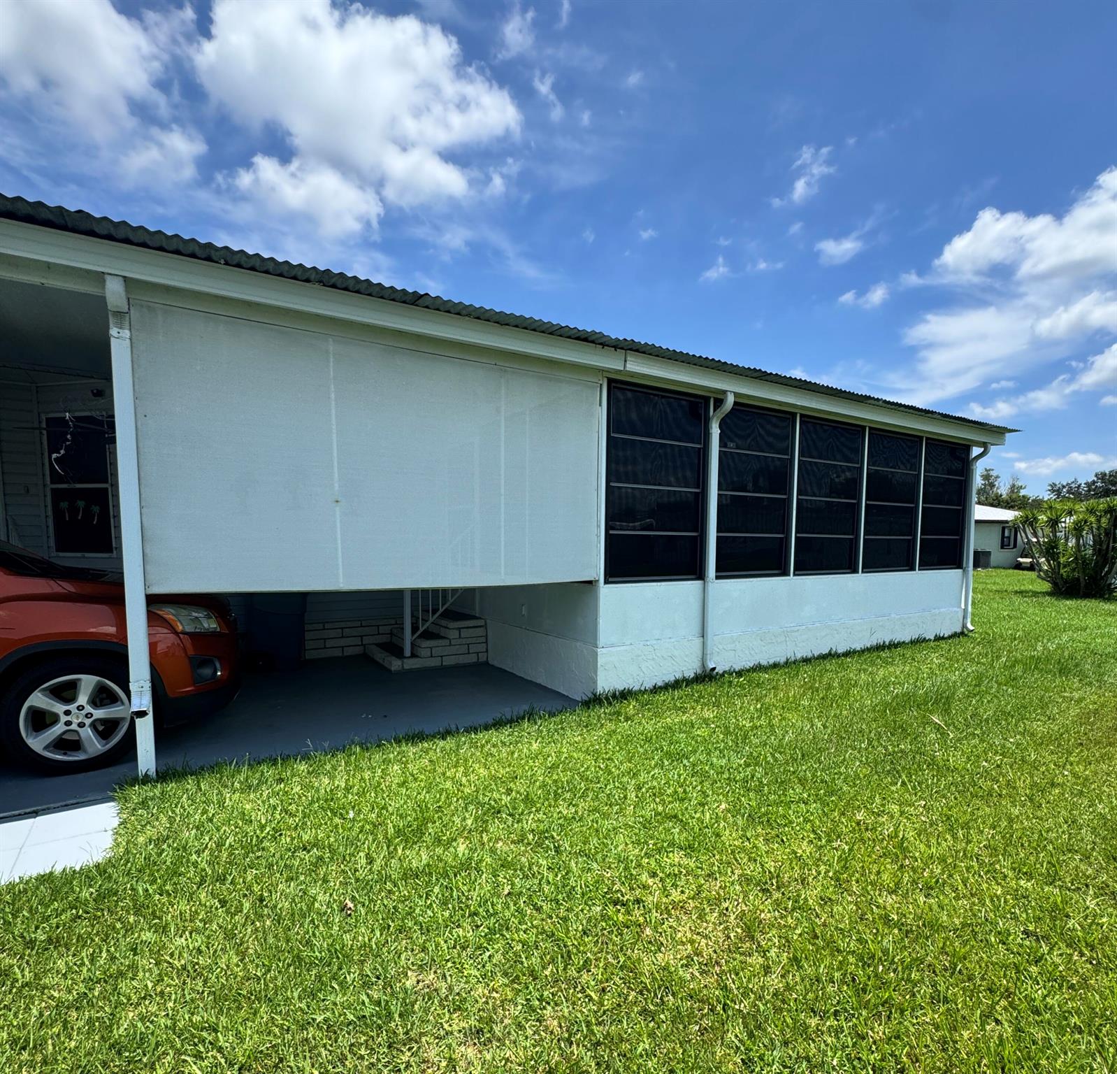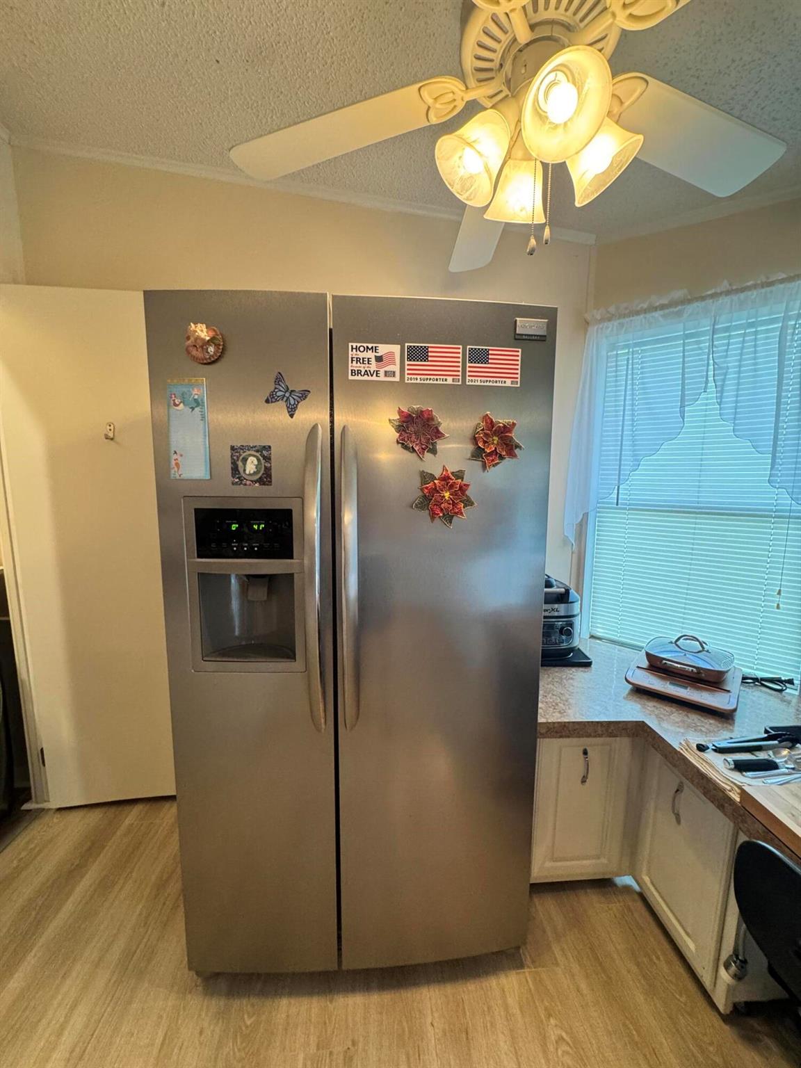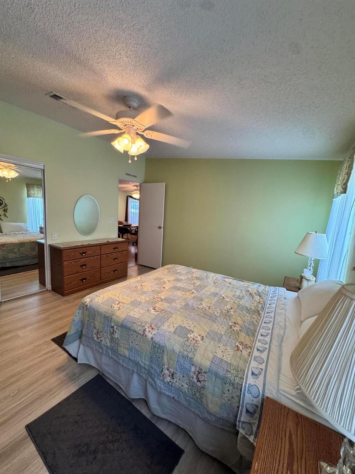 Lovely 3 bedroom 2 bath home in the desirable 55+community of Spanish Lakes Fairways. Home is on a very quite cal de sac. Spacious living room as well as oversized kitchen. Home has a screened in lania perfect for morning coffee or evening cocktails. Laminate and carpet flooring. Kitchen redone in 2015. kitchen features pull out shelves, large sink with window. coffee bar. Wiring in home redone in 2012. Dining room has built in shelves for added storage. Primary suite bathroom has dual sinks, built in vanity and build in shelves in bathroom. Roof is new 2025. A/C is 2022 Water heater was replaced in 2018. Lawn care and trash removal included in lot rent. 18 hole golf course included in lot rent. 2 pools, tennis, pickleball, bocce ball, shuffle board. club house and much more.