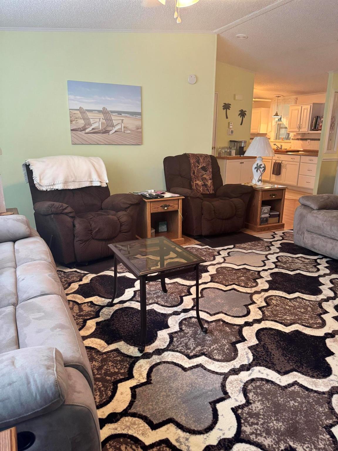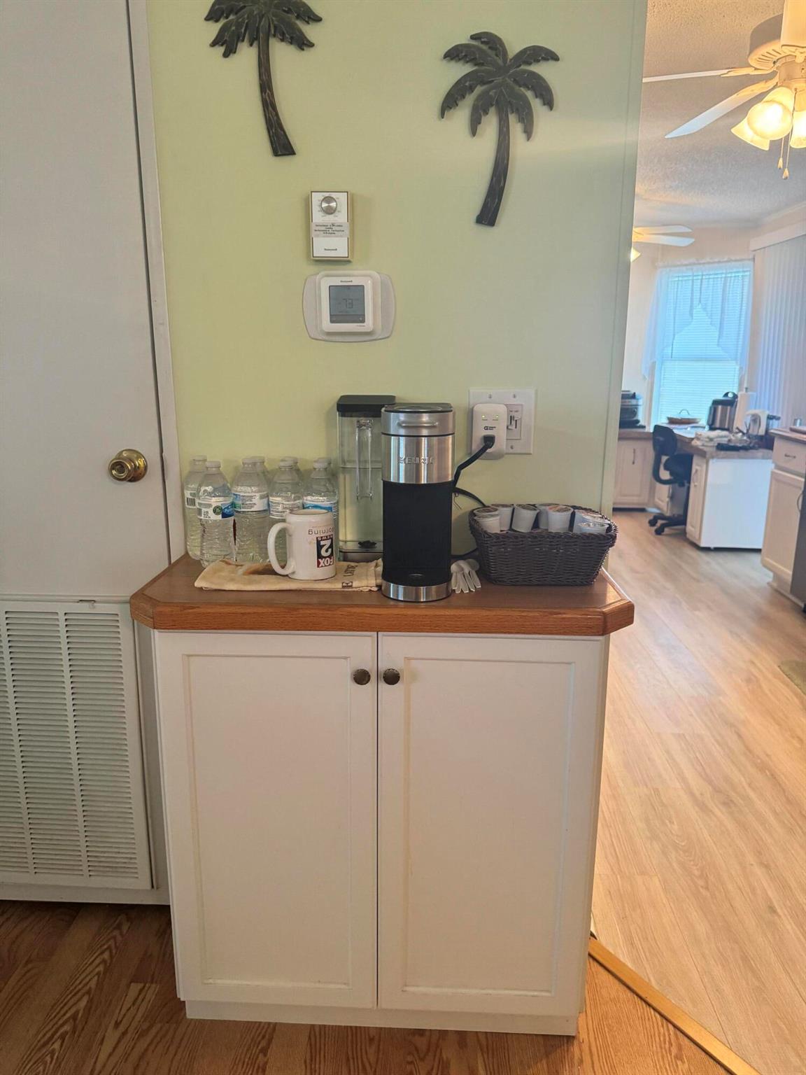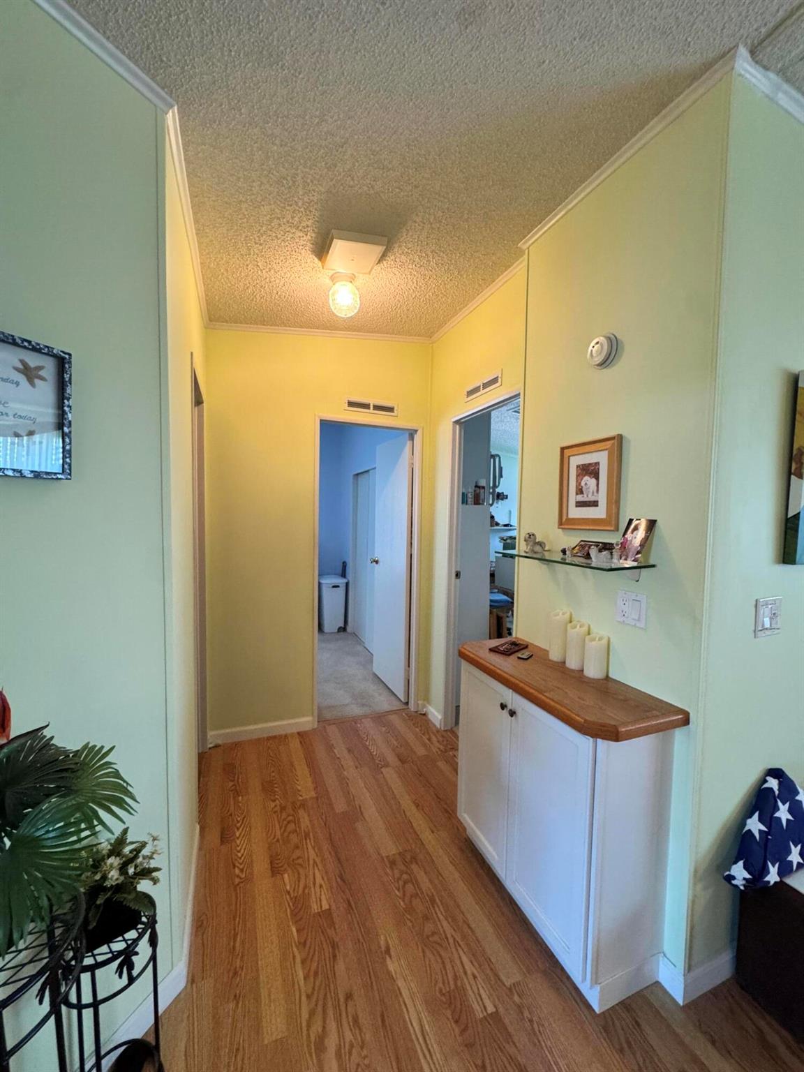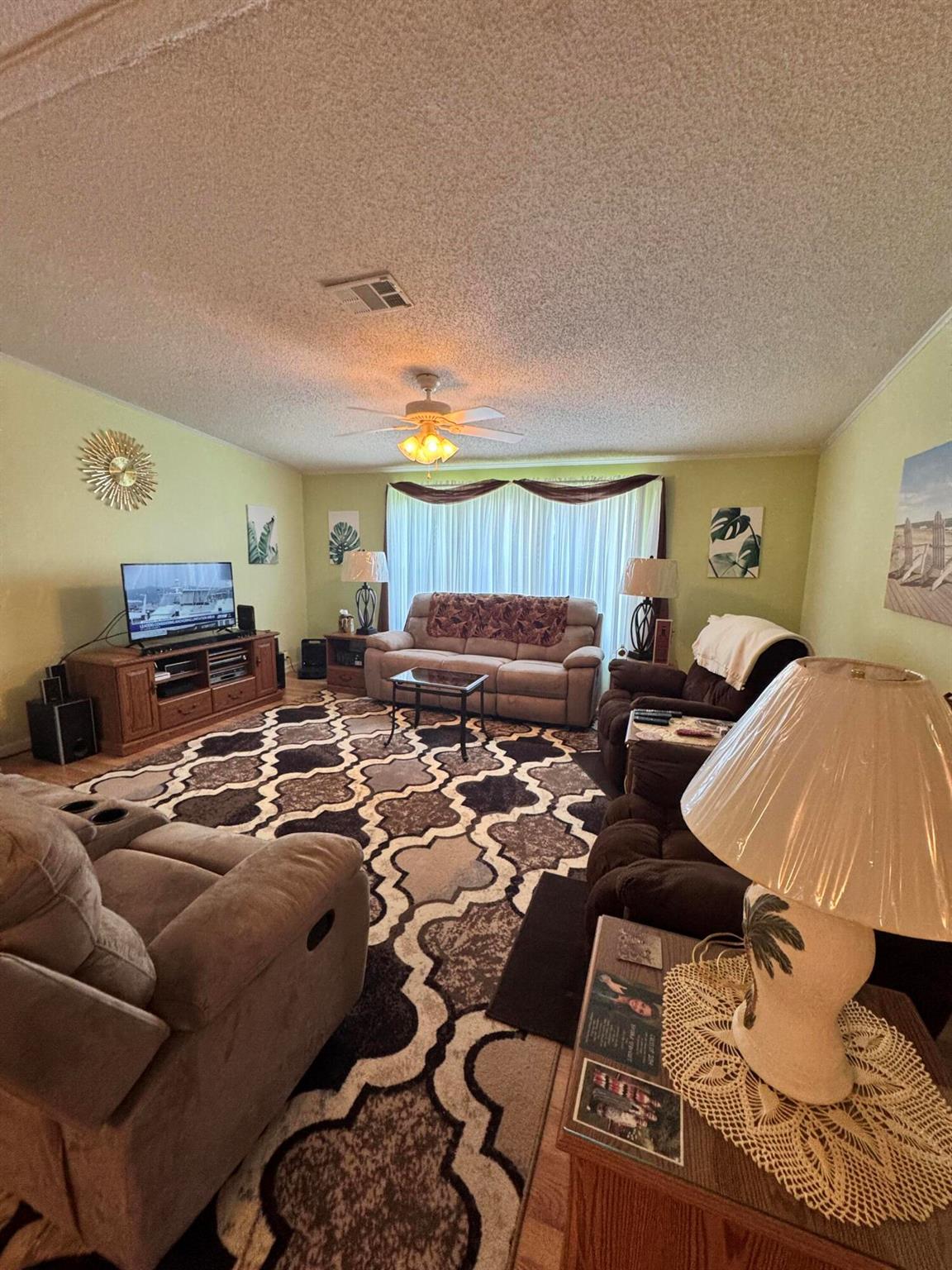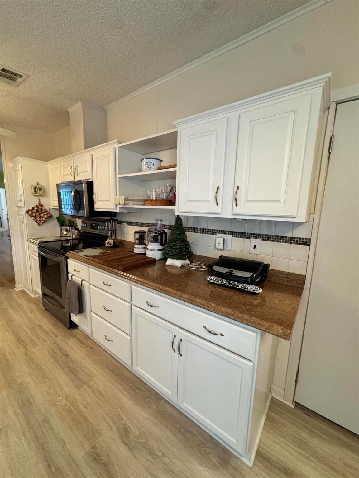 Lovely 3 bedroom 2 bath home in the desirable 55+community of Spanish Lakes Fairways. Home is on a very quite cal de sac. Spacious living room as well as oversized kitchen. Home has a screened in lania perfect for morning coffee or evening cocktails. Laminate and carpet flooring. Kitchen redone in 2015. kitchen features pull out shelves, large sink with window. coffee bar. Wiring in home redone in 2012. Dining room has built in shelves for added storage. Primary suite bathroom has dual sinks, built in vanity and build in shelves in bathroom. Roof is new 2025. A/C is 2022 Water heater was replaced in 2018. Lawn care and trash removal included in lot rent. 18 hole golf course included in lot rent. 2 pools, tennis, pickleball, bocce ball, shuffle board. club house and much more.