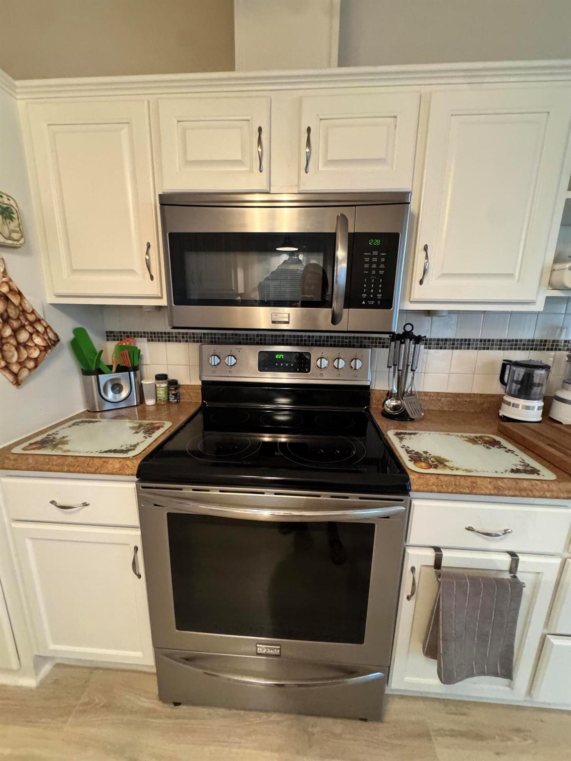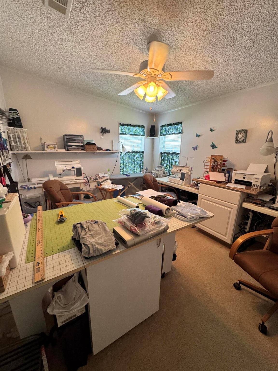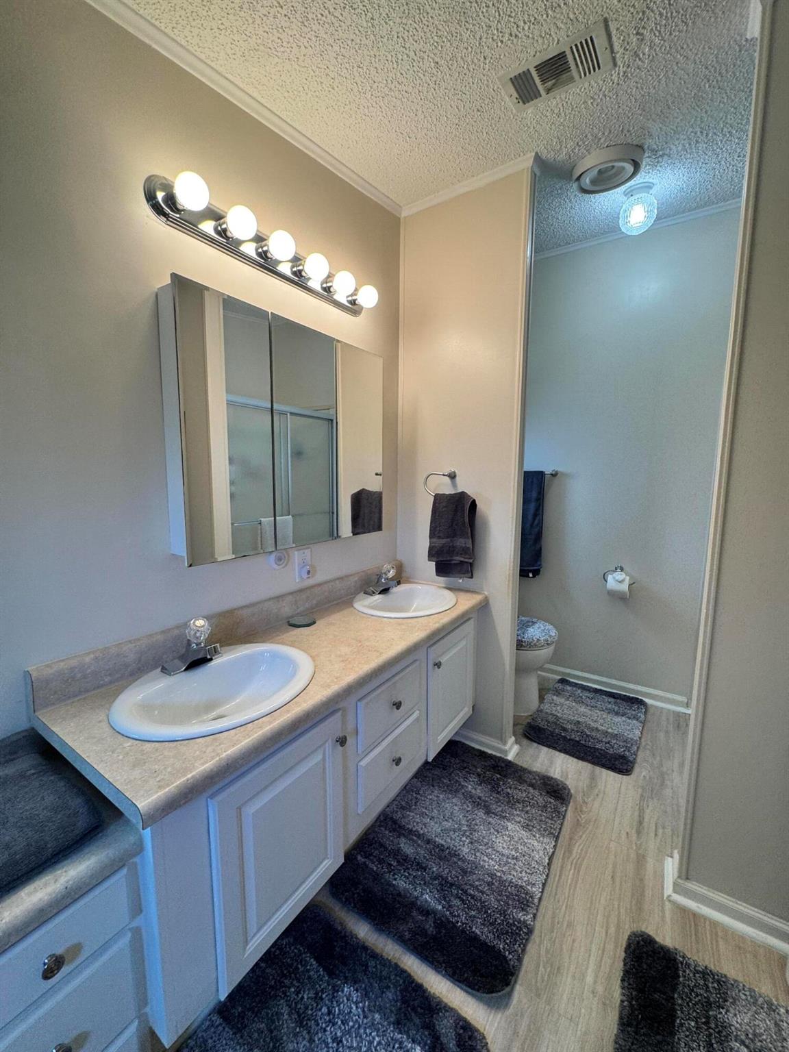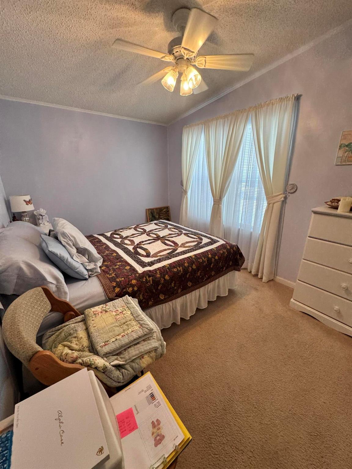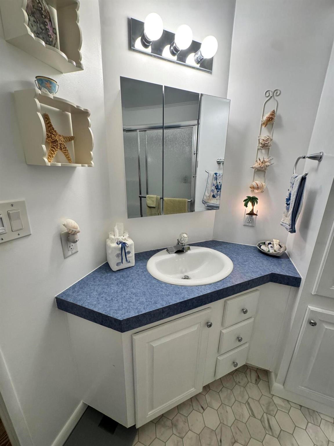 Lovely 3 bedroom 2 bath home in the desirable 55+community of Spanish Lakes Fairways. Home is on a very quite cal de sac. Spacious living room as well as oversized kitchen. Home has a screened in lania perfect for morning coffee or evening cocktails. Laminate and carpet flooring. Kitchen redone in 2015. kitchen features pull out shelves, large sink with window. coffee bar. Wiring in home redone in 2012. Dining room has built in shelves for added storage. Primary suite bathroom has dual sinks, built in vanity and build in shelves in bathroom. Roof is new 2025. A/C is 2022 Water heater was replaced in 2018. Lawn care and trash removal included in lot rent. 18 hole golf course included in lot rent. 2 pools, tennis, pickleball, bocce ball, shuffle board. club house and much more.