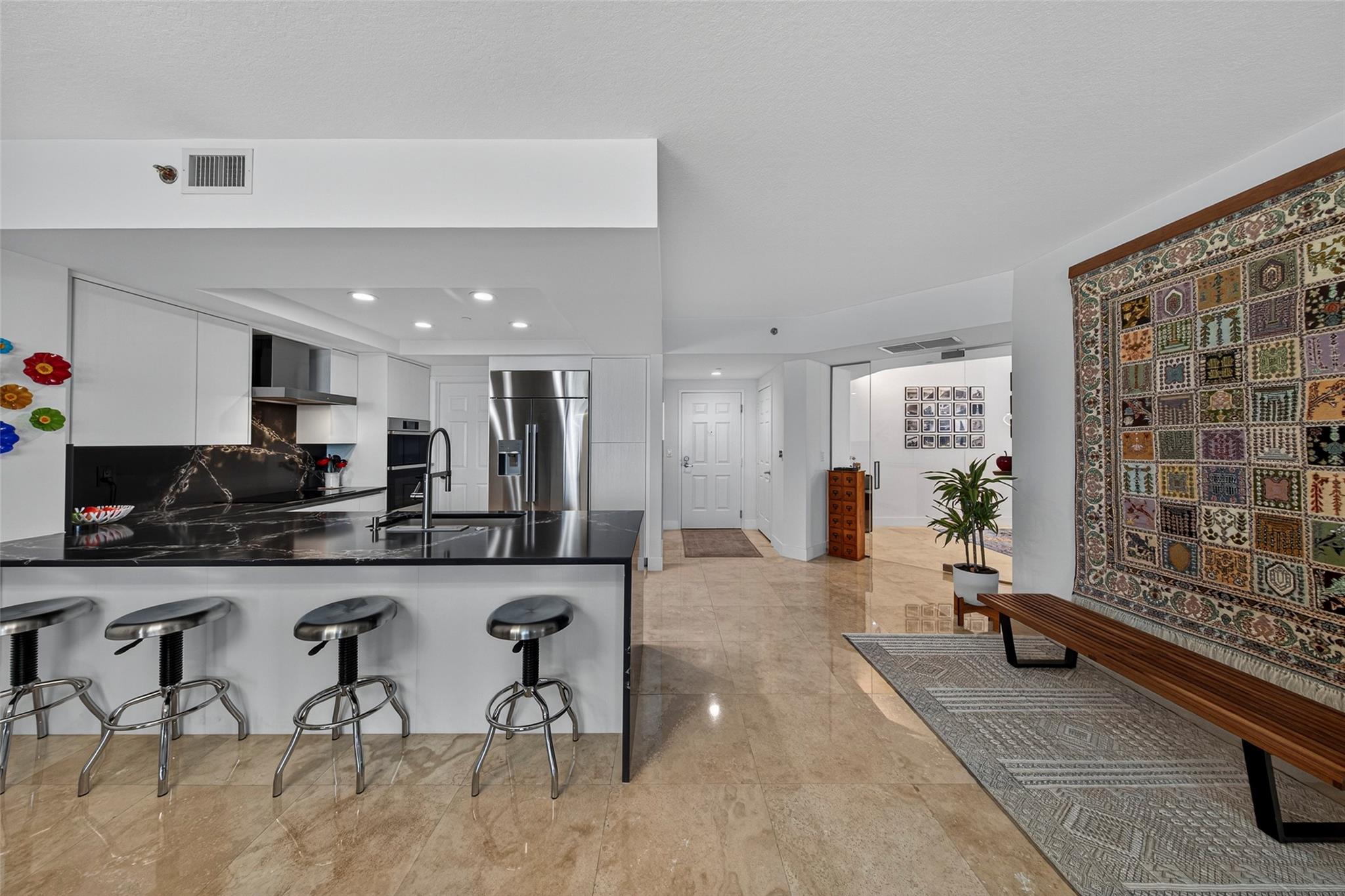 Discover this exquisitely remodeled 2-bedroom + den residence at The Port Condominium. Direct east-facing with ocean breezes and natural light, this designer-curated home features a chef’s kitchen with Dacor appliances, Ice Black Quartz waterfall counters, and custom cabinetry. Two spacious en-suite bedrooms include spa-style baths and walk-in closets. Full-size washer/dryer, newer A/C, 2 garage parking spaces, and air-conditioned storage. Resort-style amenities: attended lobby, business center, “premium” cable / High-Speed Internet, fitness center, saunas, club room, pool, and spa. Dockage available at Port Marina. Moments to the beach, dining, and all of Fort Lauderdale.