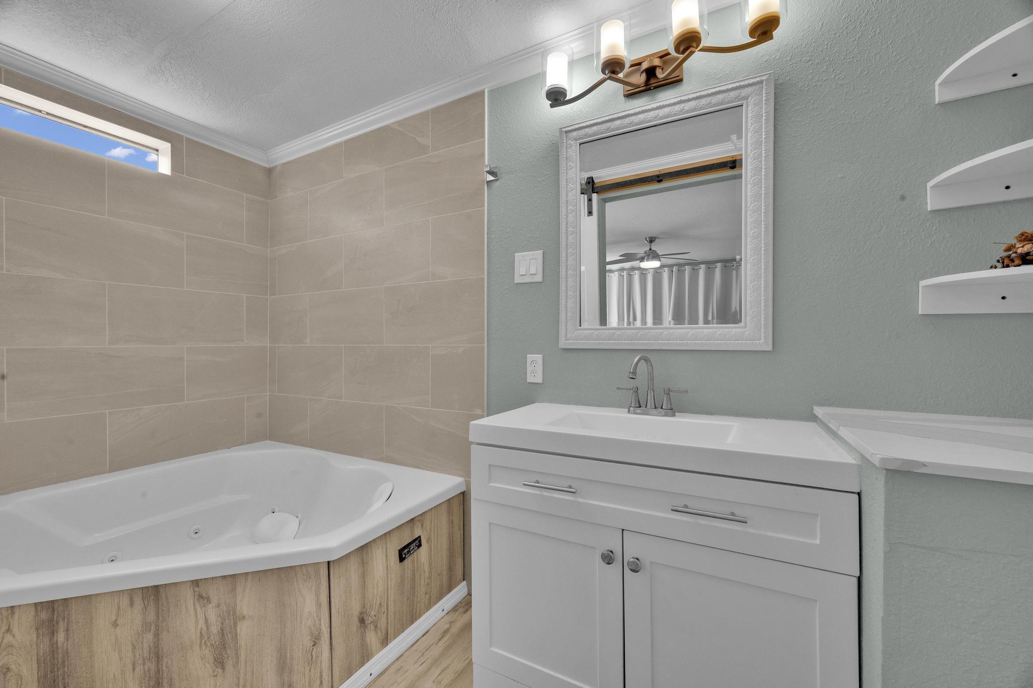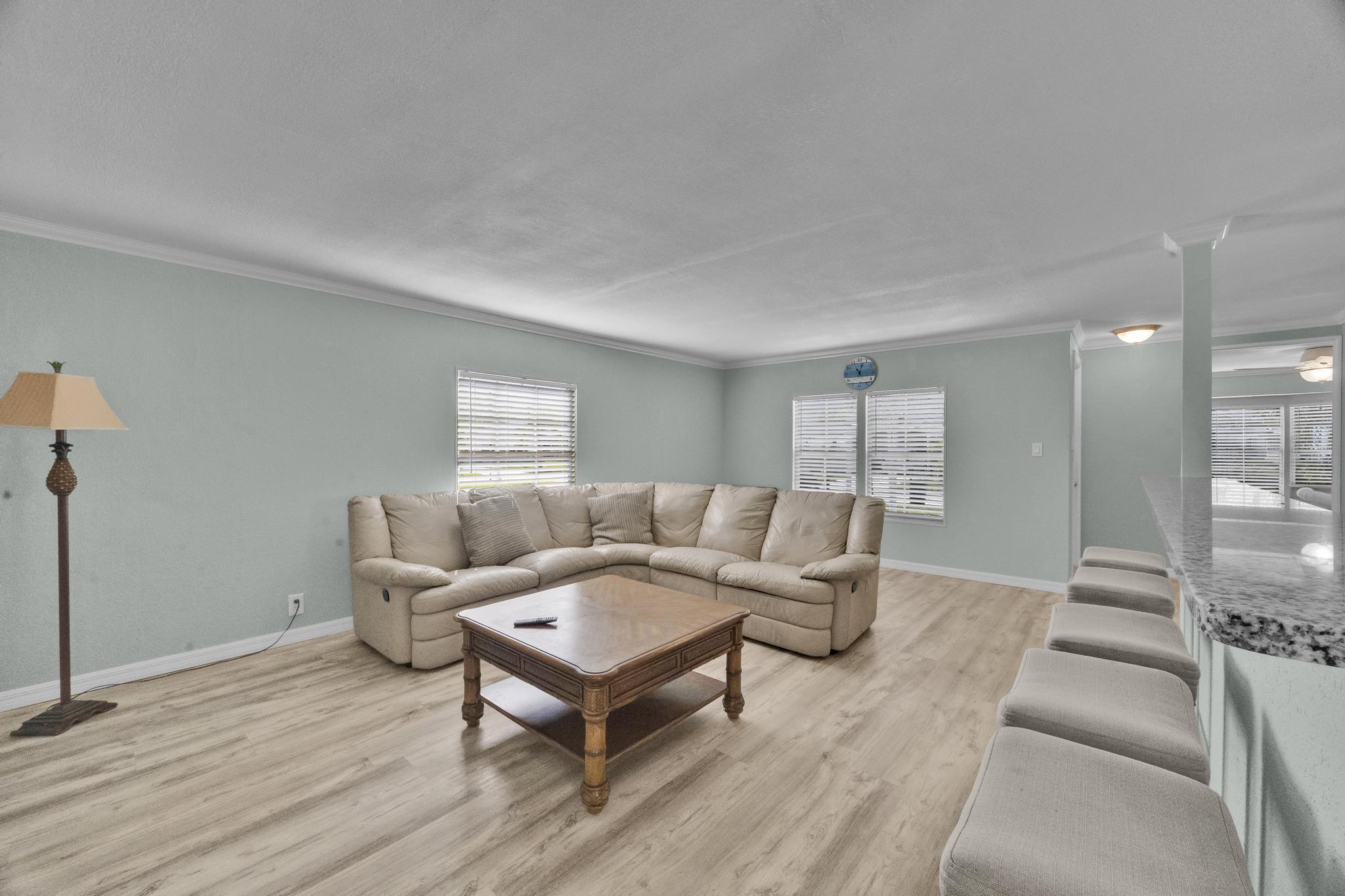 This stunning 2-bedroom, 2-bathroom mobile home has been completely remodeled with modern elegance and comfort in mind. Step inside to discover new LVT flooring throughout, complemented by stylish crown molding that adds a touch of sophistication. The brand-new kitchen boasts sleek white shaker cabinetry, with ample space featuring a large island. Both bathrooms have been full updated with modern vanities, new shower and a tub in the master. Perfectly situated in vibrant Port St. Lucie, this move-in-ready gem combines low-maintenance living making it great for anyone seeking a cozy haven. Don't miss this opportunity to own a beautifully renovated home in a prime location!