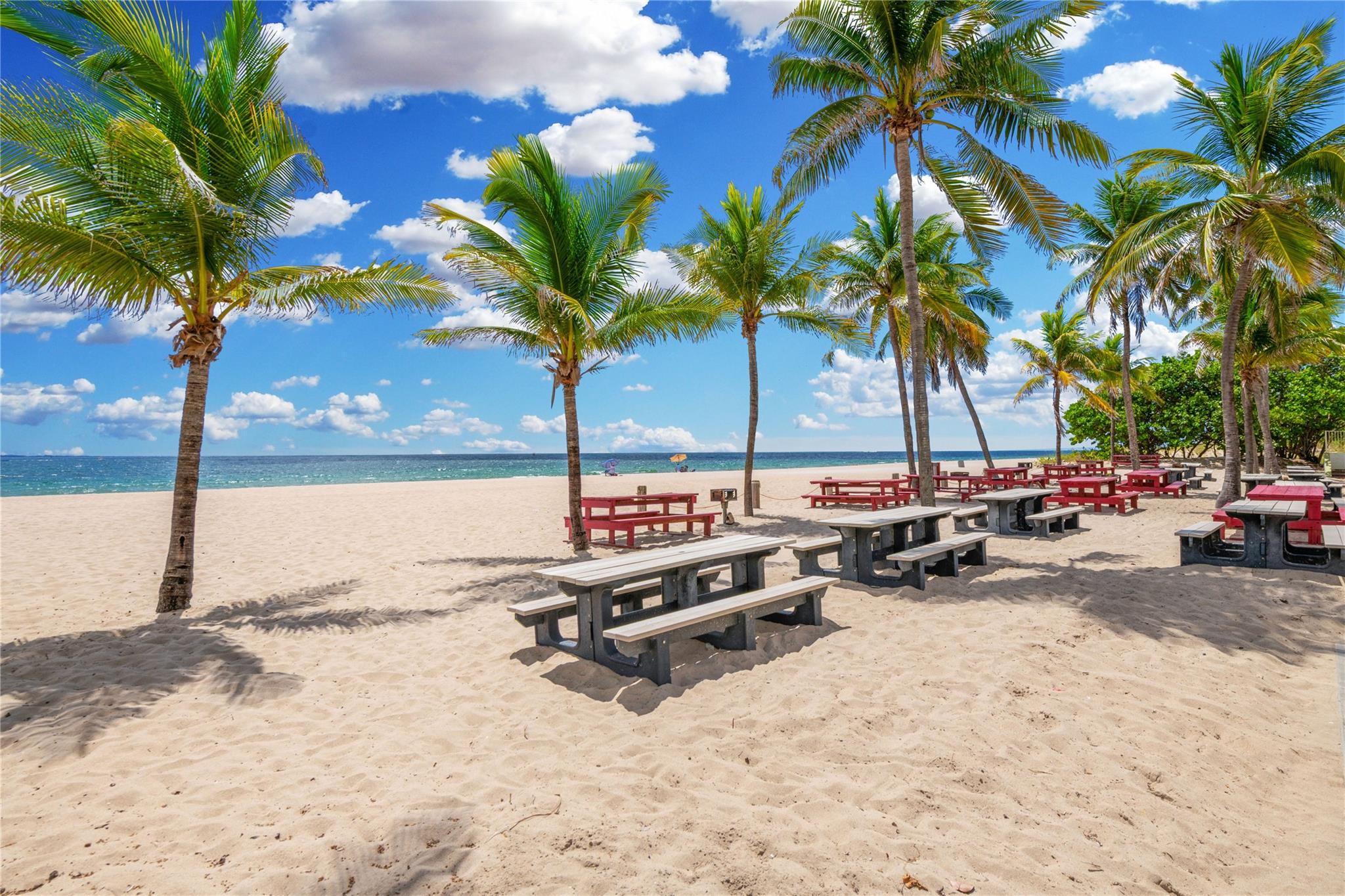 Enjoy coastal living in this beautifully maintained 2-bedroom, 2-bathroom condo just steps from the sand in vibrant Pompano Beach. This unit features a blend of tile and laminate flooring throughout, offering easy maintenance and comfort. Resort-Style Amenities Include: Beachfront recreation center with BBQ picnic area, Two fully equipped fitness centers, Two swimming pools, Billiard room, Clubhouse, On-site café serving breakfast and lunch, Bar/lounge, 24/7 secure lobby with guard, Private garage parking with elevator access. Cable and internet included in the monthly fee. Perfectly located within walking distance to shopping, dining, the fishing pier, Tiki bar, and all the entertainment Pompano Beach has to offer. The building is currently undergoing concrete restoration.