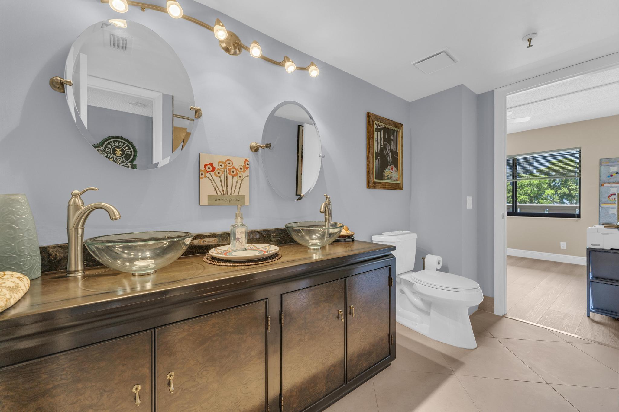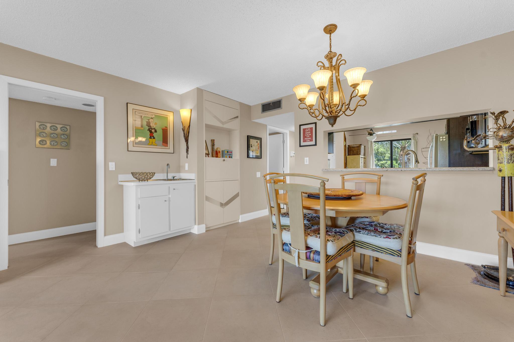 Beautiful condo PRICE DROP TO SELL!!! This is the Buckingham model. Largest in the community. Stunning, updated unit in mint condition. Direct center lake view. Warm and inviting colors. Shows like a model. Freshly painted! HURRICANE IMPACT windows and sliding doors The balcony has been totally opened to be a part of the living area. Sliding doors are gone!!! Large lovely diagonal rectified tile in the living area. High end vinyl flooring through the bedrooms. Beautifully renovated eat-in kitchen w/ high end wood cabinetry and granite countertops. Open and bright living, dining area w/ wet bar. X-large main bedroom w/ sitting area, 2 large walk-in closets, and tastefully updated bathroom. Large guest bedroom. Updated bathroom w/ shower and double sink vanity. Separate laundryroom.