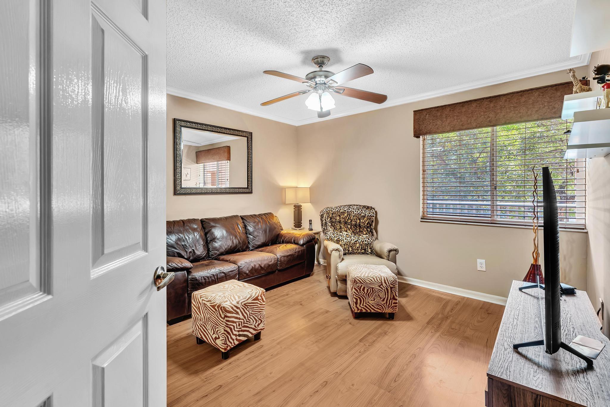 Live in paradise* As soon as you step into this unique home, you feel the warmth and welcoming invitation! One of a kind! Rare find!! Two beds, two baths. A gorgeous water view. Offering a stunning new white kitchen with cabinets, a lovely granite countertop & a unique new backsplash. Stainless steel apps, including a new fridge & garbage disposal. New wood flooring in the kit.& hallway & 2nd bedroom. Updated the master bathroom vanity's cabinets. An extended living room provides space, allowing for versatile use as a family room/office. Great for entertainment. Magnificent open layout & a beautiful split floor plan offer a comfortable living experience. The master suite features spacious walk-in closets, a light & bright space—an attractive, quiet community with a pool & small clubhouse.