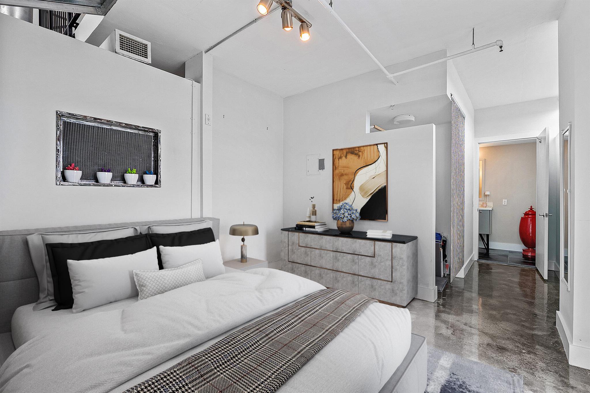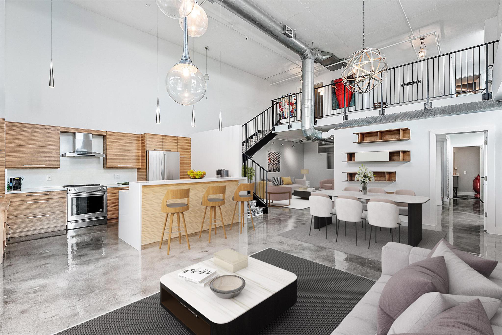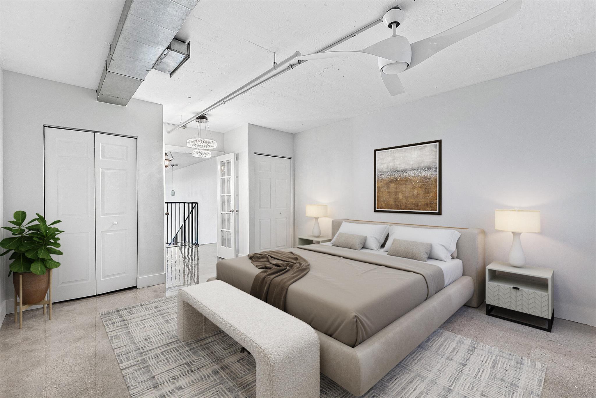 Welcome to Unit 317 at 185 NE 4th Avenue -- a stunning two-story corner penthouse in the highly sought-after Ocean City Lofts, located in the heart of Downtown Delray Beach. This expansive 2-bedroom, 2.5-bathroom loft spans 1,795 square feet and features soaring 20-foot ceilings, polished concrete floors, and floor-to-ceiling impact windows that flood the space with natural light. The open-concept layout showcases a modern kitchen with sleek cabinetry, stainless steel appliances, and a spacious counterspace perfect for entertaining. The first level includes a private guest suite, half bath, and a bright living/dining area that flows onto a large balcony. Upstairs, the versatile loft-style primary suite features a walk-in closet, and a beautifully appointed bathroom.