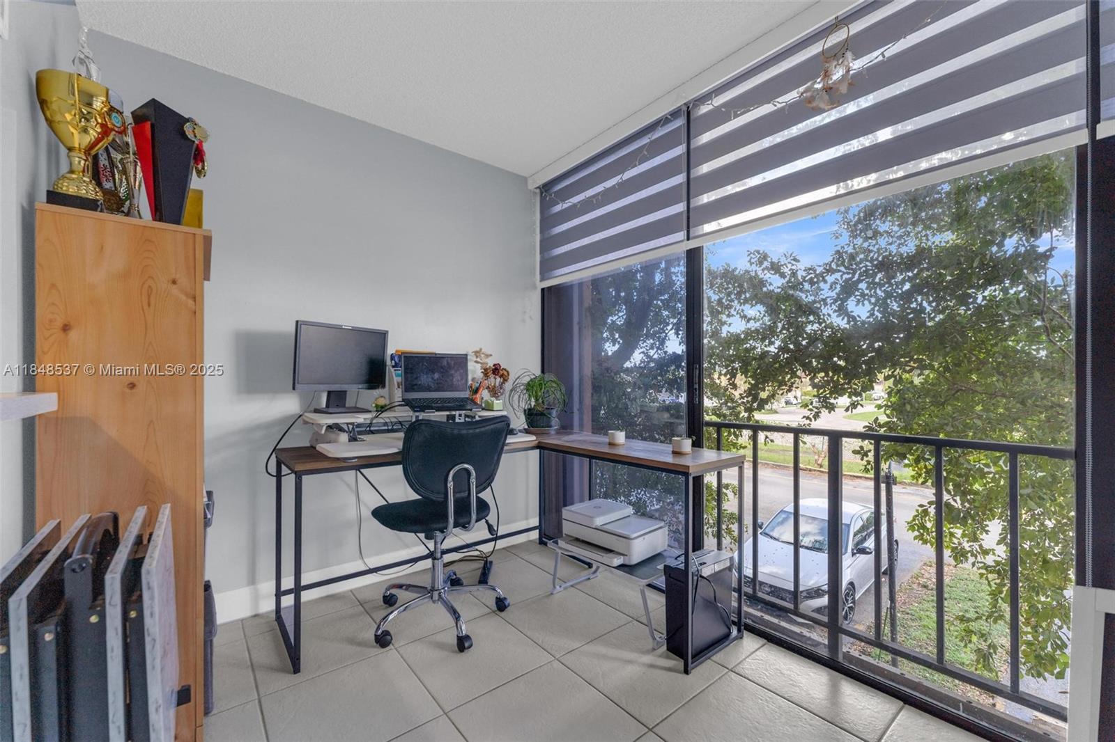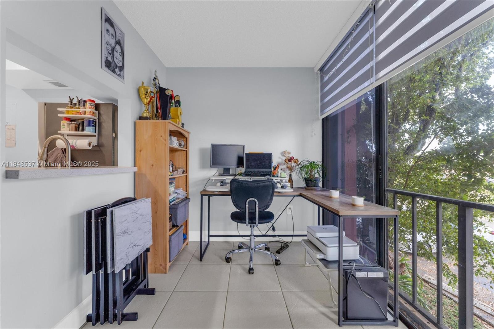 Spacious updated 2/2 condo plus office/den with large picture windows. The unit boasts a white kitchen with sleek quartz countertops (2021), modern stainless steel appliances (2021) and new recessed lighting giving the space a contemporary feel. Enjoy the convenience of in-unit full-size washer and dryer. Located in a secure, gated community, residents enjoy resort-style amenities including a clubhouse with fitness area, pool, 2 tennis courts, basketball court, and children’s play area. Prime location near Florida International University (FIU) and 1 block from Walmart, LA Fitness, restaurants, and shopping. Easy access to 826, 836 and Florida Turnpike plus public transportation. NOTE: Complex has 40 year certification, SIRS Report and reserves. Move-in ready and perfectly located!!