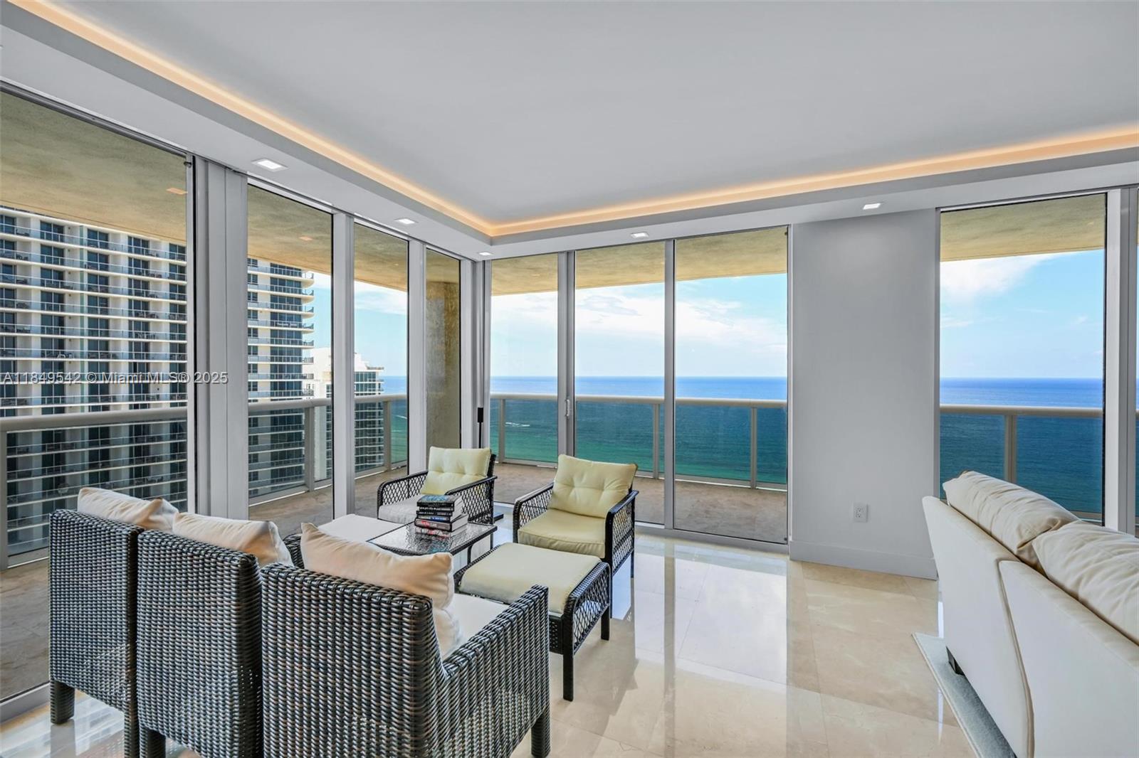 Fully remodeled & professionally decorated NE corner unit with stunning direct ocean views. This 3BD/3.5BA Model B offers 2,078 SF of luxury living, a wraparound balcony, Crema Marfil marble floors, drop ceiling, electric blinds & recessed lighting. Spacious living area perfect for entertaining. Designer Florense kitchen with ceramic countertops, Thermador appliances, induction cooktop & wine cooler. All new bathrooms with book-matched floors/showers, Grohe fixtures & Kohler water closets with heated seats. Beach Club offers 5-star resort amenities: 5 heated pools, 50,000 SF spa, gym, 24-hr valet & security.