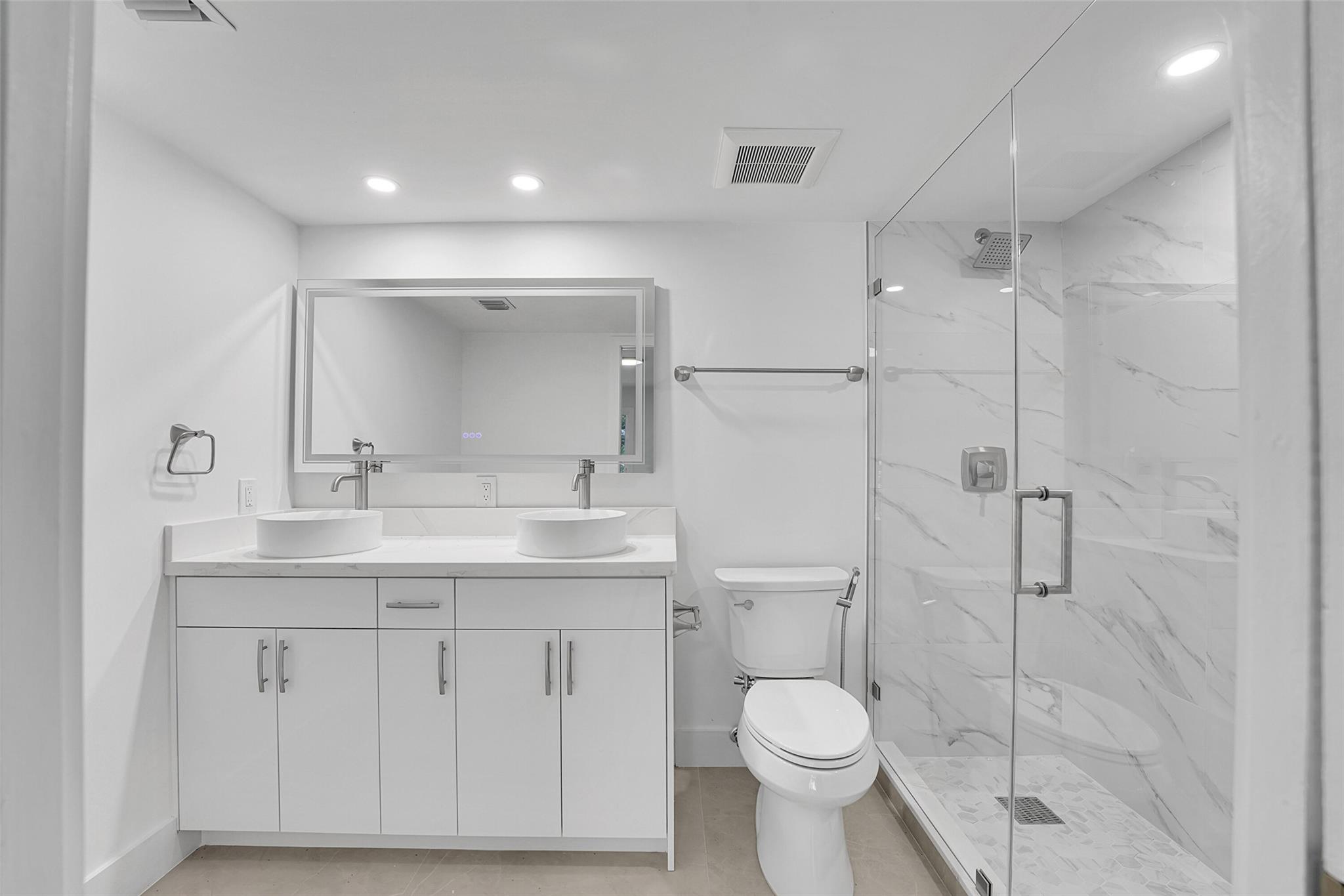 Welcome to this beautifully renovated 2-bedroom 2-bathroom condo where modern design meets move-in-ready convenience. Every inch of this unit has been thoughtfully updated, featuring brand new stainless steel appliances, new AC with new air ducts, and a new water heater—giving you peace of mind for years to come. Enjoy open-concept living with a sleek, contemporary kitchen, stylish lighting, and bright living spaces. Both bathrooms showcase luxury finishes, including LED-lit mirrors, vessel sinks, rainfall showerheads, and elegant marble-look tile. The guest bedroom offers a Jack-and-Jill bathroom layout, providing privacy and flexibility for guests. Desirable 55+ community with golf course, pools, and many activities. Close to shopping, dining, and major highways.