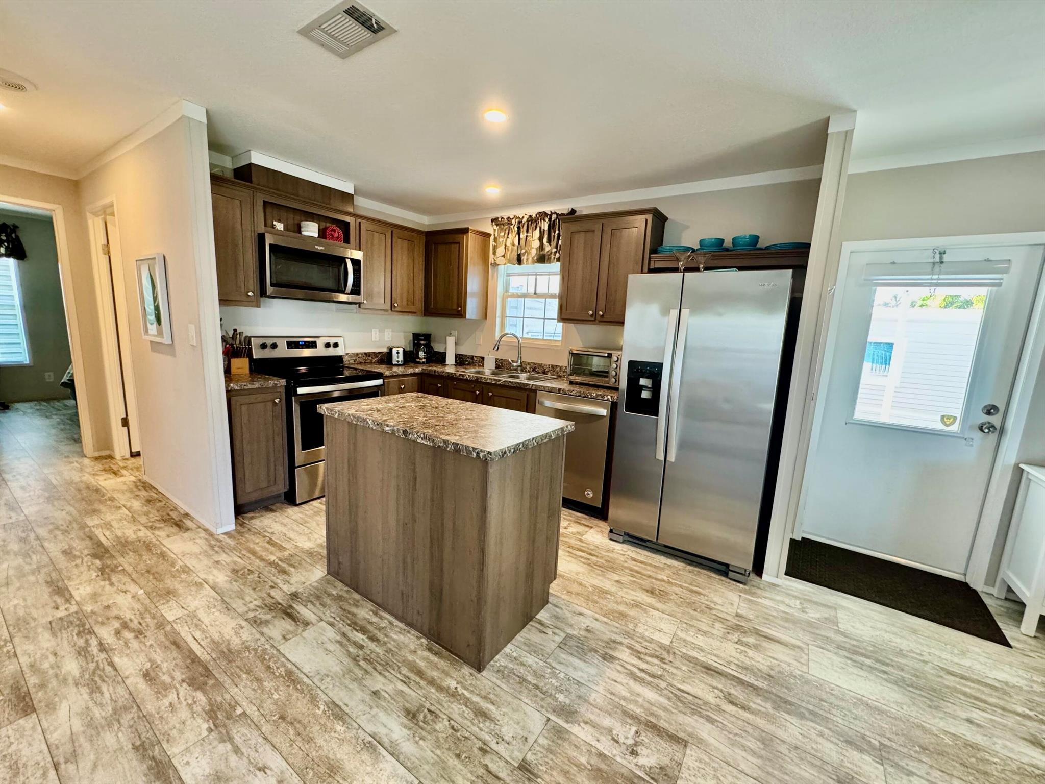 This beautifully maintained 2020 manufactured home is a must-see! Situated in one of the best gated mobile home parks in Broward County, you not only own the home but also the deeded lot which means it comes with NO land lease fees, instead a low HOA of less than $1500 annually. The home boasts a luminous spacious open floor plan with laminate wood flooring, stainless steel appliances, and a convenient laundry closet. Relax in the sunny front porch with southern exposure, perfect for enjoying the Florida weather. The furniture all convey with the sale, and the home is turnkey--ready for you to move right in! Enjoy the luxury of a large backyard on an oversized lot (+/-50x150), perfect for outdoor activities or simply relaxing in peace. The property also comes with a storage​​‌​​​​‌​‌​​​​‌‌​‌​​​​‌‌​​‌‌​​‌‌ shed
