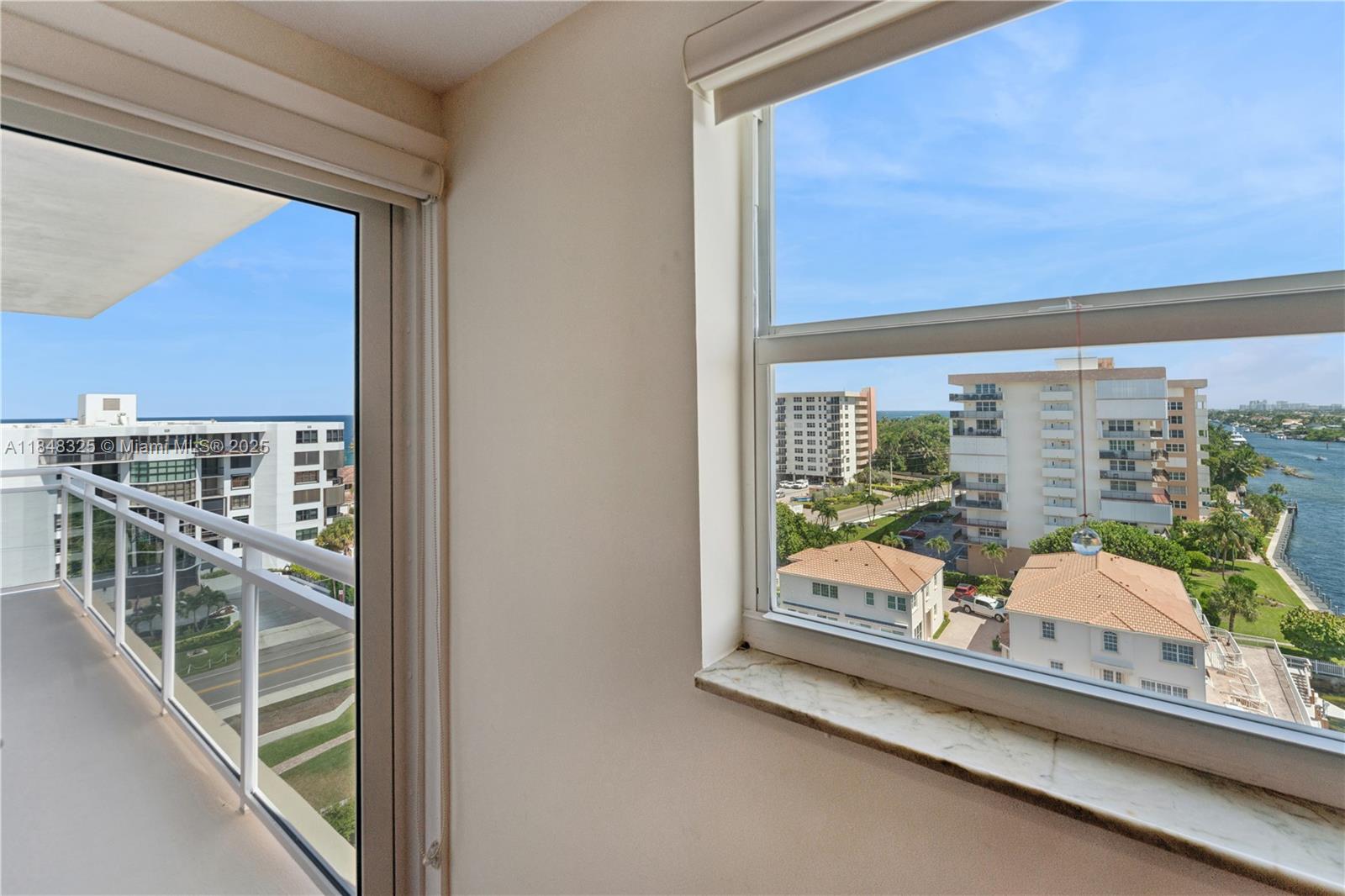 Experience the South Florida lifestyle in this stunning 2 bed/2 bath corner unit on the exclusive and highly desirable Hillsboro Mile with panoramic Ocean and Intracoastal views. Perfect for buyers seeking a property with strong value. This updated condo features an open floor plan, a modern kitchen, stainless steel appliances, pure quartz stone countertops, and island seating, perfect for entertaining. Gorgeous porcelain tile flooring throughout. Hurricane-impact windows and double sliders fill the home with natural light. Relax on the large wraparound balcony or enjoy the amenities: heated pool, gym, community room, and private beach access. Covered parking and on-site boat dockage up to 42 ft (when available). NO fixed bridges to the ocean. Just 7 units/floor ensure privacy and peace.