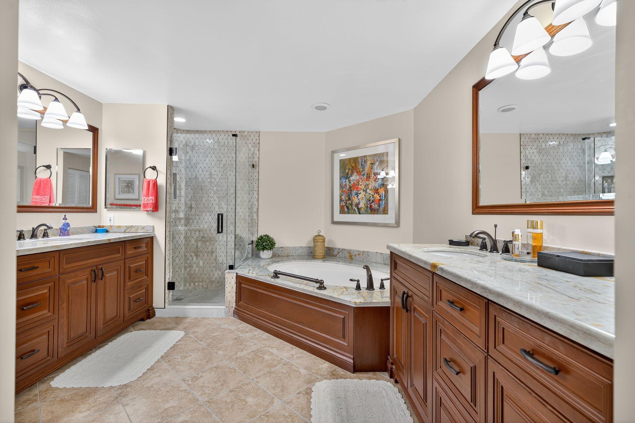 Highly desirable first floor Legends Condo. The entry is adjacent to a peaceful green space. As you enter you are welcomed in with lovely furnishings with the cool modern look of today. Totally remodeled, warm caramel wood kitchen cabinets. luxurious primary suite, sitting area, spacious closet, and sliders to the patio. Views of lovely lake, and warm sunsets. Guest bedroom is situated separately from main living and adjacent to the guest bath. Convertible Den features warm wooden cabinetry, with built in desk and closet. The Legends has always been known for the pleasant atmosphere for full time residents and seasonal as well.