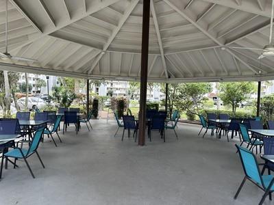 Bright and spacious 2-bedroom, 2-bathroom home, offering stunning and serene garden views. Open kitchen with ample countertop space. Tile flooring throughout the unit, AC was replaced in 2018, with a new water heater installed last year. The master bedrooms feature two walk-in closets, the unit includes an in-home washer and dryer for added convenience. Located in a gated 55+ community, residents enjoy fantastic amenities, including a clubhouse, gym, billiards, tennis courts, and a sparkling pool. The community is also conveniently close to public transportation, grocery stores, and shopping. Monthly fees include internet and cable. The building is in the final stages of its 40-year certification, featuring a new roof, fresh exterior paint, building restoration, and an updated elevator.