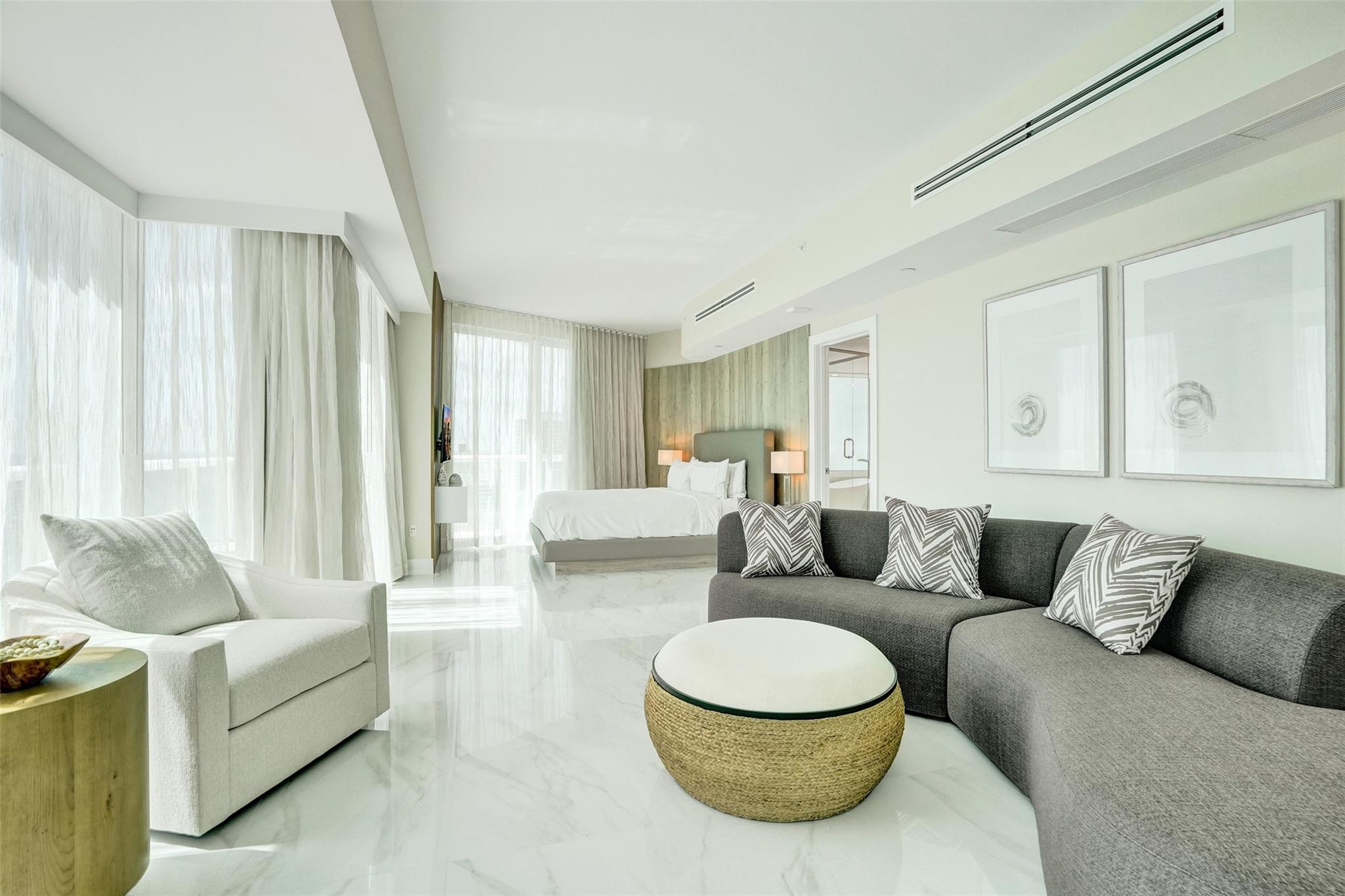OCEANFRONT PENTHOUSE in the BEACH HOUSE / HILTON. Experience luxury coastal living in this fully renovated three bedroom condo\hotel where every bedroom opens onto a private balcony. This brand new fully furnished residence offers unmatched, unobstructed ocean views from every room. Floor to ceiling windows, flooding the space with natural light and breathtaking views of downtown and intracoastal. Wake up to tranquil blue of the Atlantic and wind down with beautiful sunsets over downtown, and the sparkling Intracoastal waterway. From the comfort of every room watch parasailers drift across the sky and yachts cruise by. With generous square footage and flowing layout, this penthouse is perfect for hosting elegant cocktail parties, client receptions, or entertaining family from out of town.
