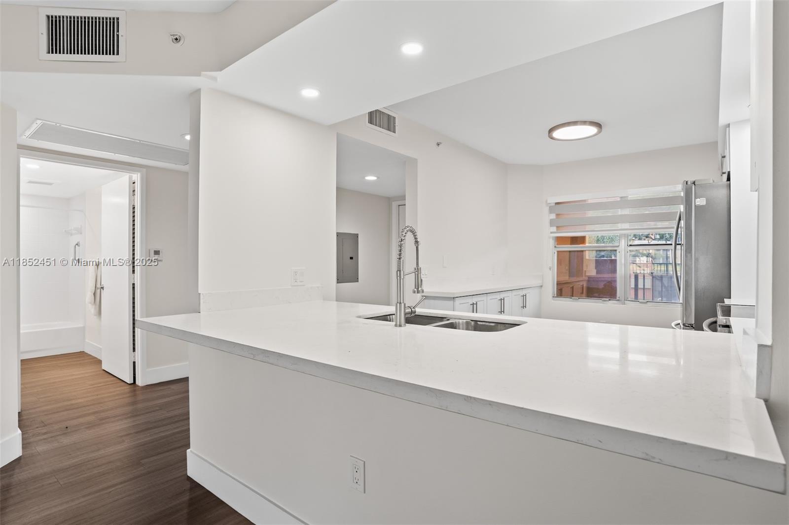 Resort-style living awaits in this beautifully renovated 2 bed, 2 bath waterfront condo! Low HOA! Features include a modern kitchen, updated baths, newer A/C, appliances, in-unit washer/dryer, laminate floors, and balcony with added sliders to enjoy with AC. Zebra blinds with blackout shades, freshly painted. 1 assigned parking + guest spots. Located in a 55+ guard-gated community with pools, clubhouse, gyms, tennis & more. Cable, internet, and water included. No special assessments; reserves in budget. New elevator in building. Financing available with 5% down (650+ credit score). Occupants 18+ welcome!