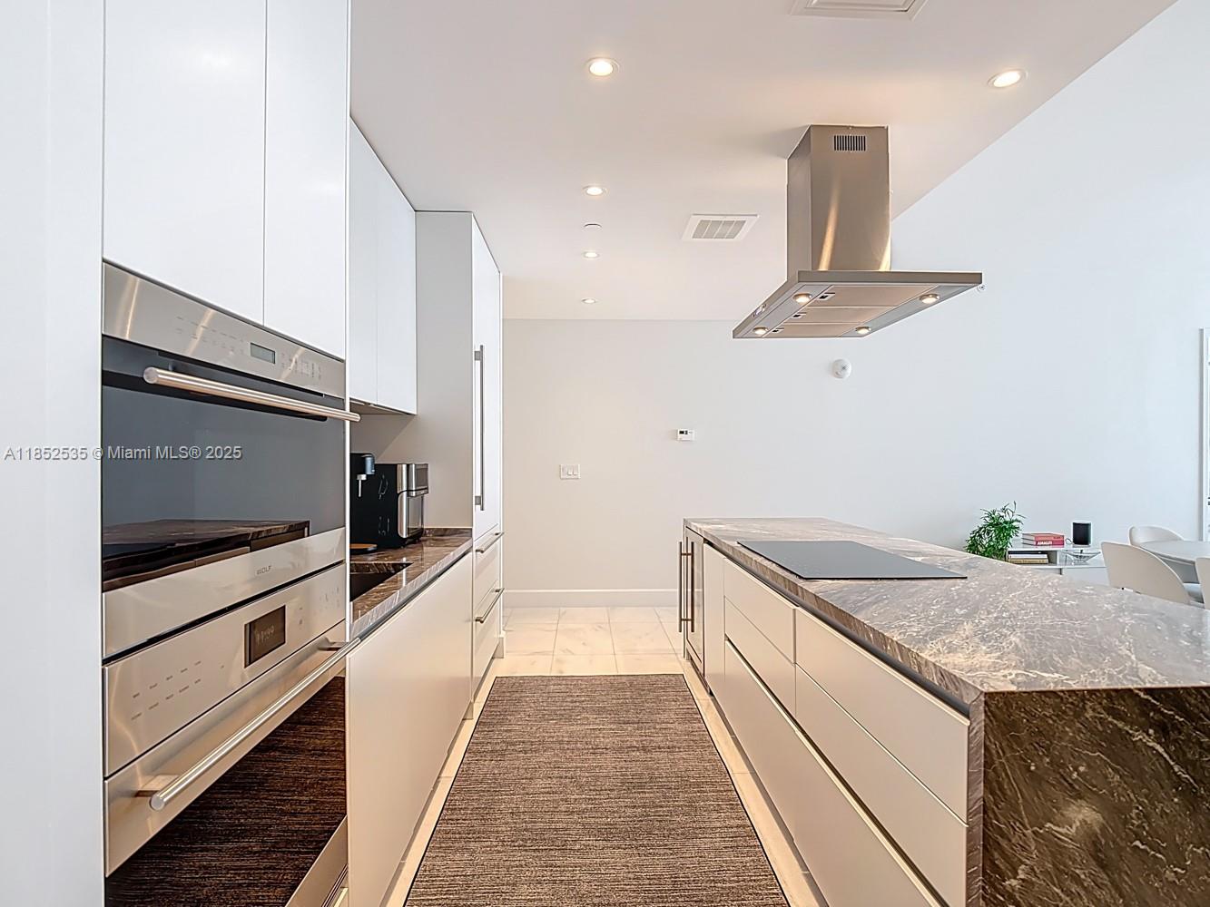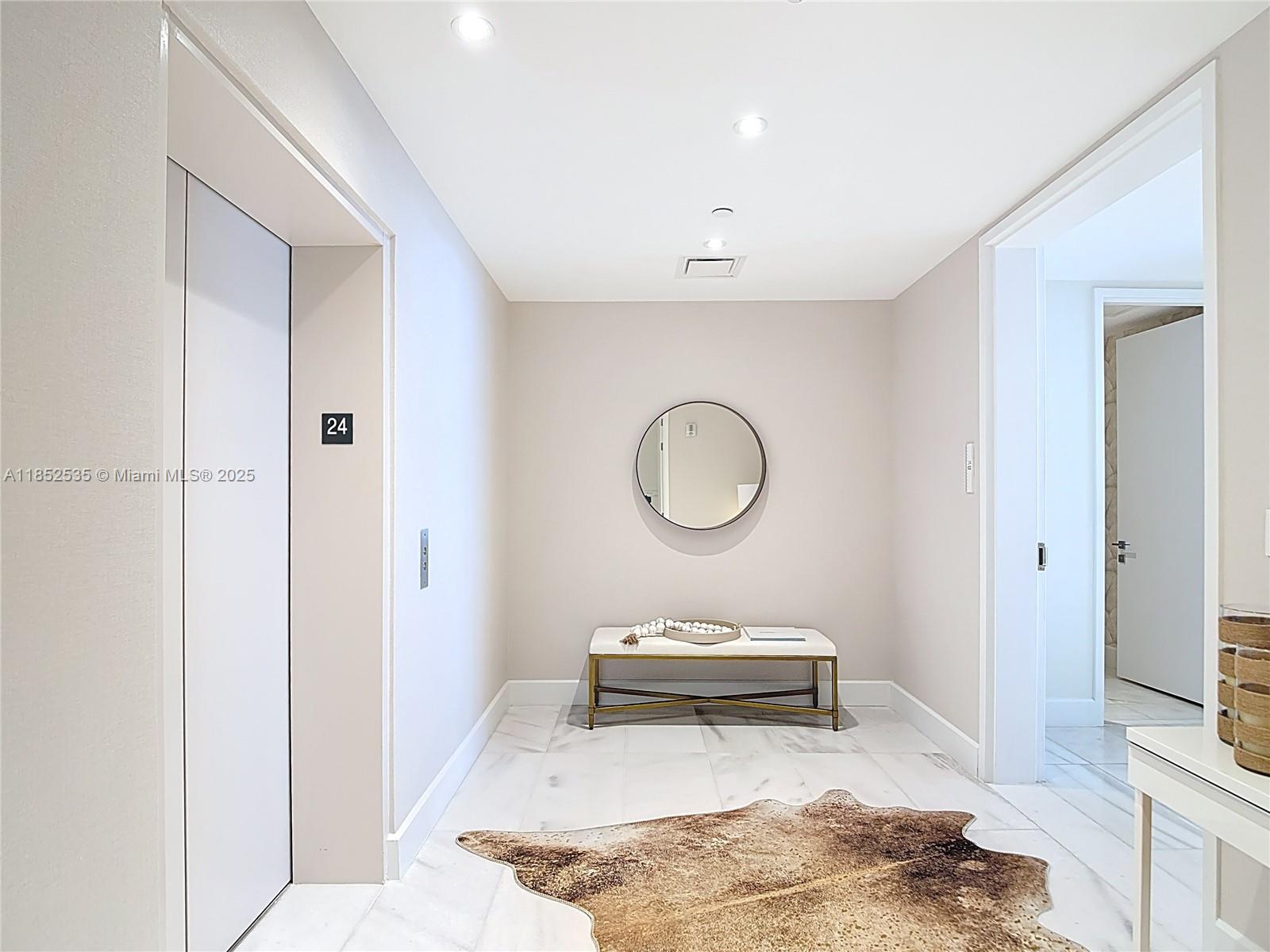Own the views, the lifestyle, and the exclusivity at Missoni Baia! This 2-bed + den, 4-bath residence offers breathtaking, unobstructed bay and ocean views. Arrive through a private elevator that opens directly into your own foyer, setting the tone for an elevated lifestyle. The interiors have been elegantly refreshed with built-in closets, custom wallpaper accents, modern designer lighting, and a soft contemporary palette that compliments the natural light and clean architectural lines. The spacious open-concept layout features a gourmet kitchen with premium Wolf and Sub-Zero appliances. Enjoy resort-style amenities, incl. 3 pools, fitness center, yoga classes, a spa, tennis/pickleball courts, and private resident lounges—all curated with the artistic flair of Missoni’s iconic aesthetic.
