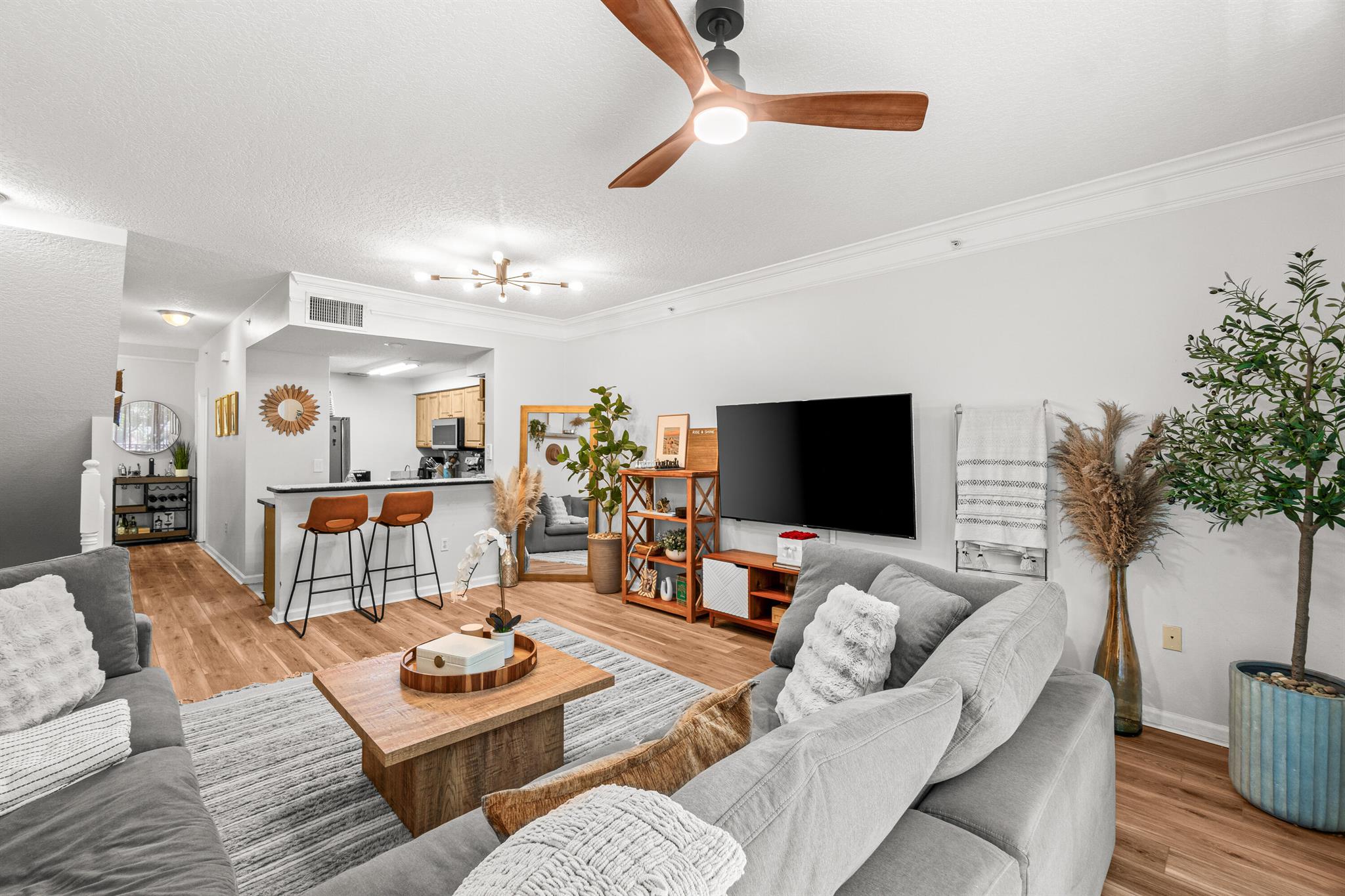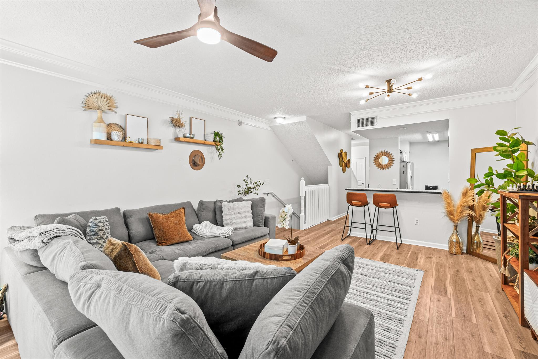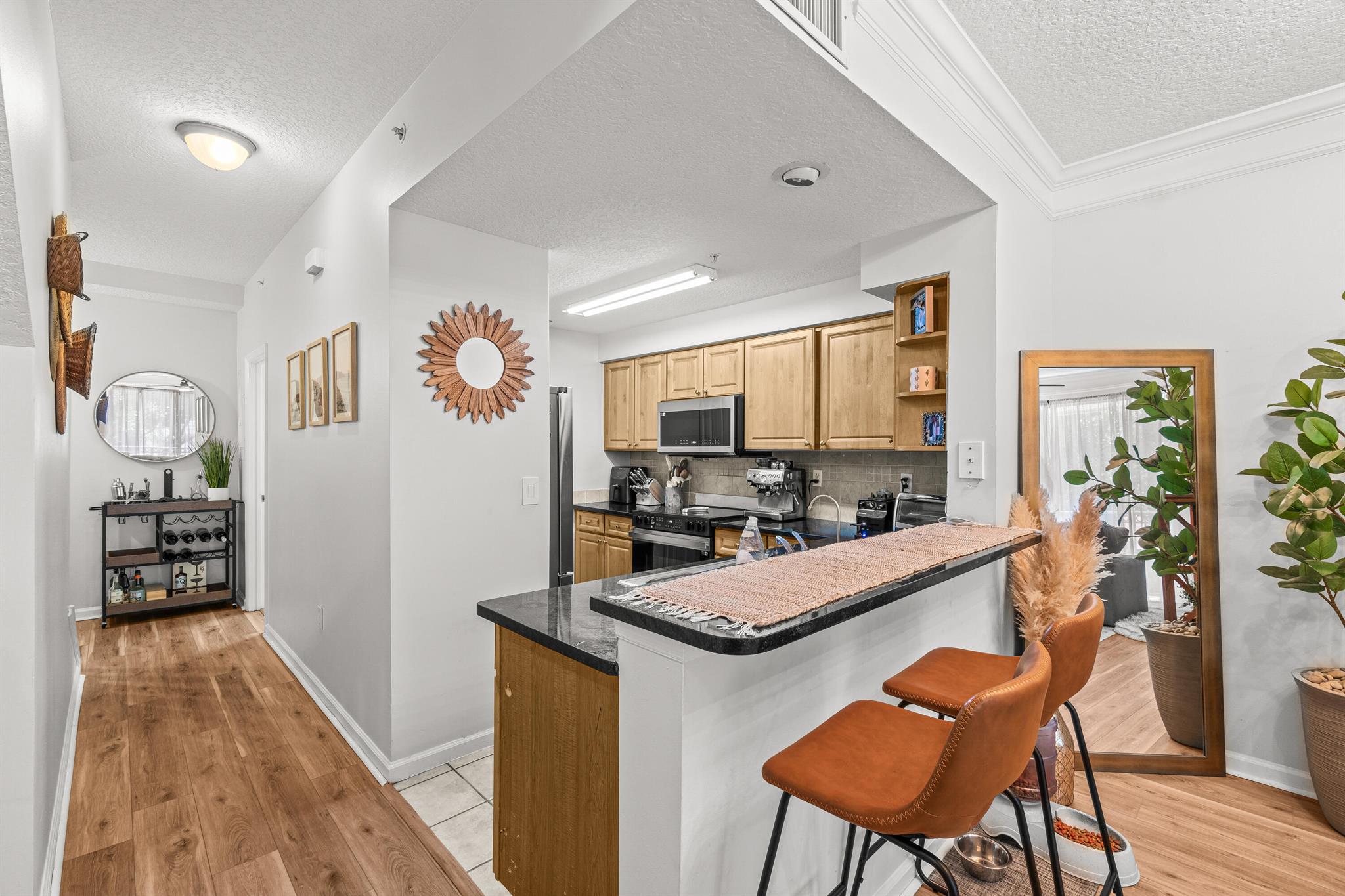 This bright and airy townhome is so centrally located you may end up spending too much money at Target. With Whole Foods right next door it's good that you'll have a 1 car garage to store all the extra supplies! Updated flooring and appliances make this a great place to have a few friends over and wow them with your new found cooking skills! Come sip coffee or espresso martinis on the balcony, your choice! Call from the guard gate and wave to your new friends as you pass the neighborhood pool and playground.