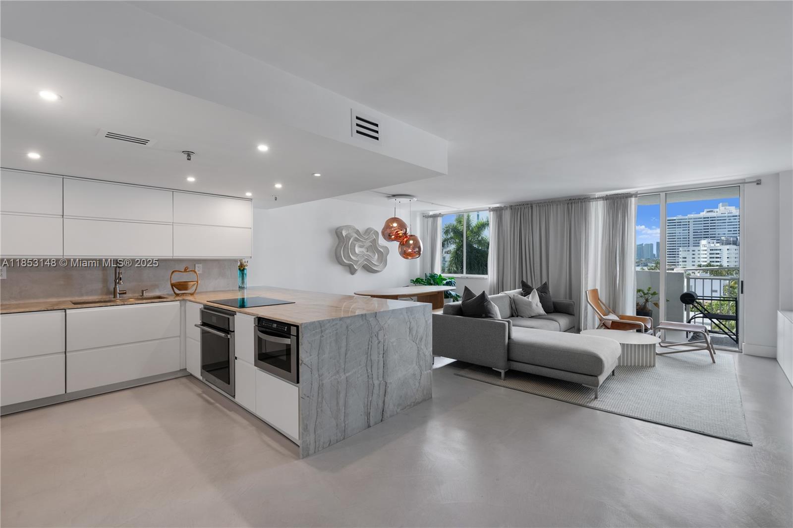 Stunning condo with water views in the heart of Miami Beach – between Sunset Harbour and Lincoln Road! This oversized 2BR/2BA (originally configured as 3BR) offers 1,070 SQF of luxury living. Fully renovated in 2024, with high-end fixtures, finishes, and microcement floors. Chef’s kitchen, breakfast bar, and formal dining area – with quartzite countertops, smart integrated appliances, and hidden storage – make the space ideal for entertaining. Two large private balconies and oversized windows offer breathtaking water views. Unit features custom millwork, in-unit W/D, central A/C, and 2 parking spots. This boutique condo building offers a heated pool, hot tub, gym, and common room. Option to purchase fully-furnished, with designer homeware and decor – just bring your suitcase!