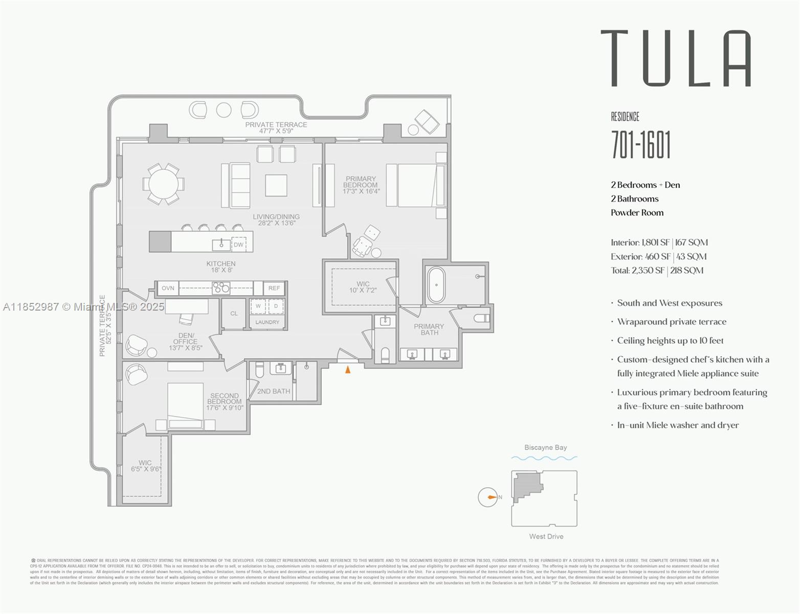TULA Residences, a boutique luxury waterfront condominium building, home to 54 exclusive two-to-three-bedroom corner Residences and six exclusive five-bedroom half-floor Penthouse masterpieces. Each residence offers max efficiency floor plans, conceptual organic interiors, 10 ft-ceilings, custom Italian-designed chef's kitchens, floor-to-ceiling windows and sliding glass doors, private wrap-around glass enclosed terraces. The best, most breathtaking, unobstructed panoramic views of Biscayne Bay, Miami's skyline and the Atlantic Ocean. Exceptional amenities include resort-style infinity pool with cabanas, fitness and wellness center, media room, lounge, pet spa, parking garage, 24-hour concierge service. Boutique in scale. Rich in character. TULA Residences.