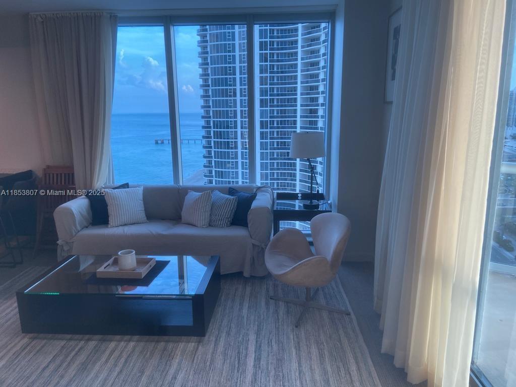 PRICE HAS BEEN JUST REDUCED. Experience luxury Oceanfront living at this high floor corner 2 bedrooms, 2 bathrooms offering two open balconies and large floor to ceiling windows with breathtaking Ocean views at Sole Sunny Isles. This turn-key residence offers access to a world of resort-style amenities, including an award-winning restaurant, ocean-side pool, private beach club, state-of-the-art fitness room, sauna and steam rooms. Very well-priced and ready to have a new owner. This unit has two sides, one is an Ocean view room with balcony and full bathroom. The other is a one bedroom suite. Building offers a hotel rental program, allowing you to generate income when you're not enjoying the property yourself. Rent both sides or rent one side and use the other side, your choice.