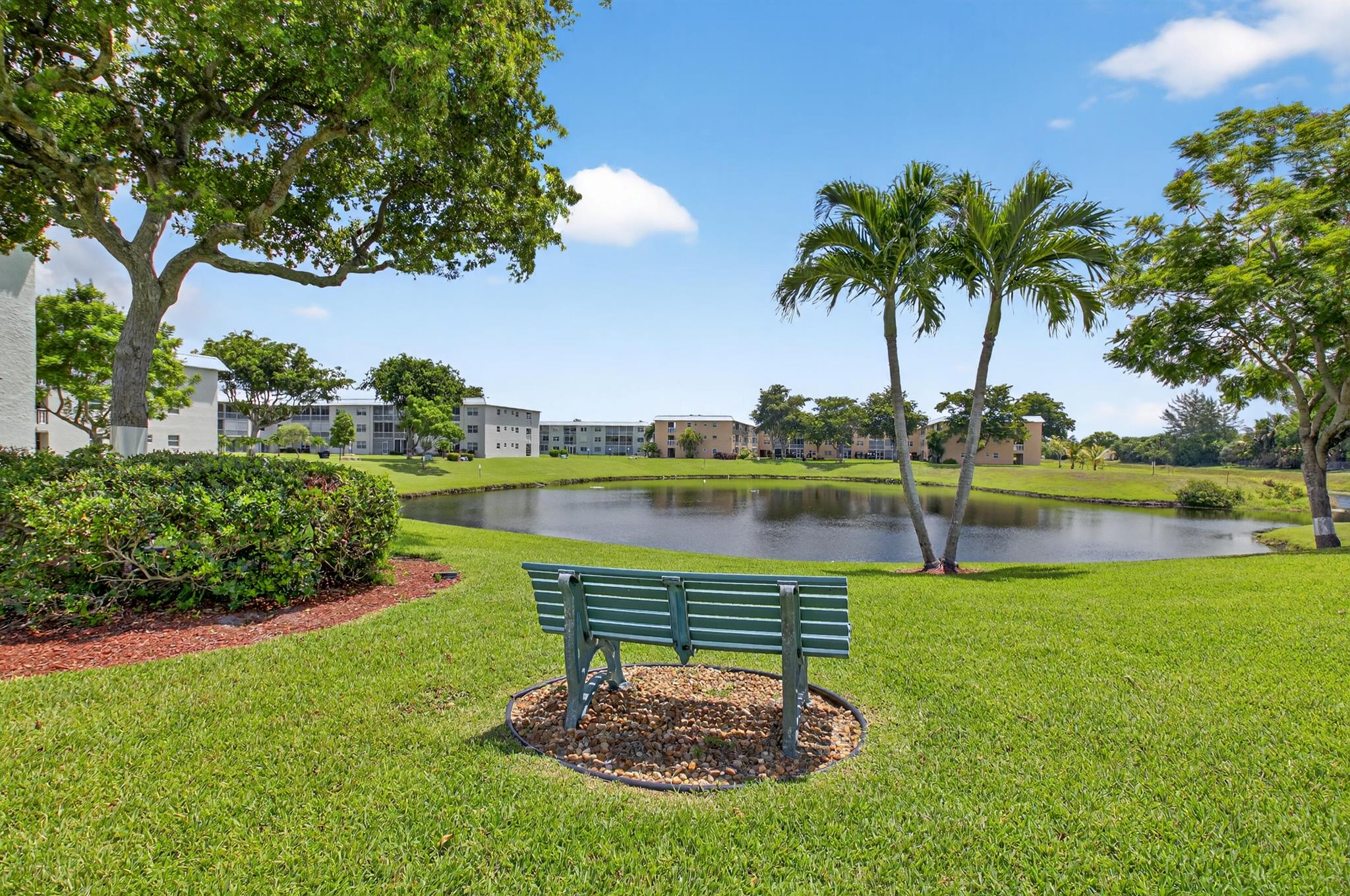 Magnificently remodeled 2 bedroom, 2 bath first floor unit overlooking the lake and garden beyond. 55+ Community. Sheer luxury featuring:. New AC system, New Electrical Panel, Neutral Porcelain tile throughout along with skimmed ceilings. Kitchen boasts New stainless steel appliances with extended granite counter. , impact windows.Greet guests in the formal foyer entry. Enjoy your gourmet white kitchen with granite counters. Great room with dining area is perfect for relaxing or entertaining. Primary bedroom with walk in closet and lavish primary bath. Guest bedroom and guest bathroom is ideal for family and friends. Close to shopping, major roadways and 25 minutes to the beaches. Florida living at its best. Great room and primary bedroom has staged photos