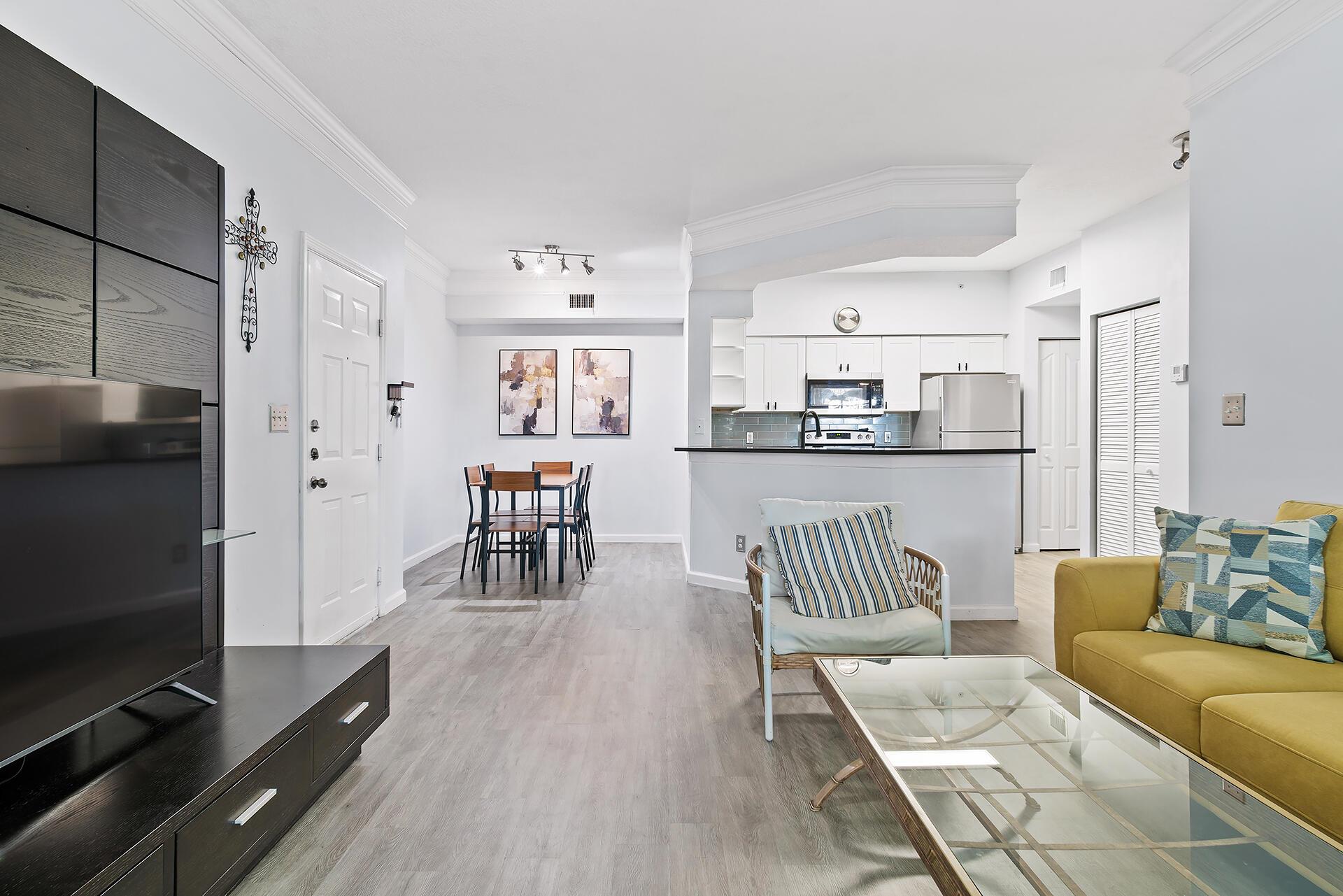 INVESTORS! 1ST TIME HOME BUYERS!! Lowest HOA fee for 1 bed condo in Palm Beach County! Year built 2004, roof 2021, AC 2021, impact glass, no waiting period to rent! Beautiful upgraded 2nd floor apartment in gated Mezzano; all ages welcome. Open floorplan A-1 model with high ceilings, crown moldings and modern finishes. White cabinets and sleek black granite countertops. Large bedroom with walk in closet. Breezy balcony for a breath of fresh air in this quiet amenity rich community, featuring gorgeous pool, fitness center, sand volleyball court, playground, clubhouse and cafe. Close to everything with quick access to the freeway. It's time; leave the stress, decompress, and LOVE WHERE YOU LIVE!!