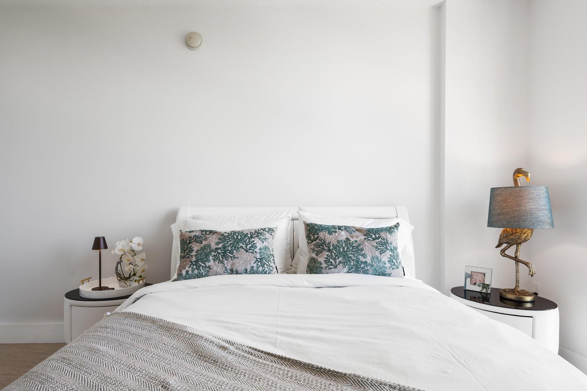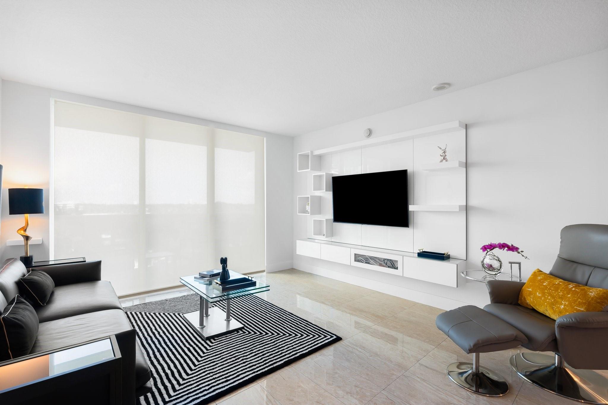 Stunningly designed 2 bedroom, 2 bath split floor plan residence with 2 parking spots at the WaterGarden Condominium right on the New River in downtown Fort Lauderdale. This renovated EAST facing residence blends minimalism with warmth. Pure sophistication you'll normally find only in new construction at a higher price point. Porcelain tiles throughout the residence. Enjoy views with breathtaking sunrises over the New River. Each room features electric sunshades. Located on the New River in downtown Fort Lauderdale, just a short stroll from Las Olas Boulevard, a 5-minute ride to the beaches & 15 min to FLL. Resort-style amenities include a lap pool, gym, concierge services, a social room etc. Washer/dryer in unit. No scheduled or pending assessments - a well managed condominium.