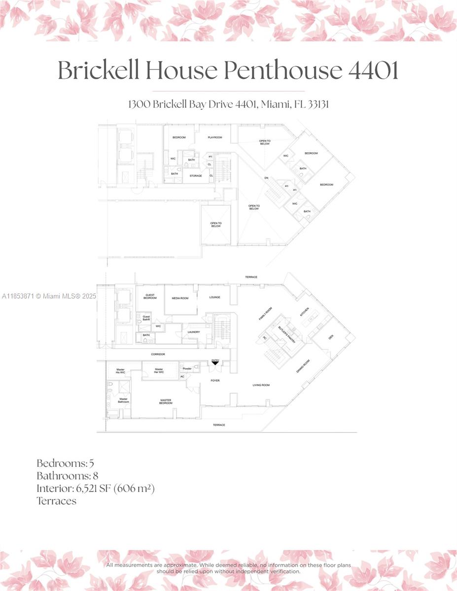 EXQUISITELY REDESIGNED TWO-STORY PENTHOUSE BY TOGU DESIGN & MASTERFULLY EXECUTED BY SABAL LUXURY BUILDER IN THE HEART OF BRICKELL! Encompassing 6,521 SF of Interiors this Smart Home wrapped in Bay & City Views offers 5 Bedrooms + 6 Baths + 2 Powder Rooms w/Office, Gym & Theater. Soaring 20-foot Ceilings & Floor-to-Ceiling Impact Glass w/sweeping Water Views. Rich Black Walnut Flooring throughout. Residence features Open-Concept Chef’s Kitchen w/premium appliances + a Separate Prep Kitchen. Expansive Primary Suite w/Oversized Spa-like Bath & Custom California Closets. State-of-the-Art Savant Automation System. Building Amenities include Rooftop Pool & Sundeck, 50FT Lap Pool, Owner’s Lounge, Fitness Center. Located in the Epicenter of Brickell w/World-Class Dining, Shopping + Nightlife.