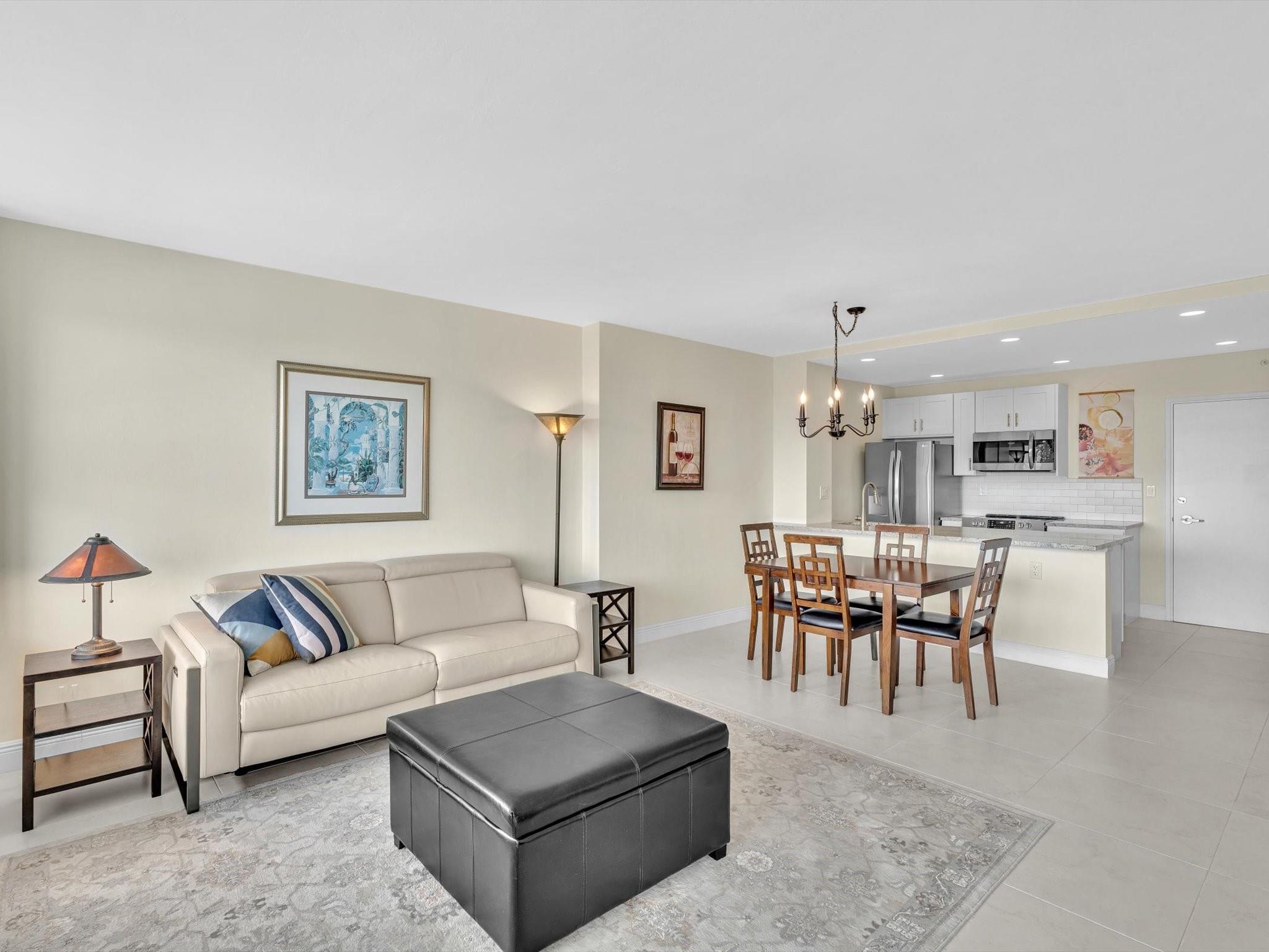 BEAUTIFUL MODERN RESIDENCE WITH OCEAN AND INTRACOASTAL VIEWS. Formal Entrance opens into casual elegance. Enjoy this newly designed chef's kitchen, perfect for entertaining or relaxing at home. Large porcelain tiles flow seamlessly from one room to the next. Watch the yachts go by below and experience the fireworks from your balcony without hearing the noise. Forget about fighting traffic because everything you need is right around the corner. ALL ASSESSMENTS PAID, FULLY FUNDING RESERVES. THIS BUILDING HAS AN EXCLUSIVE CLUBHOUSE ON THE INTRACOASTAL WITH A NEW DOCK AND RAISED SEAWALL. 55+ community on resort style 5+ acres. 24/7 security, heated pool, bocce ball court, fitness center. Concierge staff. Social activities