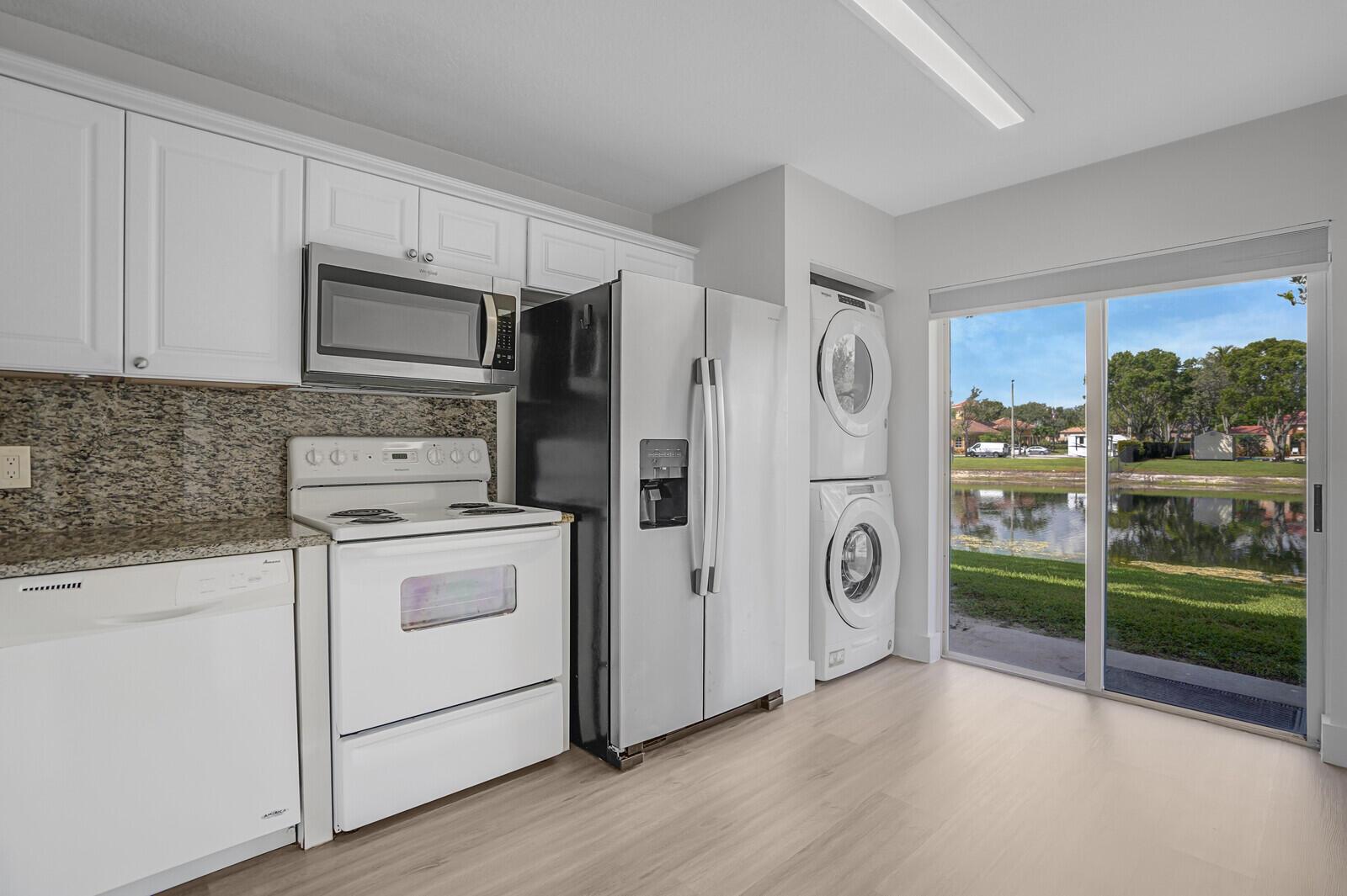 Upgraded first floor 2 bedroom 2 bath condo with lakeview. This lovely unit has newer flooring throughout, newer vanities, newer toilets and a newer washer and dryer. Also comes with a storage closet and hurricane impact windows and glass door. Community pool and clubhouse is nearby. Rental Restriction must own unit for a minimum of 1 year prior to leasing. After 1 year can lease one time per year.