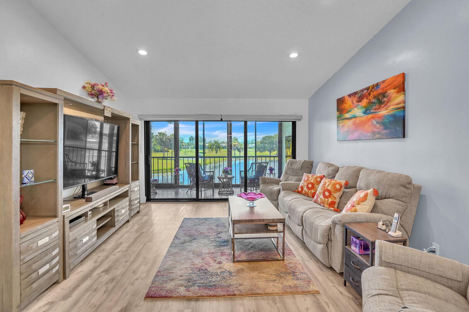 Experience the perfect blend of lifestyle, luxury, and location in this beautifully renovated lakefront condo in the highly sought-after Boca Delray Golf & Country Club. This top-floor 2BR/2BA residence offers breathtaking lake and golf course views from every room, soaring volume ceilings, and magnificent sunsets from the spacious screened patio. Completely move-in ready, the home features full impact windows and doors, a new roof, new air conditioning, and stylish upgrades throughout, including fresh paint, new luxury laminate flooring, and abundant closet space for storage. The gourmet kitchen boasts new white cabinetry, granite countertops, and stainless steel appliances, while the split-bedroom layout provides comfort and privacy. A full-size washer and dryer