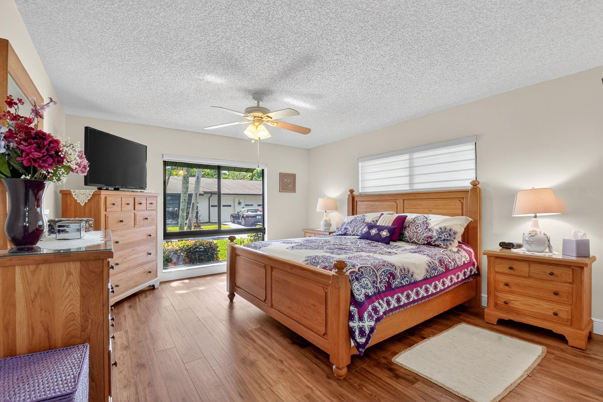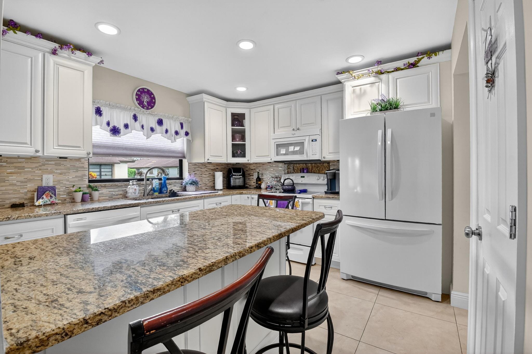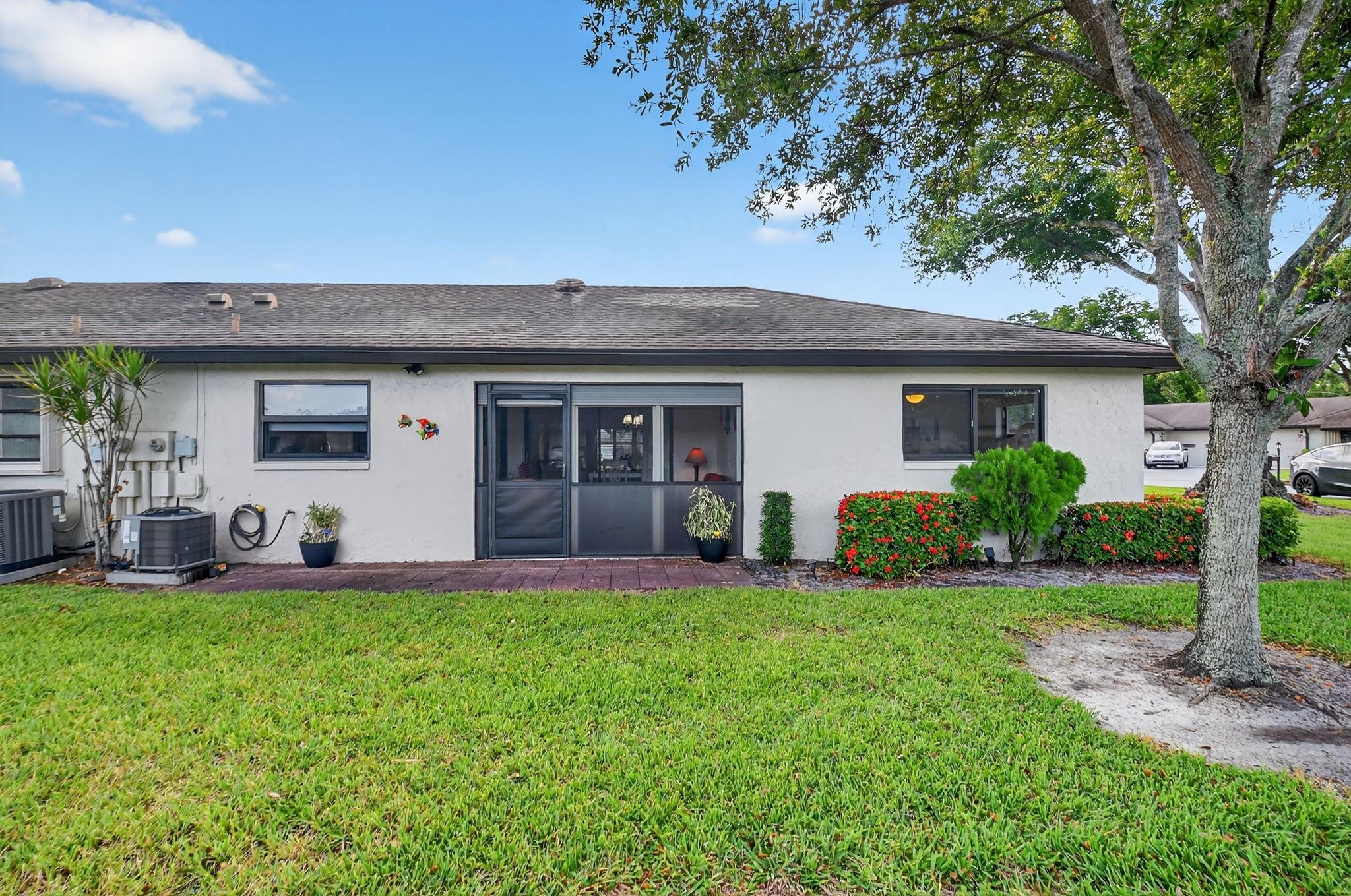 Beautiful move-in ready villa featuring wood-look tile throughout main living areas. The updated kitchen boasts granite counters, a large island, and two spacious pantries. Renovated bathrooms, plantation shutters, hurricane impact windows, and a newer AC (2022) offer comfort and style. Stacked washer/dryer in the garage with attic insulation and a new pull-down ladder. Enjoy the screened lanai with Italian tile leading to your outside patio. The community features 6 pools, 6 clubhouses, and the HOA includes exterior maintenance, roof care, building insurance, lawn care, water, basic cable, and internet. Located less than 15 minutes from the beach, shopping, dining, and vibrant Atlantic Avenue. South Florida living at its best, don't miss this one!