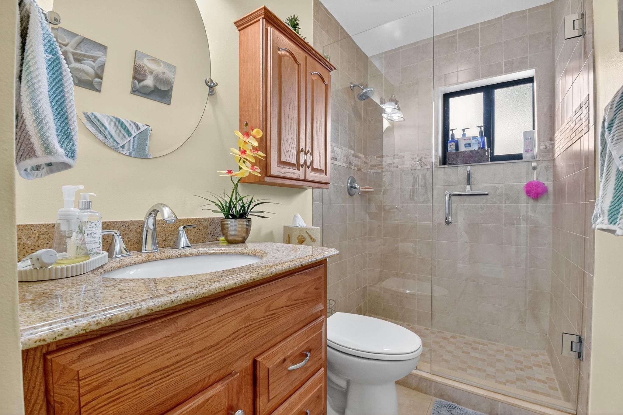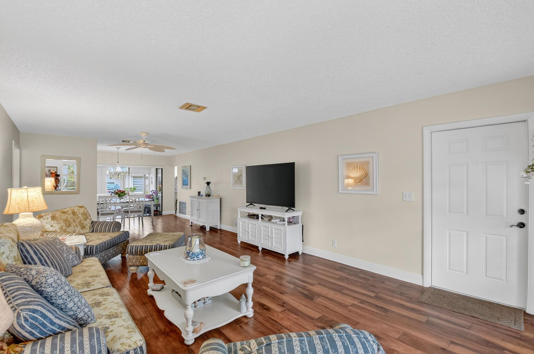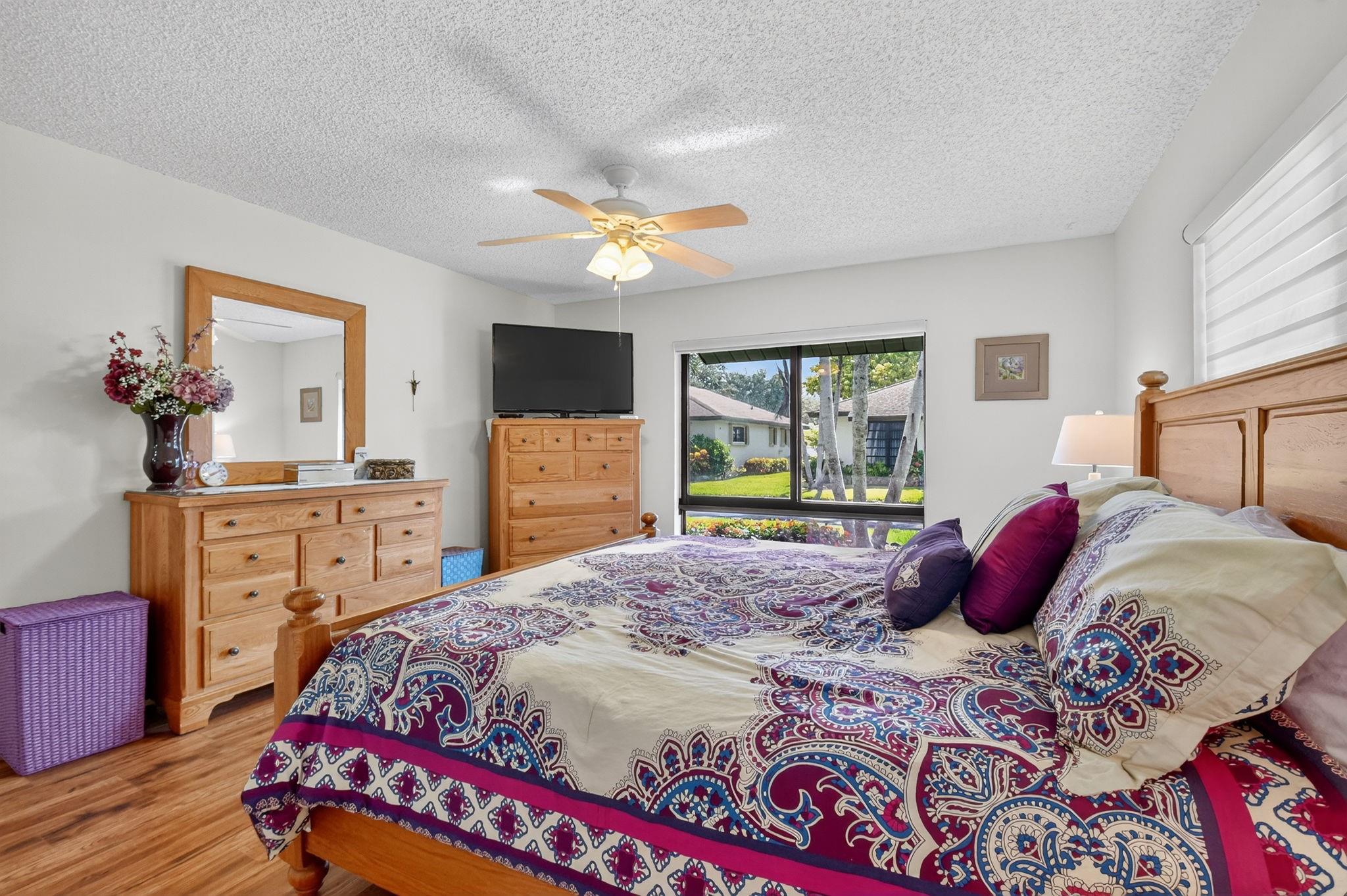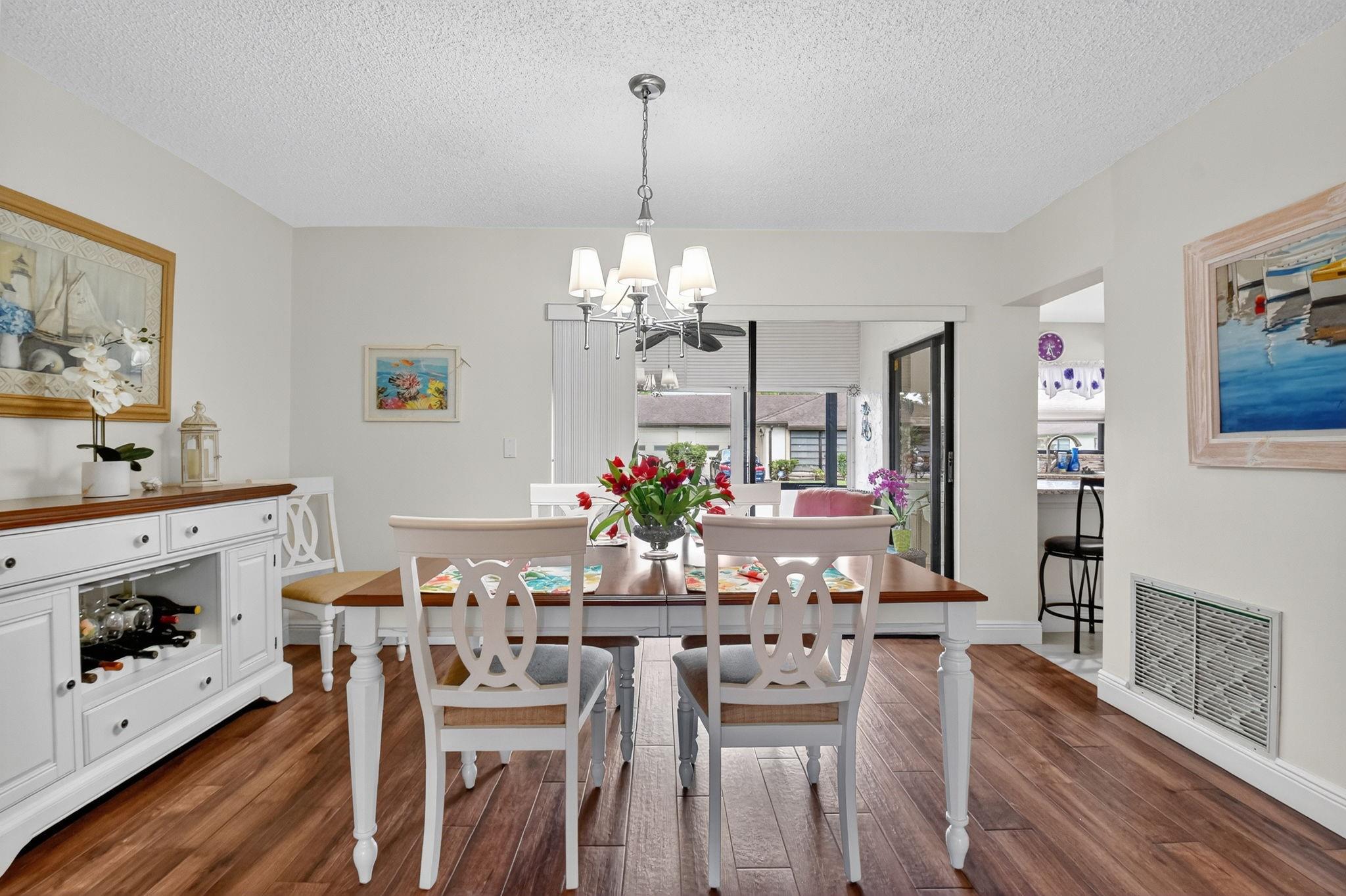 Beautiful move-in ready villa featuring wood-look tile throughout main living areas. The updated kitchen boasts granite counters, a large island, and two spacious pantries. Renovated bathrooms, plantation shutters, hurricane impact windows, and a newer AC (2022) offer comfort and style. Stacked washer/dryer in the garage with attic insulation and a new pull-down ladder. Enjoy the screened lanai with Italian tile leading to your outside patio. The community features 6 pools, 6 clubhouses, and the HOA includes exterior maintenance, roof care, building insurance, lawn care, water, basic cable, and internet. Located less than 15 minutes from the beach, shopping, dining, and vibrant Atlantic Avenue. South Florida living at its best, don't miss this one!