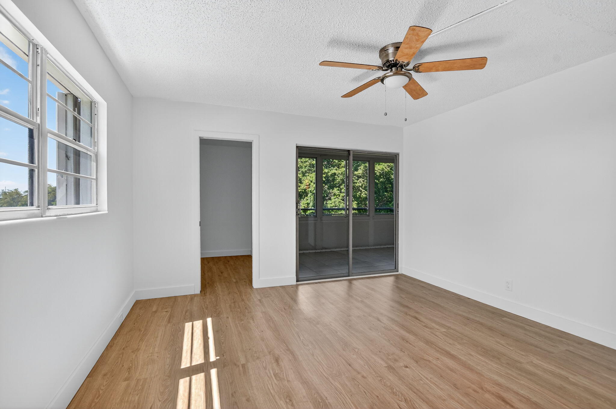 Experience the perfect combination of light, space, and comfort in this larger corner two-bedroom, two-bathroom condo. Oversized windows throughout fill every room with natural light and frame serene garden views. The primary suite offers an impressive walk-in closet, providing both style and functionality. Recent enhancements include fresh designer paint, new modern lighting, and storm shutters throughout. A brand-new air conditioning system, installed just last month, ensures comfort in every season.This spacious corner residence is move-in ready and awaits its next owner. Schedule your private showing and present your offer today.