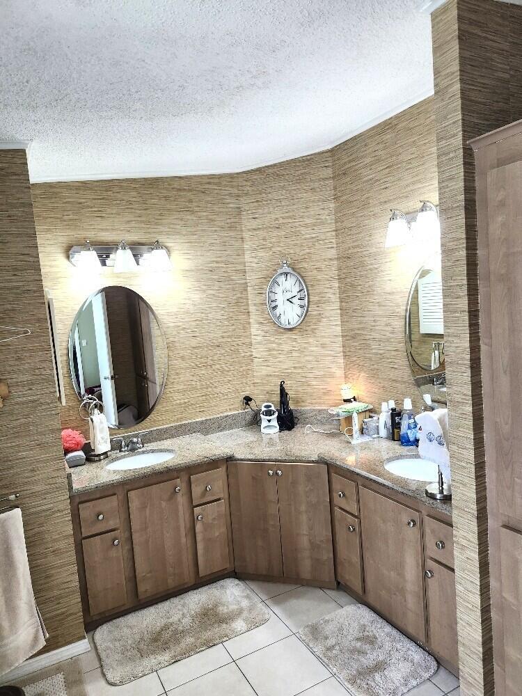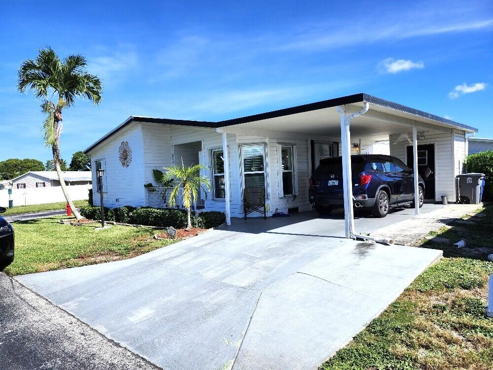 ON LARGE CORNER HOUSE!This beautiful well maintain home located Boynton Beach with its own sprinkler system. Tile floors, eat in kitchen, granite counter tops and stainless appliances. Accordion shutters plus storage room.two bedroom/two bath the living room is large that can become a living dining area. There is an enclosed lanai with a separate entrance on the side of the home. There is a double car parking, Double sink vanity in the large master bedroom.* Land Lease $1,000month