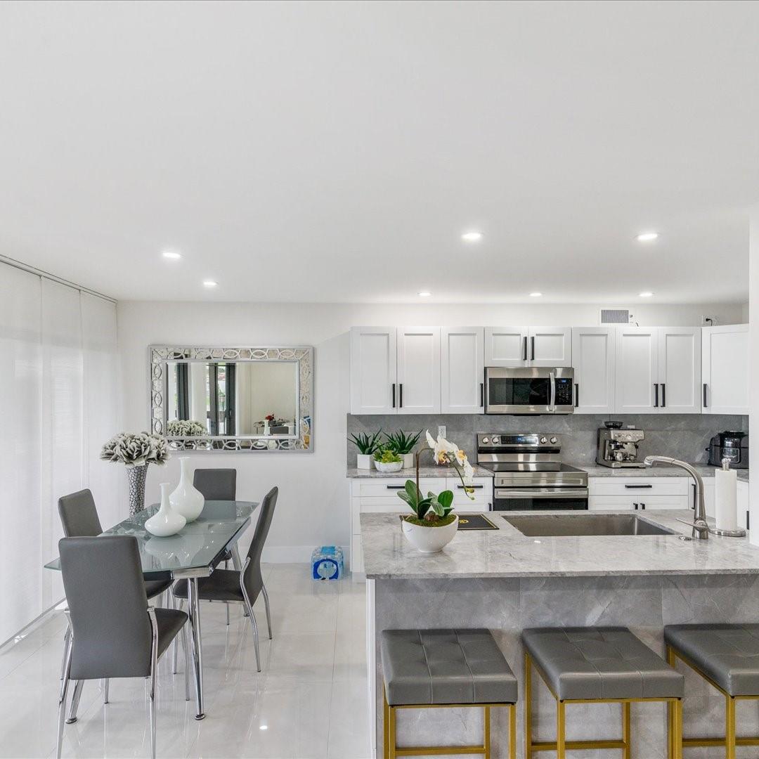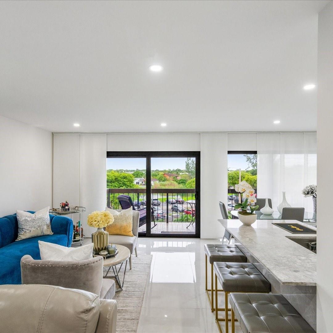 Step into this fully upgraded corner unit featuring two spacious bedrooms and two modern bathrooms. Located near FIU, Florida International University. This stunning apartment, bathed in natural light thanks to expansive impact windows, offers an open concept layout with a seamless flow between the living, dining, and kitchen areas. The unit boasts high-end finishes, including premium floors, custom cabinetry, and top-of-the-line appliances and new roof. Both bathrooms with contemporary fixtures like towel warmers, two assigned parking spaces, and storage. Enjoy additional perks like ample closet space, in-unit laundry, and a private balcony.
