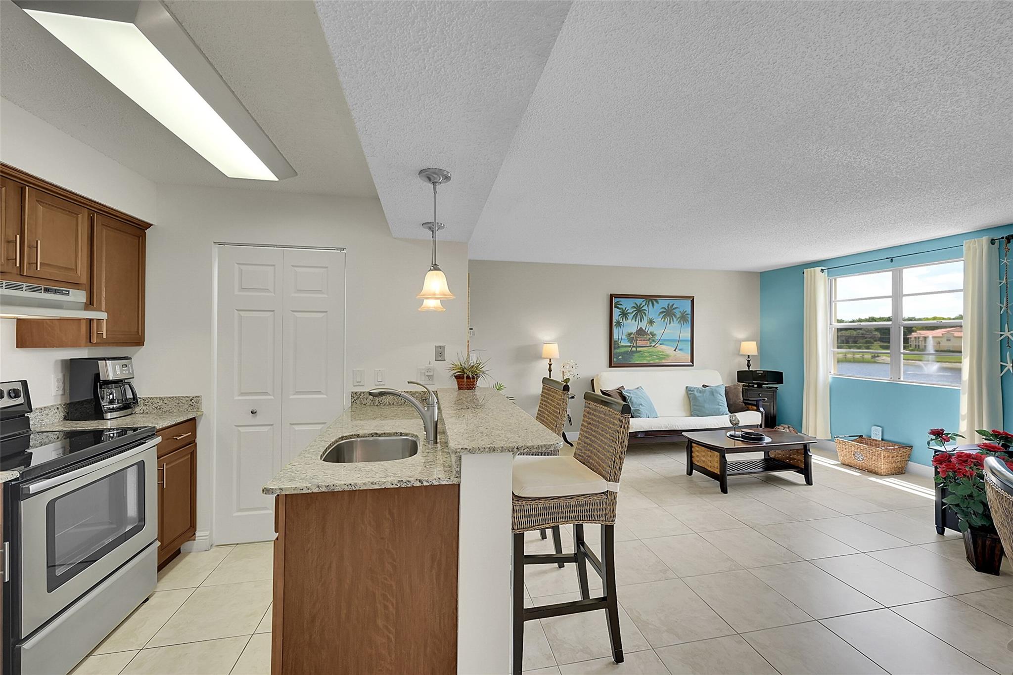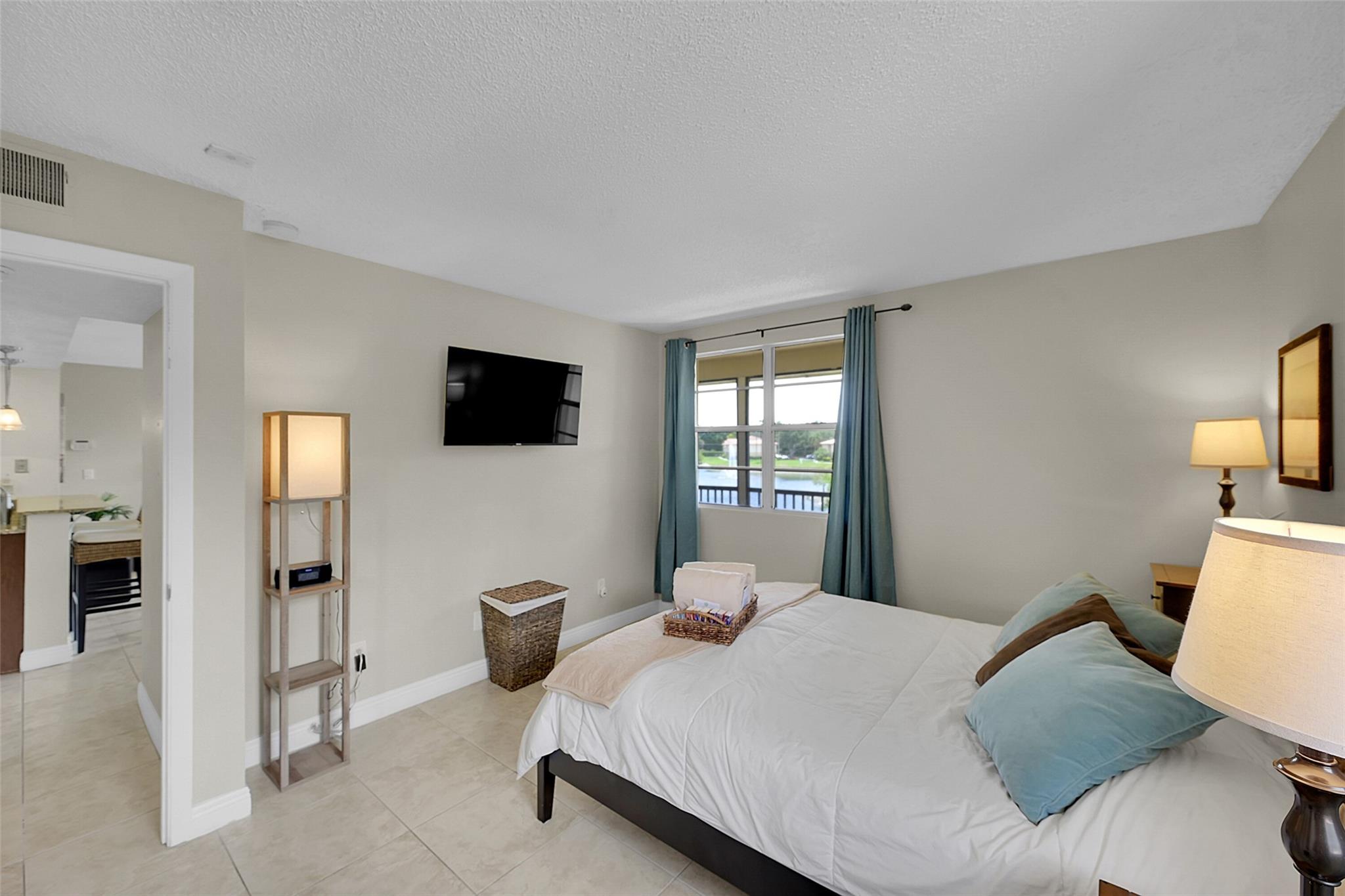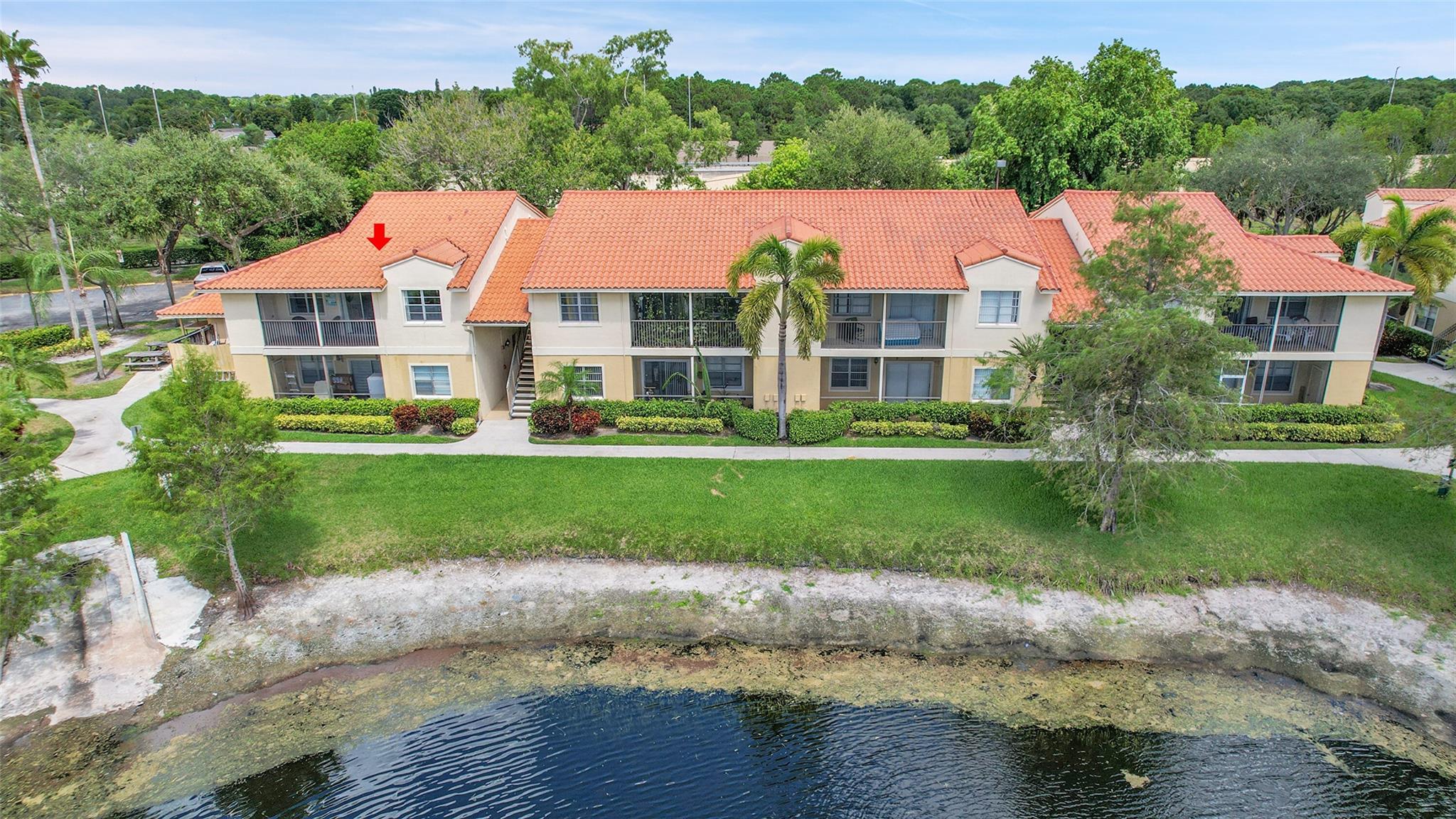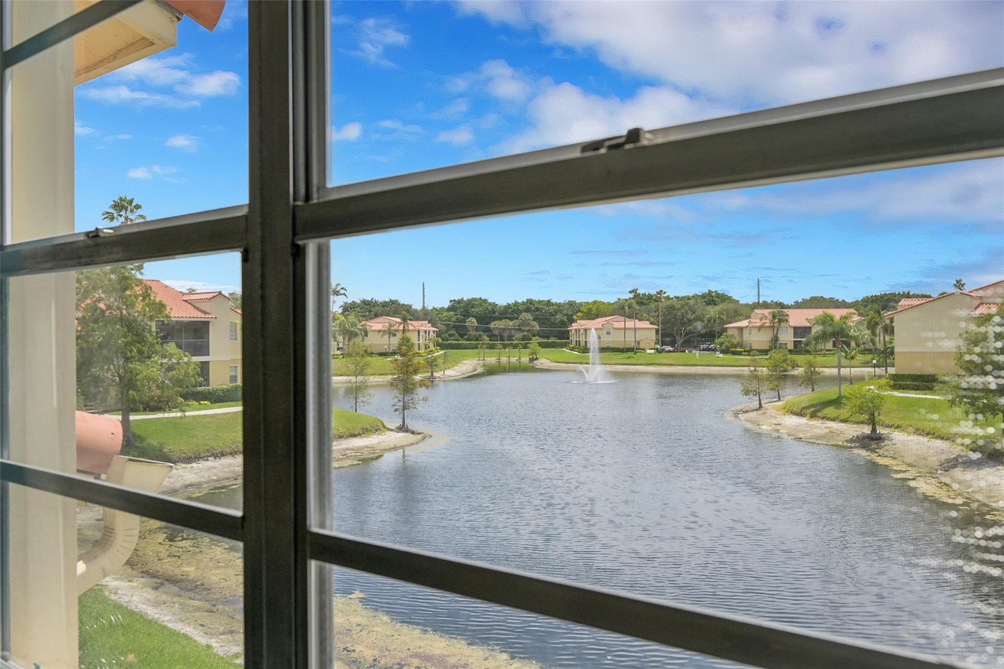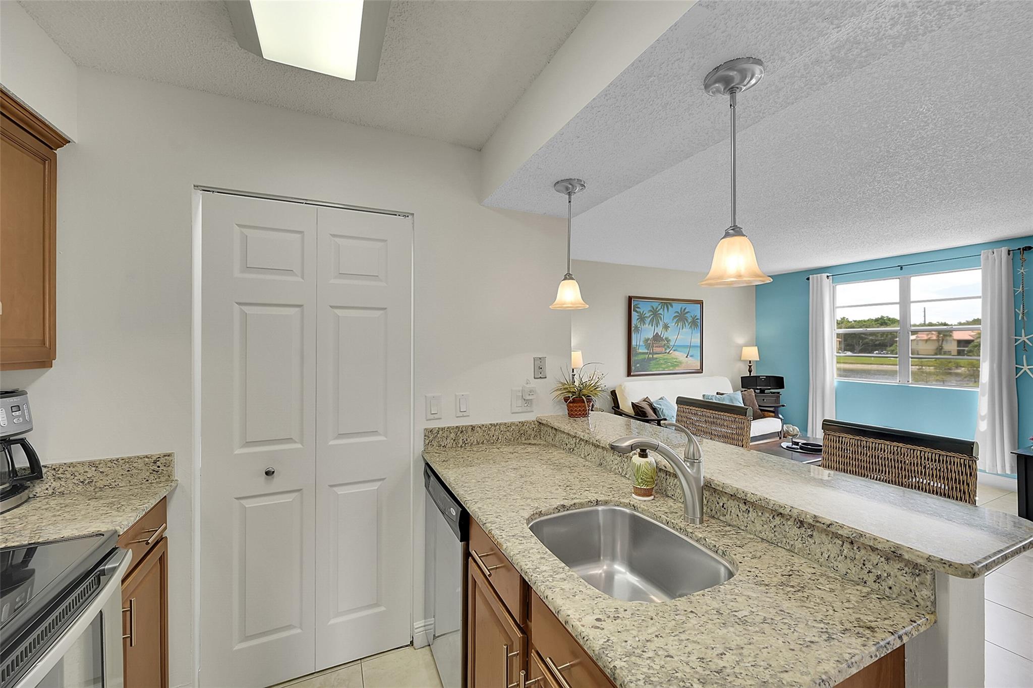 JUST REDUCED! Completely Remodeled Waterfront Corner Unit w/Screened Balcony w/Extra Storage Room! IN UNIT Laundry Room w/Full-Sized Washer & Dryer. LOW ASSOC. FEE. Fee. Beautifully Updated, Open Kitchen w/Snackbar, Features Granite Countertops, Custom Cabinets, Stainless Steel Appliances, Self Cleaning Oven. Furniture Negotiable & For Sale. Corner Bedroom w/Amazing Waterfront Views from BOTH Windows & Walk-In Closet. Bathroom w/Granite Countertops, Stylish Sink, Step-In Shower with Glass Enclosure & Ceramic Tile Walls. AC 2022, Bluetooth Remote Controlled Thermostat, Water Heater 2010 & Security System. Gated Entry, Resort Style Pool, Pet Friendly with Pet Park, GYM OPEN 24 HOURS, Clubhouse, On-Site Car Care Center, Tennis, Racquetball & a 1 Mile Long Lakeside Sidewalk Path! WELCOME HOME!