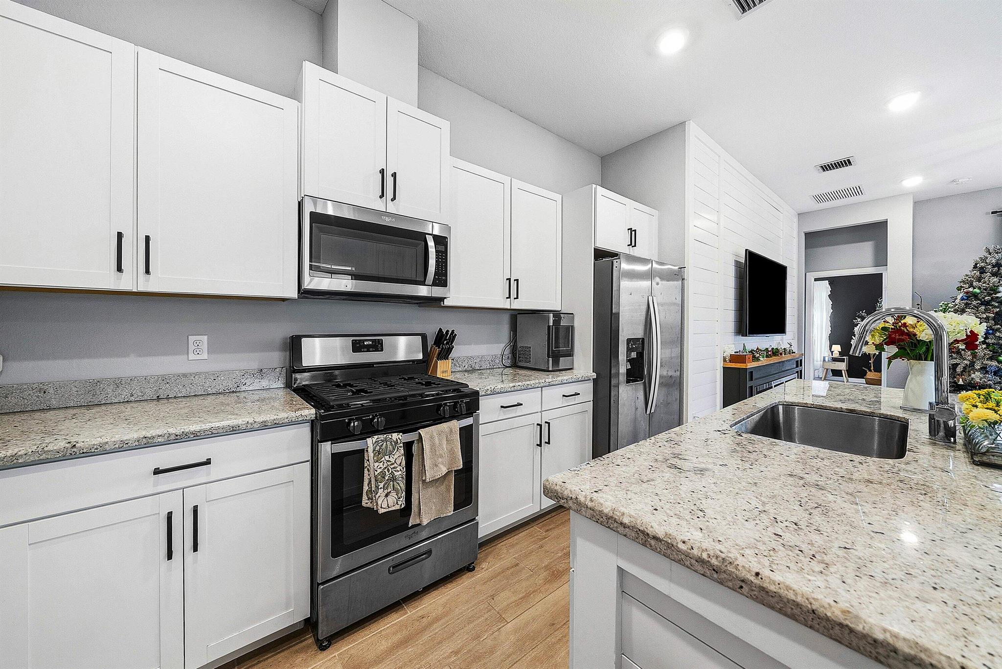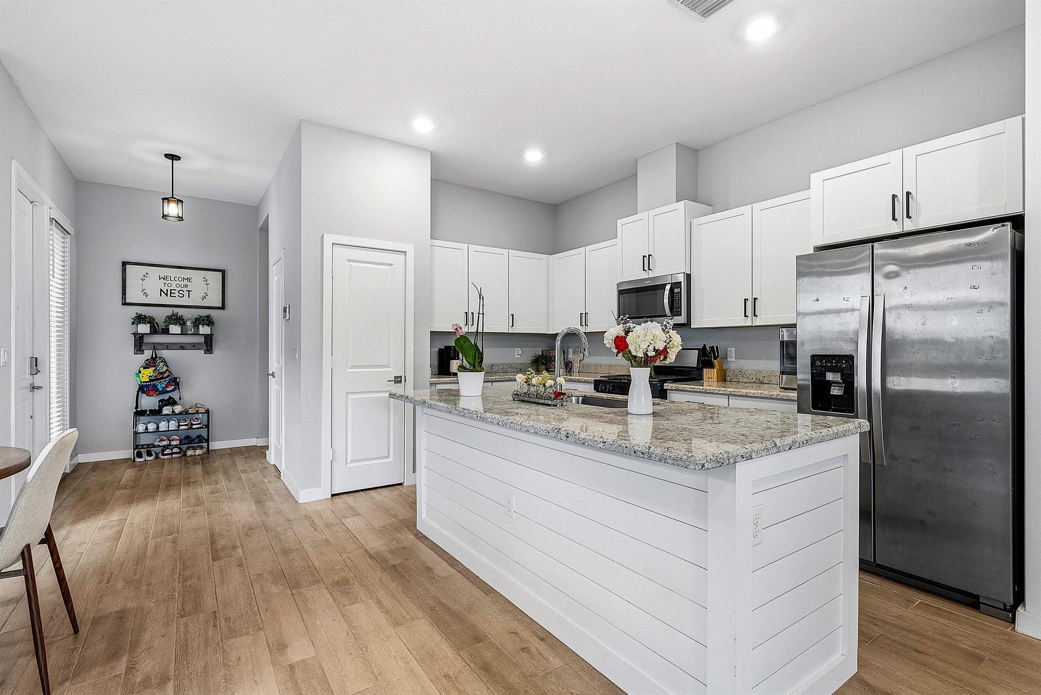 Amazing opportunity to live in the sought-after Arden community! This well-designed 3-bedroom + flex room, 2-bath villa offers 1,921 sq. ft. of comfortable living space with a bright, open-concept floor plan, 10-ft ceilings, and impact windows. The spacious kitchen features a gas range, granite countertops, white shaker cabinets, and stainless steel appliances. The primary bedroom includes dual walk-in closets and a large en-suite bath with double sinks.